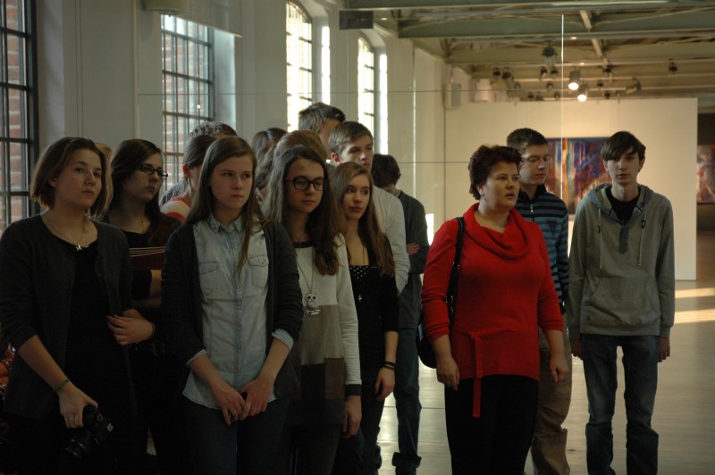 Obecna na wystawie młodzież z XXXI LO im. Ludwika Zamenhoffa w Łodzi -