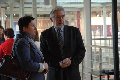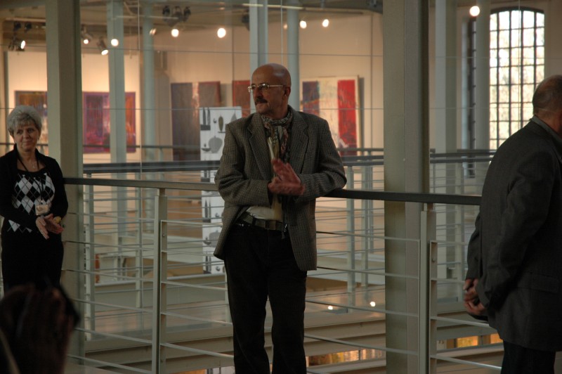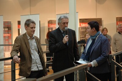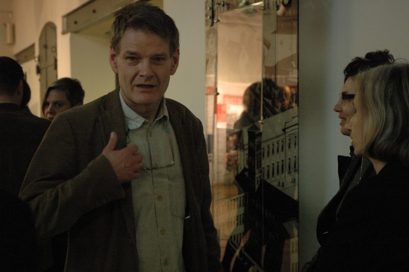Prezentacja wystawy „Kalendarium Łodzi 1939-1989. Od czterech kultur do monokultury". Na pierwszym planie Jerzy Świetlik -