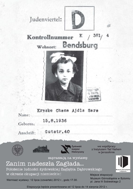 Ekspozycja jest wynikiem współpracy Instytutu Pamięci Narodowej, Instytutu Yad Vashem, Żydowskiego Instytutu Historycznego i Muzeum w Sosnowcu. Prezentuje historię społeczności żydowskiej Będzina, Sosnowca, Dąbrowy Górniczej, Zawiercia i innych miast zagłębiowskich w okresie okupacji hitlerowskiej. Na wystawie zostały pokazane nieznane dotąd zdjęcia i dokumenty pochodzące ze zbiorów instytucji tworzących ekspozycję, a także Archiwum Państwowego w Katowicach i osób prywatnych.