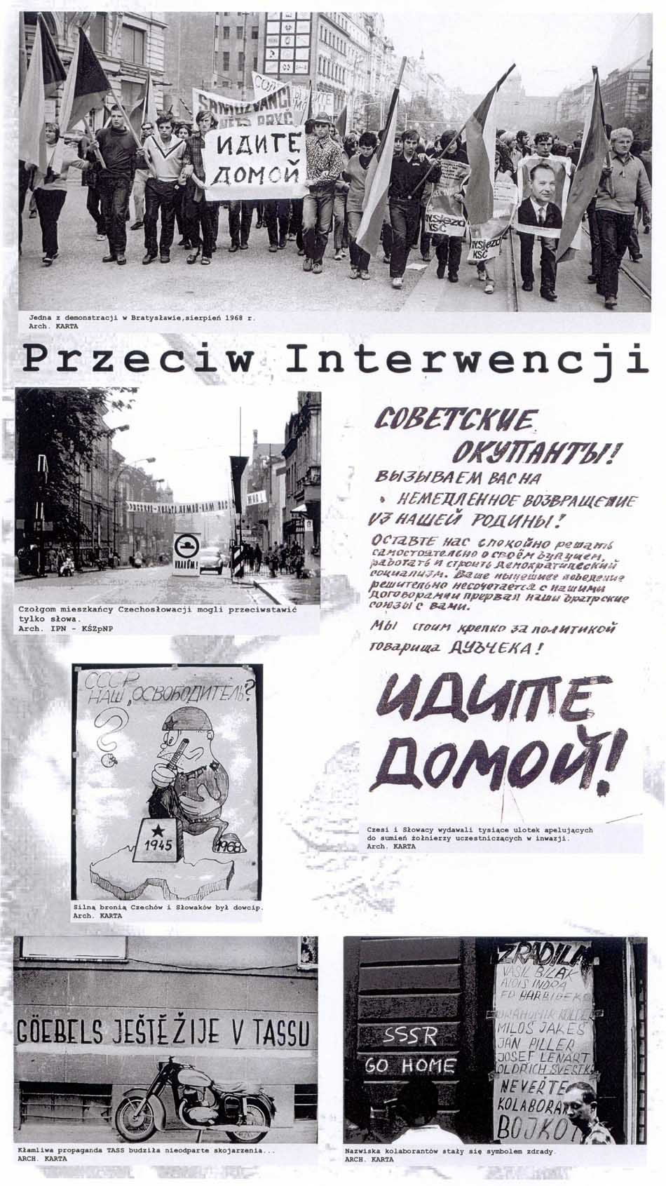 Interwencja zbrojna pięciu państw Układu Warszawskiego (Bułgaria, NRD, Polska, Węgry i ZSRR) rozpoczęła się 20 sierpnia 1968 r. Po godz. 22.00 na praskim lotnisku zaczęły lądować samoloty z sowieckimi komandosami. Już w nocy zaczęto zajmować budynki rządowe. Przywódców praskiej wiosny, na czele z Aleksandrem Dubczekiem internowano, a następnie wywieziono do Moskwy. Na wieść o tym Prezydium Komitetu Centralnego Komunistycznej Partii Czechosłowacji wydało uchwałę potępiającą inwazję i wzywającą obywateli do zachowania spokoju. Prezydent Ludwik Svoboda zaapelował do armii czechosłowackiej o niestawianie oporu.