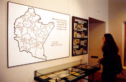 Aby przybliżyć problem zagłady żydowskich mieszkańców naszego regionu w okresie okupacji, przedstawiono hitlerowskie metody eksterminacji pośredniej: getta i obozy pracy, a także sposób tzw. ostatecznego rozwiązania kwestii żydowskiej w całym Generalnym Gubernatorstwie.