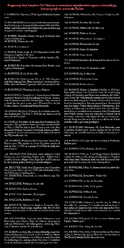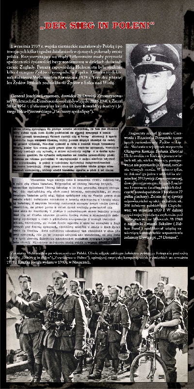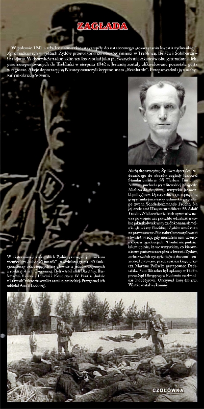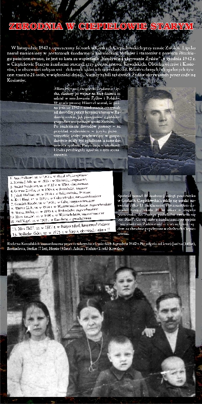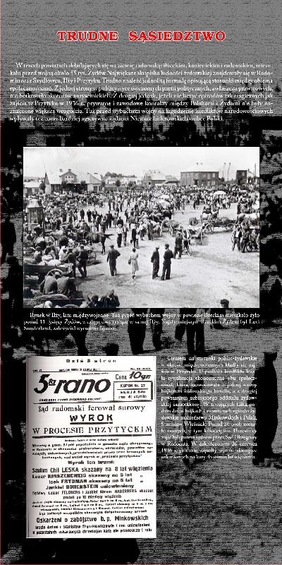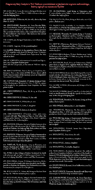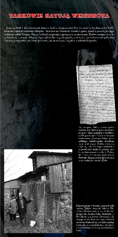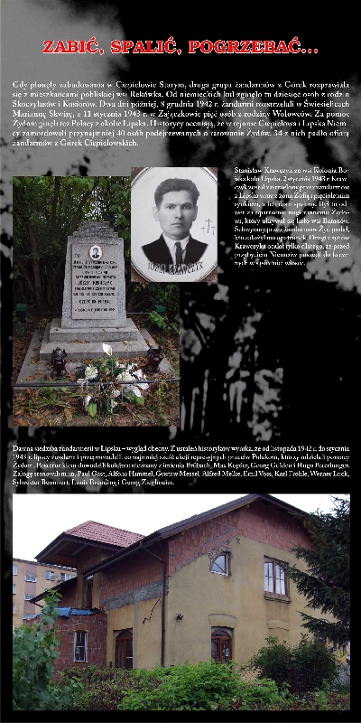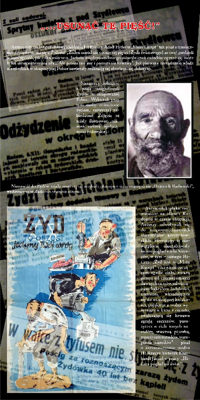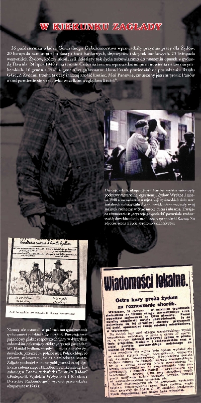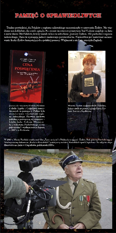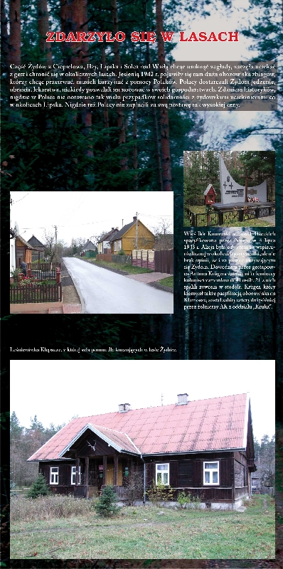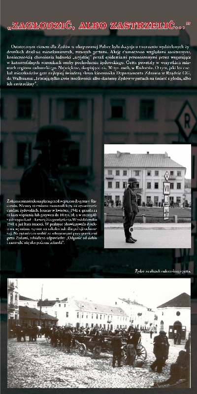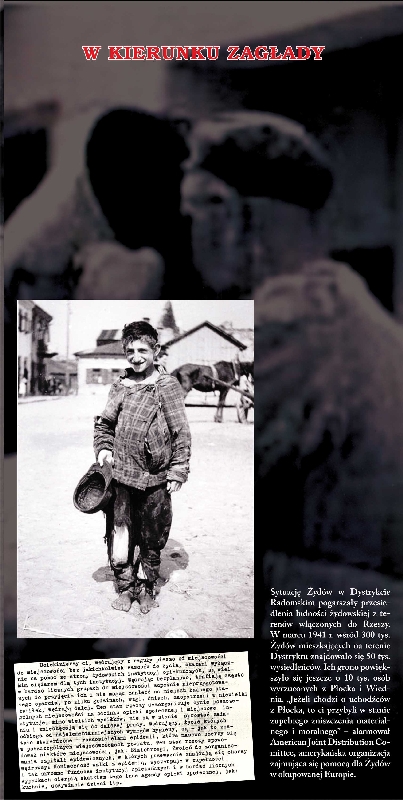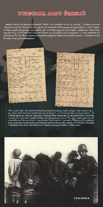 W pierwszej części ekspozycji ukazano konsekwencje wprowadzonego przez hitlerowców już w początkach okupacji pakietu ustaw antysemickich, które przekształciły Żydów w nację pozbawioną praw publicznych oraz materialnych podstaw bytu, szykanowaną i represjonowaną na każdym kroku. Po okresie eksploatacji ekonomicznej nastąpił czas uwięzienia wyznawców judaizmu w gettach, w których warunki życiowe przedstawiały się wręcz katastrofalnie, spychając tysiące ludzi na samo dno głodu, chorób i nędzy. Latem i jesienią 1942 r. naziści przeprowadzili likwidację dzielnic zamkniętych, mordując niektórych ich mieszkańców na miejscu, a przeważającą część wysyłając do ośrodka masowej zagłady w Treblince. Nieliczni podjęli próby uratowania siebie i bliskich, licząc na pomoc ze strony Polaków. Druga, obszerniejsza część wystawy, ukazuje skalę i formy pomocy, koncentrując się na wydarzeniach, mających miejsce na przełomie 1942 i 1943 r. w okolicach Lipska i Ciepielowa. Tutaj właśnie za udzielanie różnorodnego wsparcia Żydom hitlerowcy zamordowali w makabrycznych okolicznościach ponad 40 osób, w tym całe wieloosobowe rodziny Kosiorów, Kowalskich, Obuchiewiczów i Skoczylasów; bardzo dużą grupę wśród ofiar mordów stanowiły dzieci. Na panelach ukazano fotografie i dokumenty związane z tymi wydarzeniami, starając się również przedstawić sylwetki ich sprawców. Kolejne materiały dotyczą ratownictwa w okolicach Szydłowca, przedstawiając bohaterów, a także ludzi, którzy dzięki polskiej pomocy ocaleli z Zagłady.