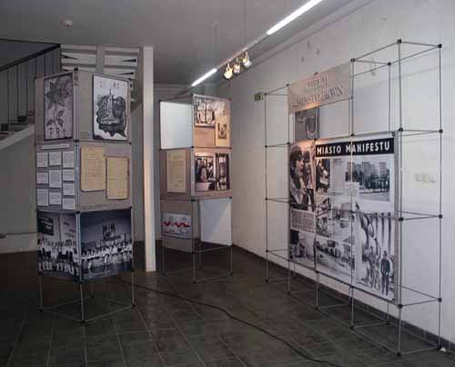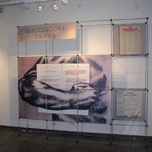 Ze względu na temat wystawy uznano, iż będzie ona również doskonałym pretekstem do zaprezentowania charakterystycznej symboliki i koncepcji plastycznych stworzonych specjalnie na potrzeby świątecznego ceremoniału. Stąd zwracają uwagę zdjęcia ukazujące monumentalność, a jednocześnie parareligijny charakter pochodów, w których niesiono chorągwie, wizerunki partyjnych „świętych”. Z tego okresu wywodzi się również charakterystyczna ornamentyka i plakat.