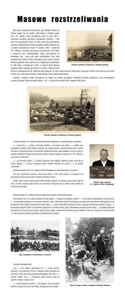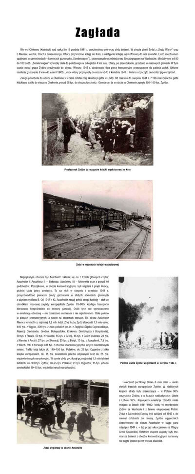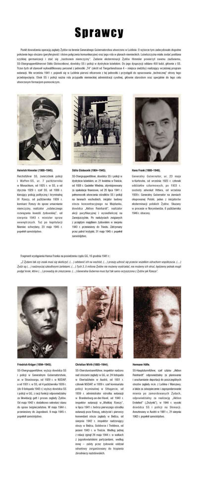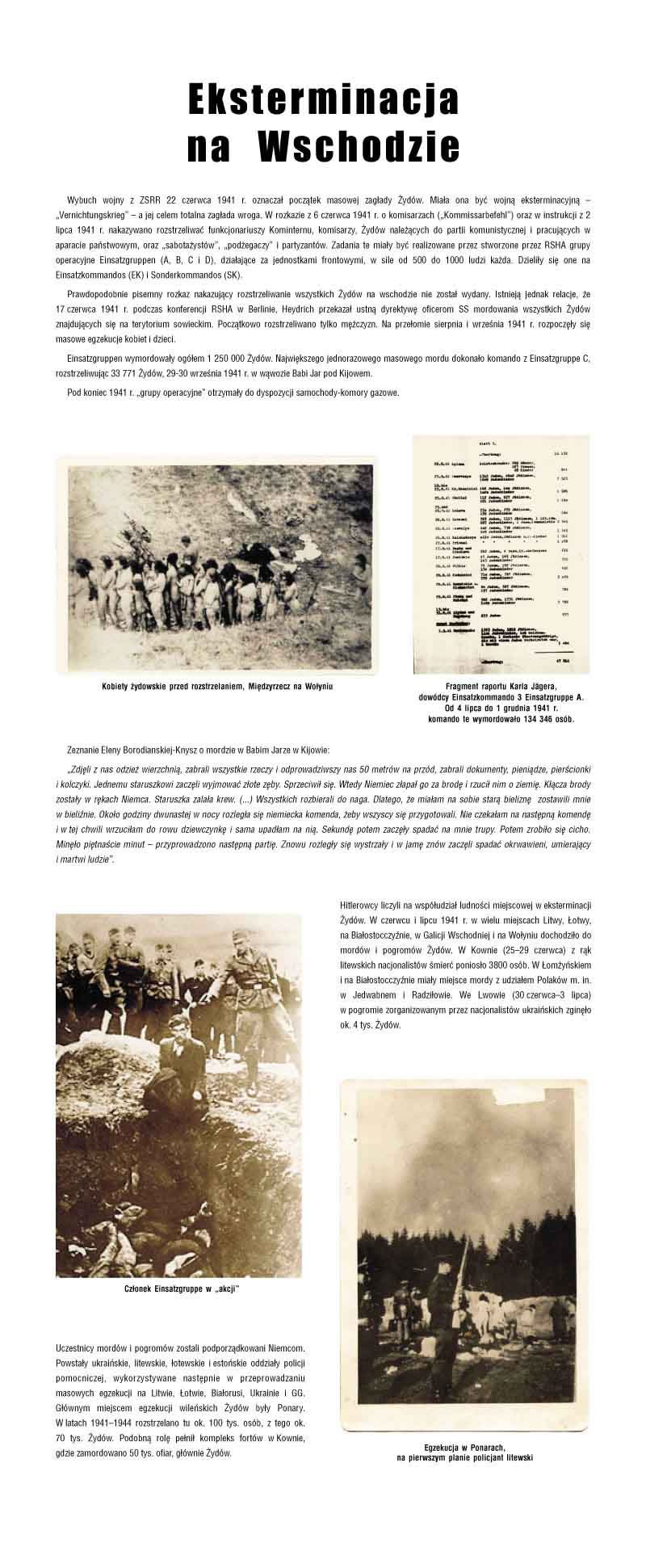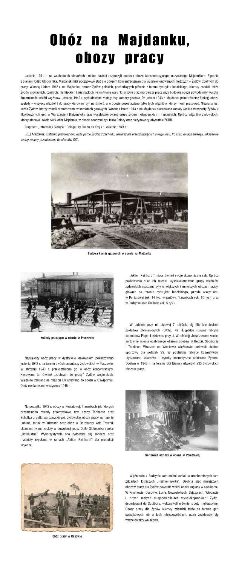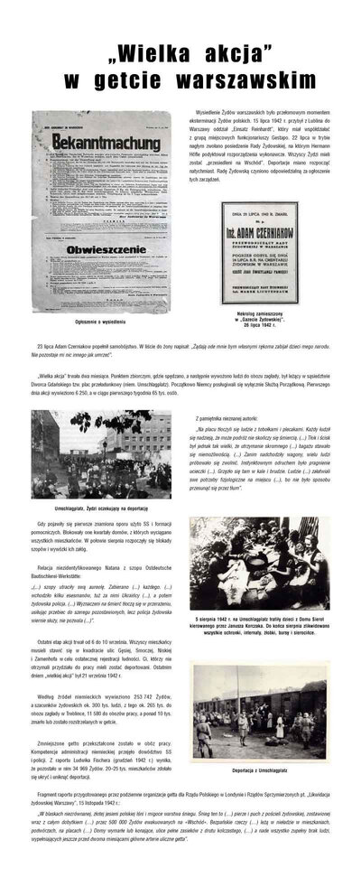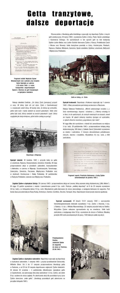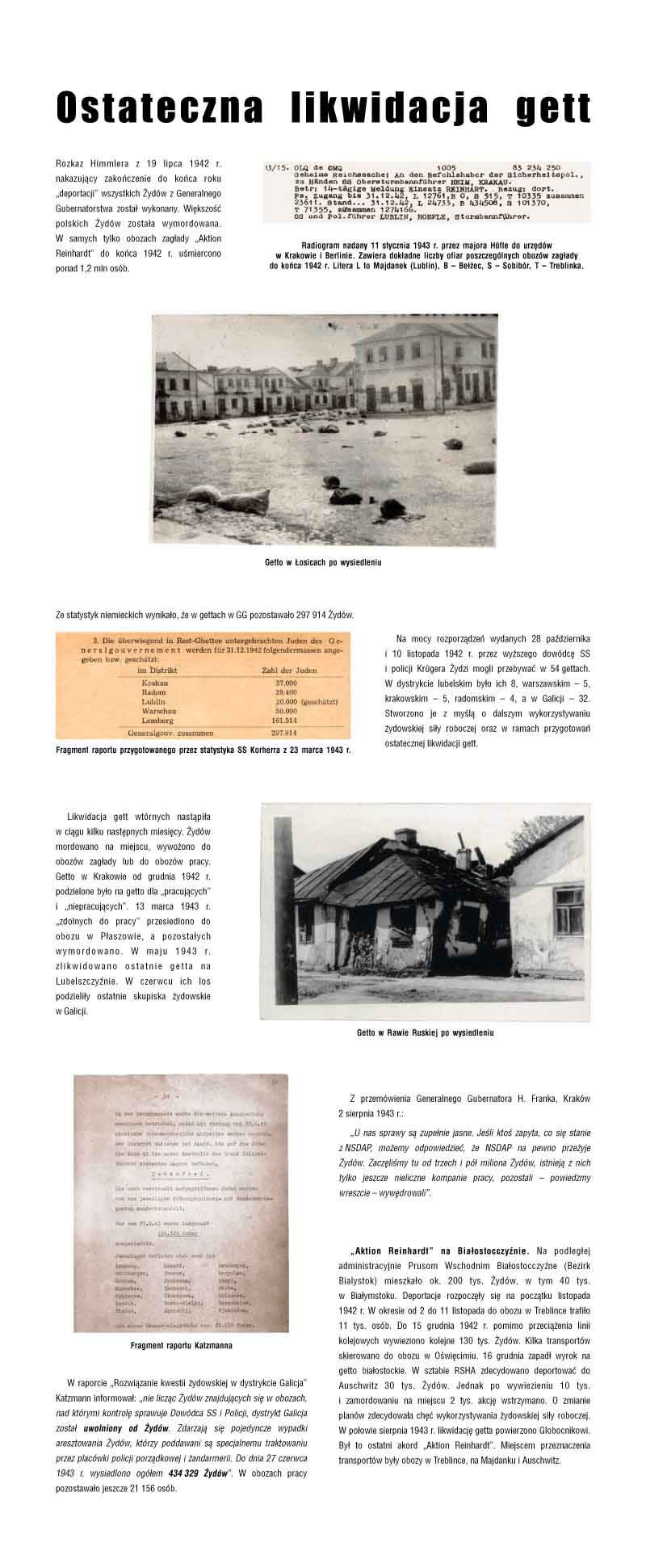 W latach 1942-1943 okupowane ziemie polskie wchodzące w skład Generalnego Gubernatorstwa stały się miejscem bezprecedensowej zbrodni dokonanej na masową skalę na Żydach. W jej efekcie z krajobrazu polskich miast i miasteczek zniknęły całe społeczności żydowskie, które od wielu wieków tworzyły klimat tych miejsc. Żydzi ginęli w komorach gazowych obozów w Bełżcu, Sobiborze i Treblince. Tysiące zamordowanych zostało także w masowych egzekucjach, dokonywanych przy okazji likwidacji gett lub zmarło w transportach deportacyjnych do obozów zagłady.