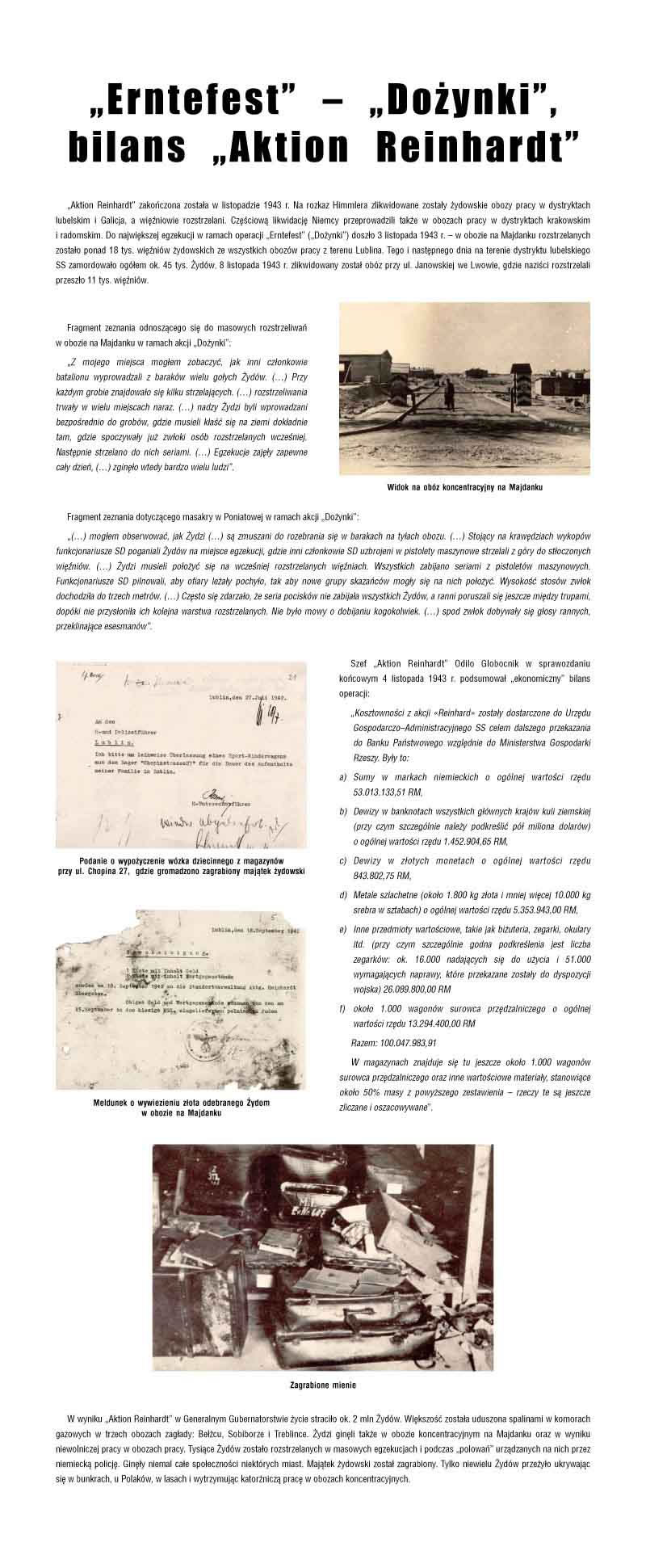 7 listopada 2002 r. w siedzibie Państwowego Muzeum na Majdanku została po raz pierwszy otwarta wystawa „»Aktion Reinhardt« – zagłada Żydów w Generalnym Gubernatorstwie„ przygotowana przez Oddziałowe Biuro Edukacji Publicznej IPN w Lublinie przy współpracy Państwowego Muzeum na Majdanku.