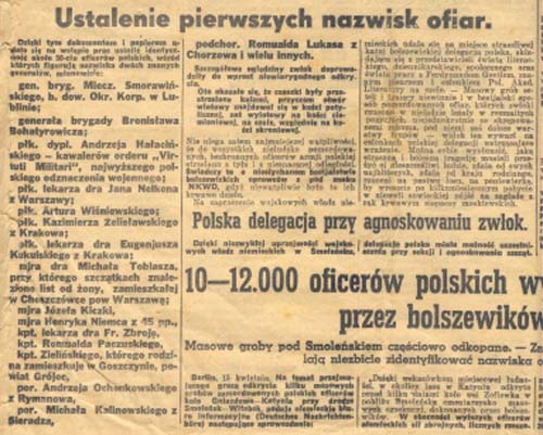 2. Pierwsza lista polskich oficerów zamordowanych przez Sowietów w Katyniu, opublikowana przez "Gońca Krakowskiego" 16 kwietnia 1943 r.
