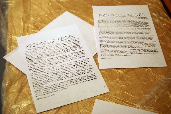 16 marca 2009 r. w gmachu Wojewódzkiej Biblioteki Publicznej w Kielcach, przy ul. Ściegiennego 13, odbyło się uroczyste otwarcie ekspozycji „Niezależne Zrzeszenie Studentów w Kielcach w latach 1980–1989”, przygotowanej przez Biuro Edukacji Publicznej Delegatury IPN w Kielcach. Zebranych gości powitali: Andrzej Dąbrowski, dyrektor Wojewódzkiej Biblioteki Publicznej w Kielcach, oraz dr Ryszard Śmietanka-Kruszelnicki, reprezentujący Delegaturę IPN w Kielcach. Następnie głos zabrał Marek Jończyk, współautor wystawy, który przybliżył historię kieleckiego NZS. Swoimi wspomnieniami z okresu działalności w studenckiej organizacji podzielili się także dwaj jej członkowie – Janusz Kędracki i Tadeusz Pawłowski. Zgromadzeni na uroczystości mieli możliwość zapoznania się z procesem druku ulotek przy pomocy oryginalnego powielacza białkowego z lat 80. XX w., który zaprezentował Leszek Śledź.