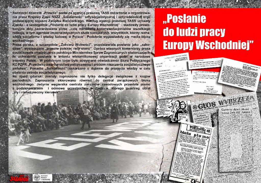 Wystawa powstała w trzydziestą rocznicę I Krajowego Zjazdu Delegatów NSZZ „Solidarność”. Przygotowała ją Komisja Krajowa NSZZ „Solidarność” wraz z Oddziałowym Biurem Edukacji Publicznej IPN w Gdańsku.