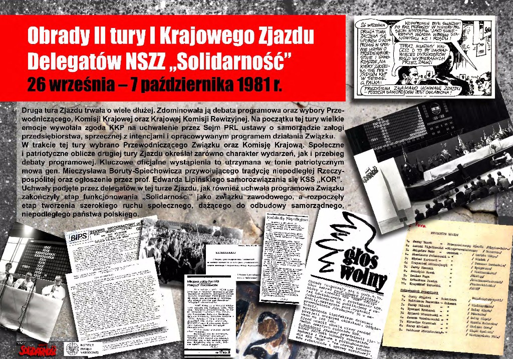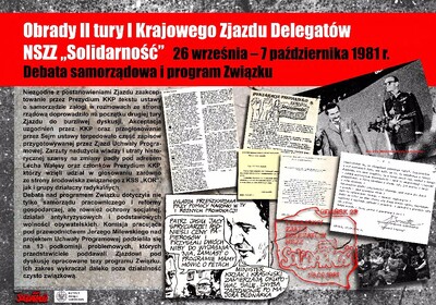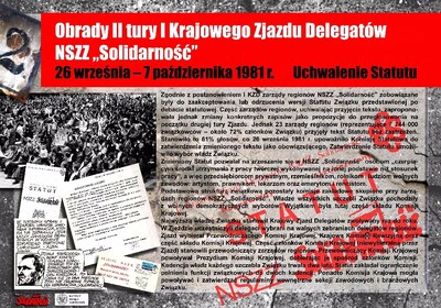 I Krajowy Zjazd Delegatów NSZZ „Solidarność” odbył się w dwóch turach: 5–10 września i 26 października – 7 listopada 1981 r. Na zjeździe ukształtowała się struktura NSZZ „Solidarność”, wybrano przewodniczącego i władze Związku, podjęto także ponad 60 uchwał dotyczących różnych dziedzin życia społecznego. Uchwała Programowa stała się jednym z najważniejszych dokumentów „Solidarności”.