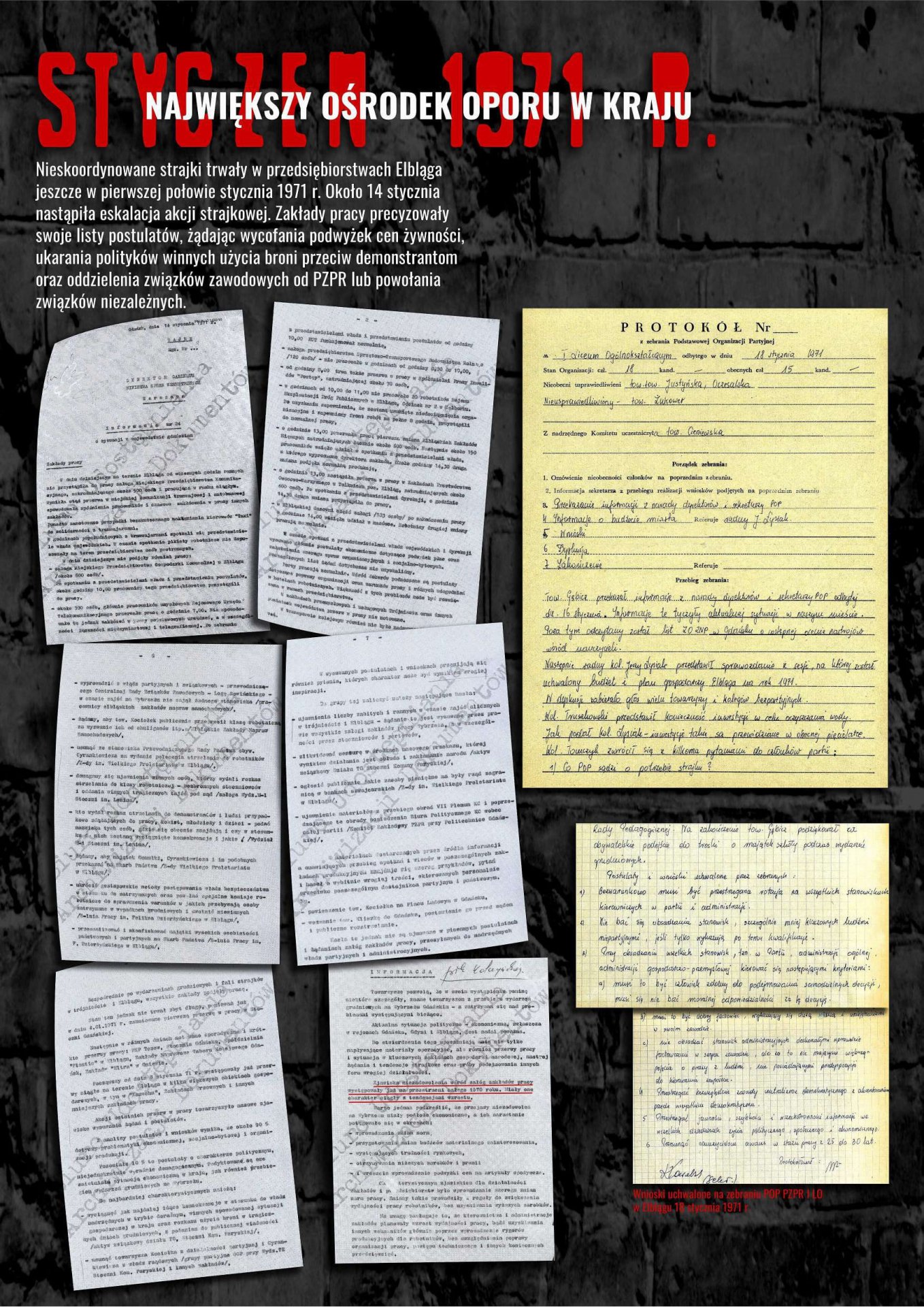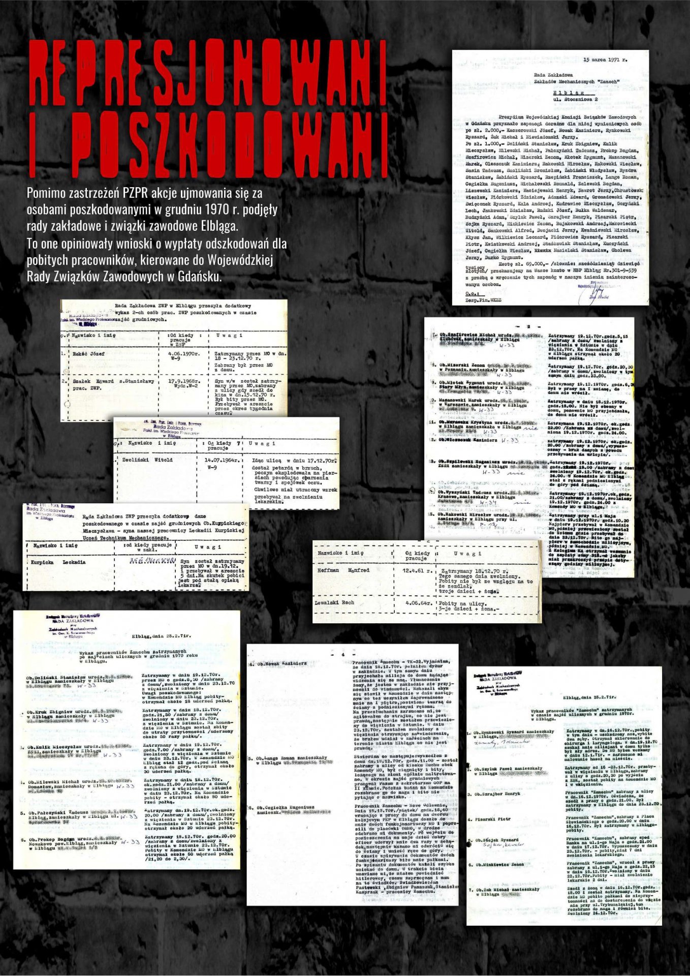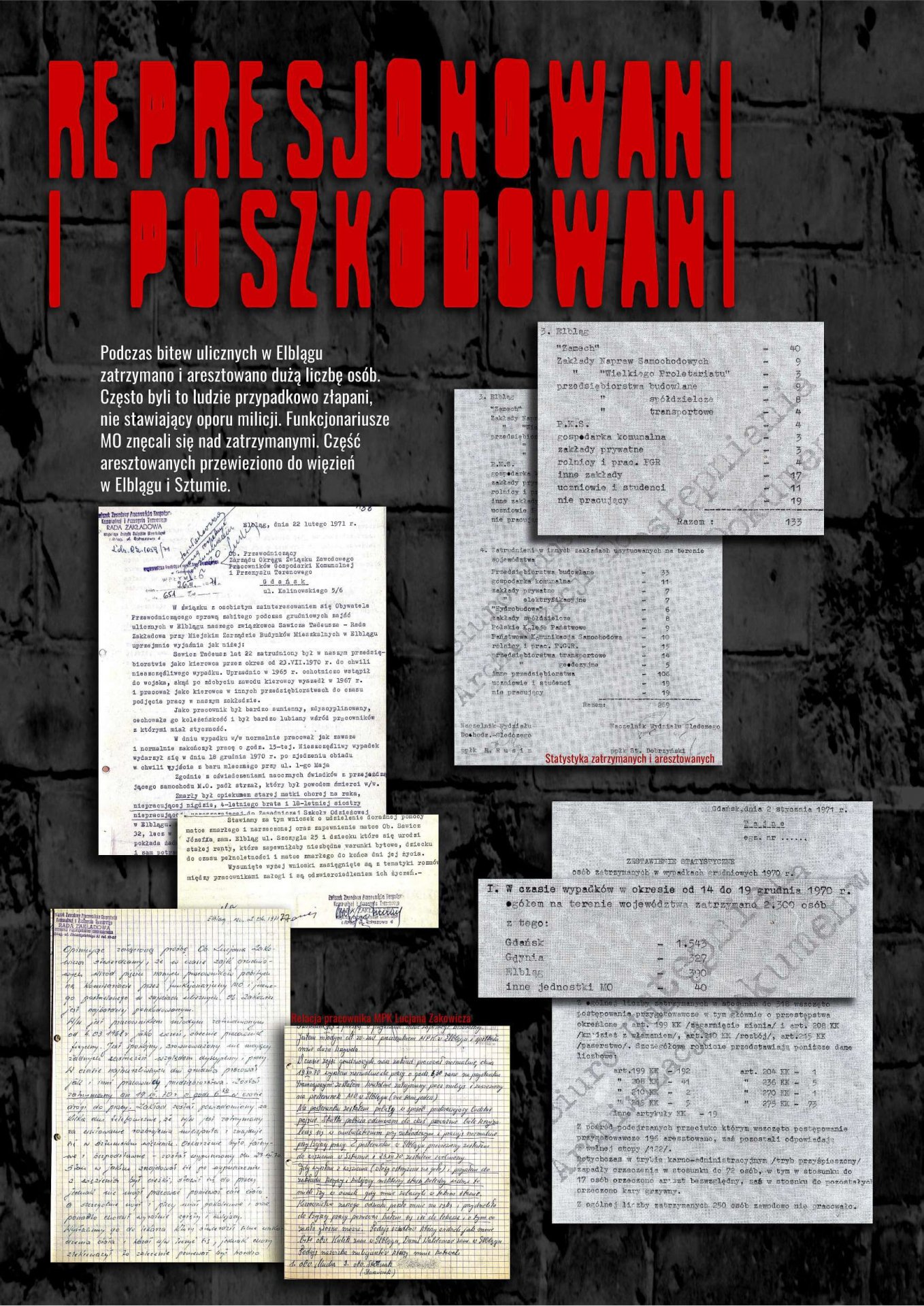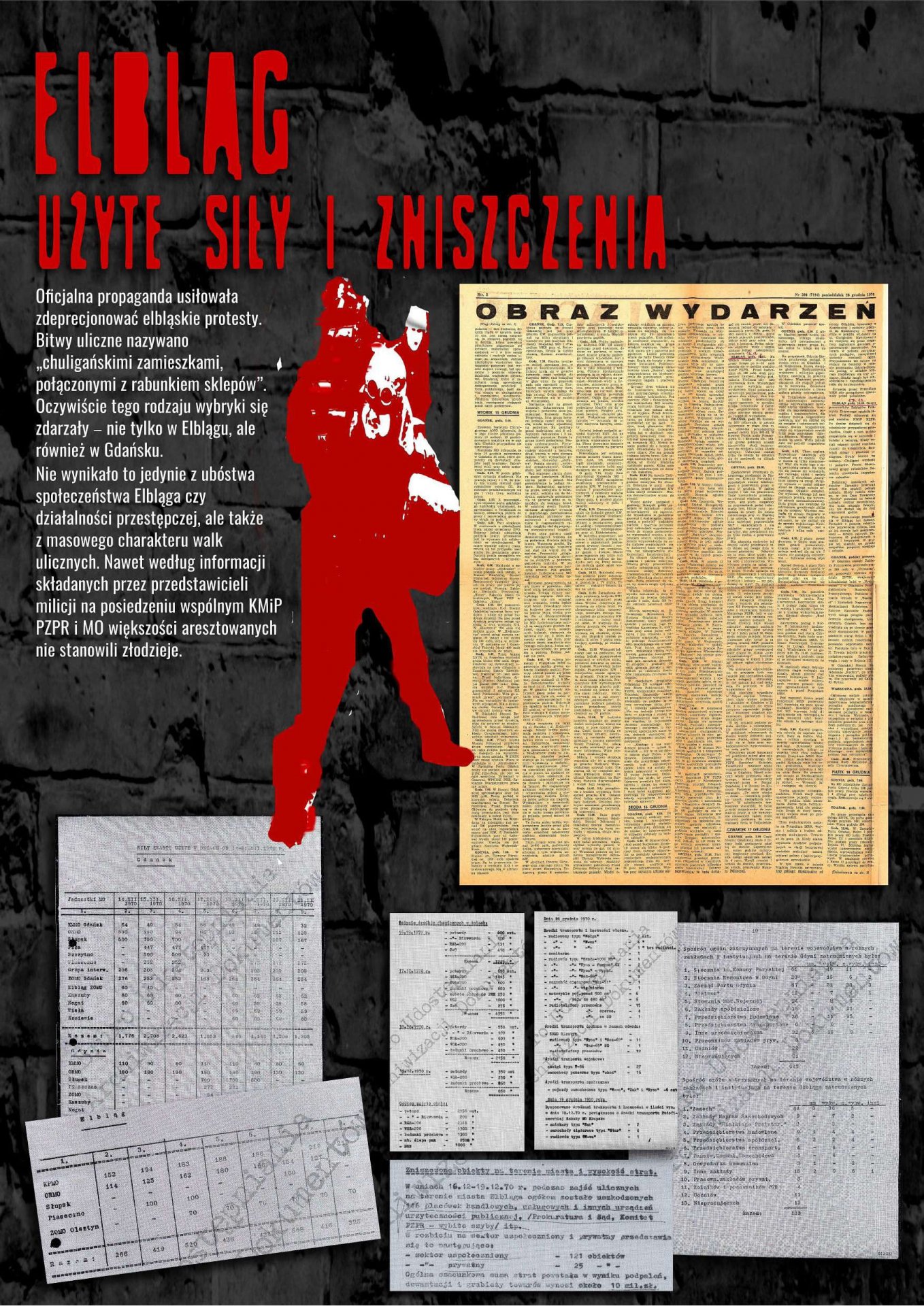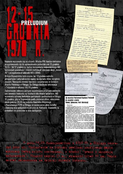 Wystawa została przygotowana przez Oddziałowe Biuro Edukacji Publicznej IPN w Gdańsku, Bibliotekę Elbląską im. C. Norwida oraz Archiwum Państwowe w Gdańsku jako odpowiedź na zapotrzebowanie społeczne związane z upowszechnianiem wiedzy dotyczącej najnowszej historii Elbląga lat 1970–1971. Ekspozycja przybliża przyczyny, przebieg i rozwój sytuacji w Elblągu w grudniu 1970 r. oraz styczniu 1971 r. poprzez wybrane fragmenty dokumentów archiwalnych i relacji prasowych. Znaczna część materiałów prezentowanych na wystawie dotyczy represji wobec zatrzymanych demonstrantów wraz z opisami tych zdarzeń, sporządzanymi wówczas i gromadzonymi przez związki zawodowe w celu wypłaty odszkodowań.