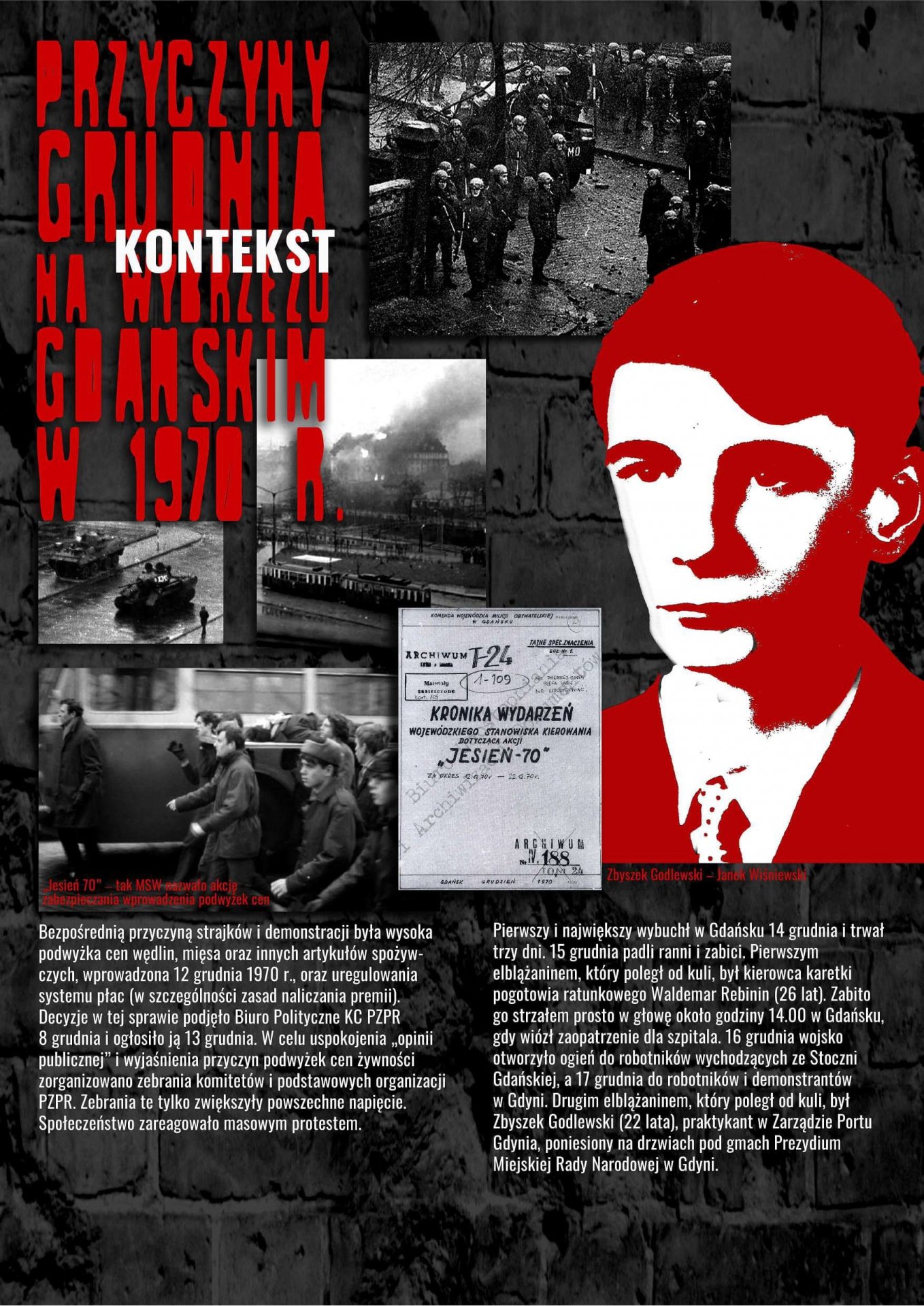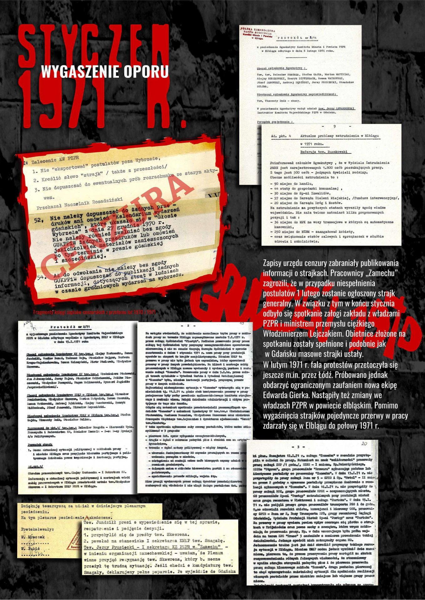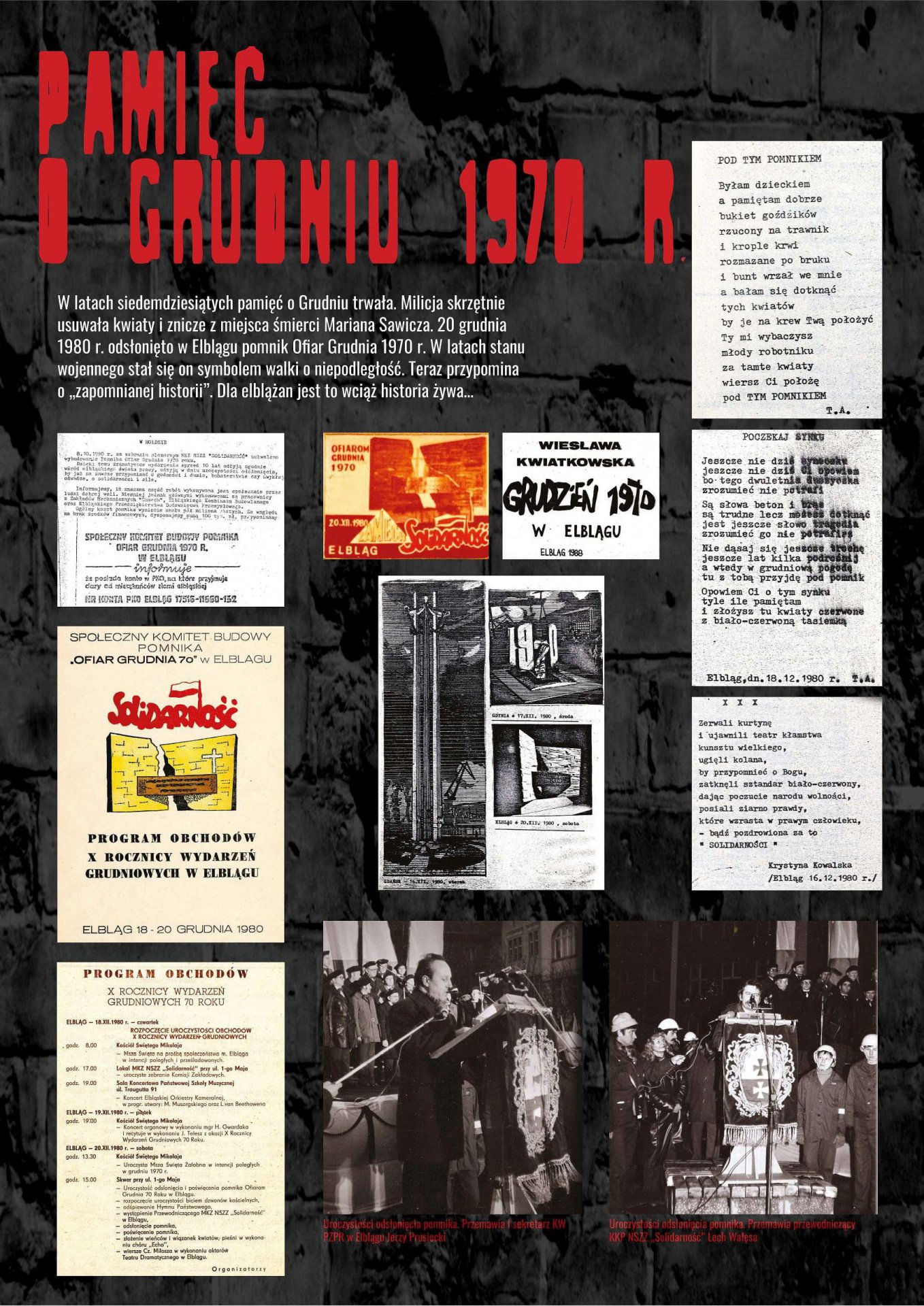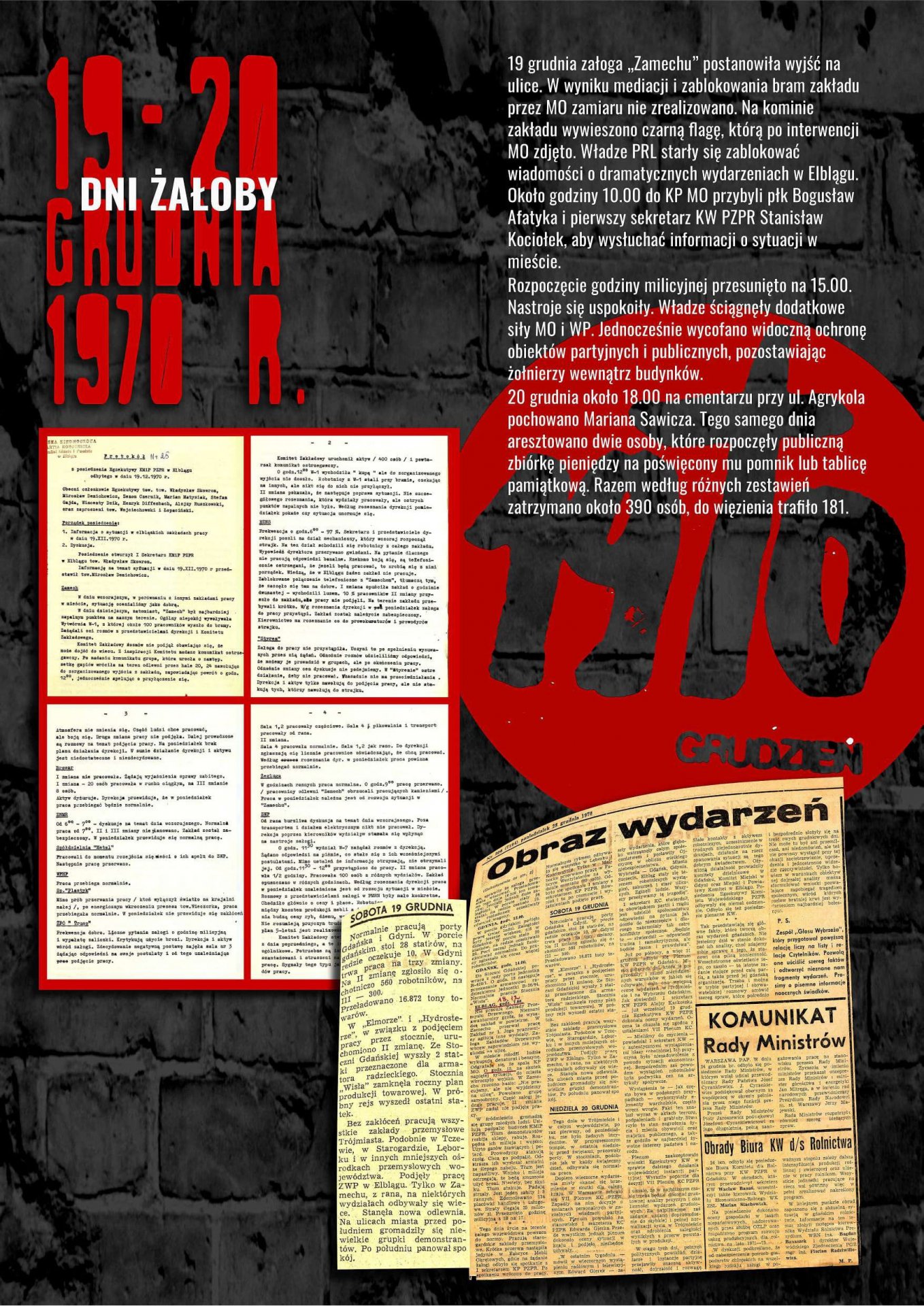 Wystawa została przygotowana przez Oddziałowe Biuro Edukacji Publicznej IPN w Gdańsku, Bibliotekę Elbląską im. C. Norwida oraz Archiwum Państwowe w Gdańsku jako odpowiedź na zapotrzebowanie społeczne związane z upowszechnianiem wiedzy dotyczącej najnowszej historii Elbląga lat 1970–1971. Ekspozycja przybliża przyczyny, przebieg i rozwój sytuacji w Elblągu w grudniu 1970 r. oraz styczniu 1971 r. poprzez wybrane fragmenty dokumentów archiwalnych i relacji prasowych. Znaczna część materiałów prezentowanych na wystawie dotyczy represji wobec zatrzymanych demonstrantów wraz z opisami tych zdarzeń, sporządzanymi wówczas i gromadzonymi przez związki zawodowe w celu wypłaty odszkodowań.