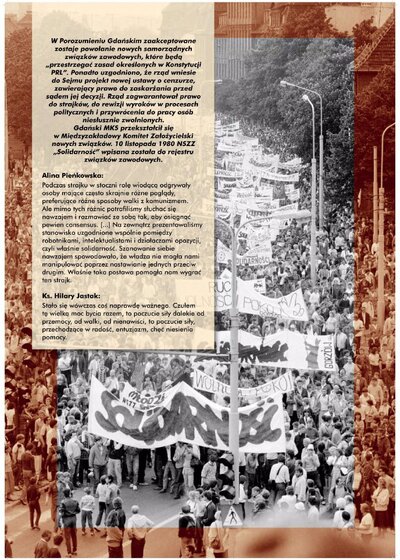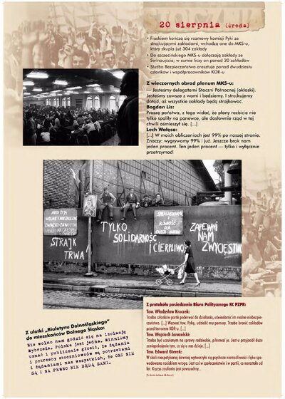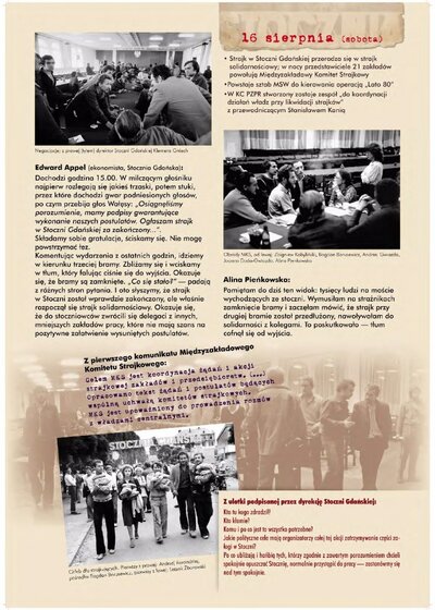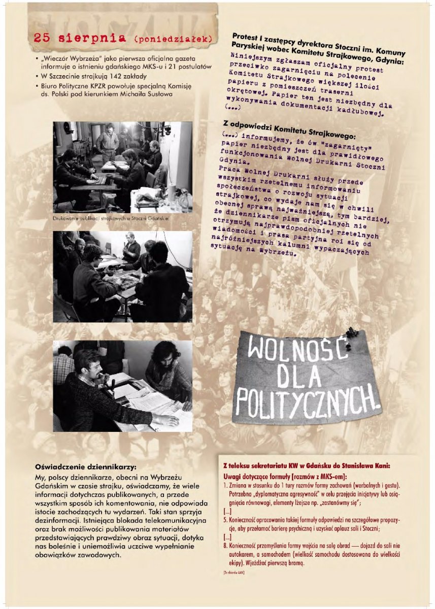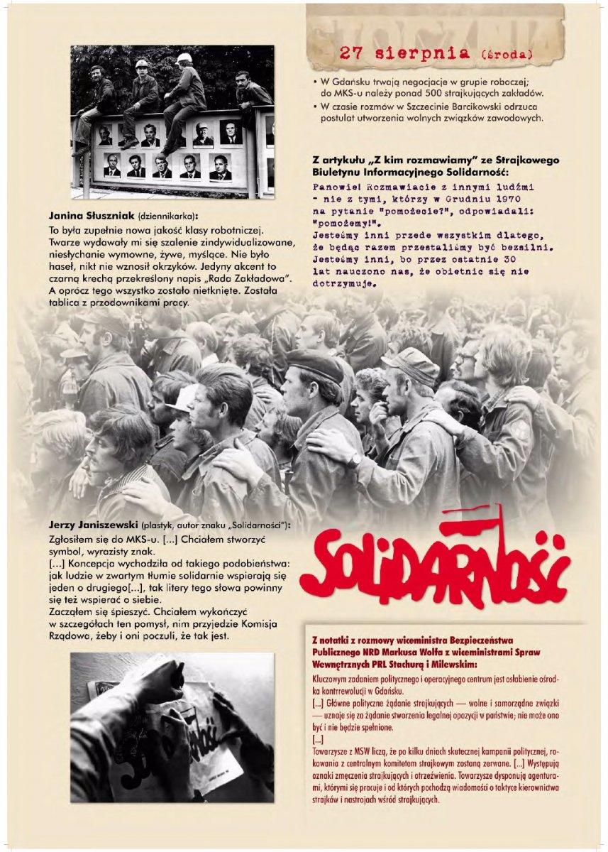 Wystawa zorganizowana we współpracy z Ośrodkiem Karta, ukazuje, dzień po dniu, najważniejsze wydarzenia Sierpnia ‘80, które doprowadziły do powstania niezależnych związków zawodowych.