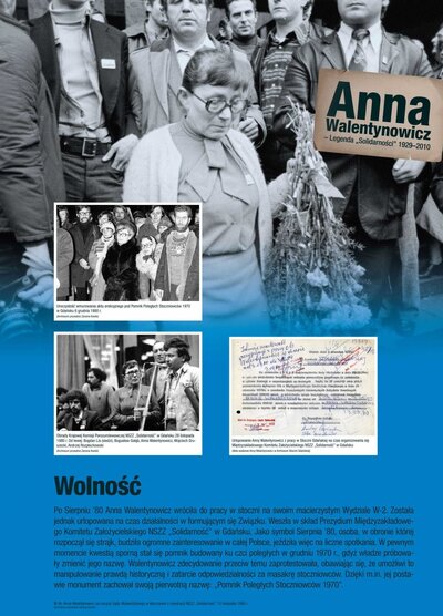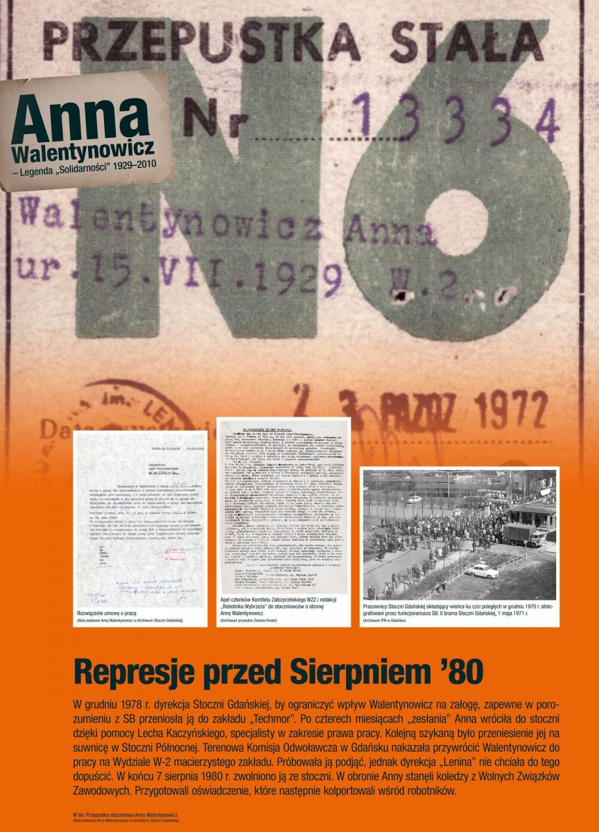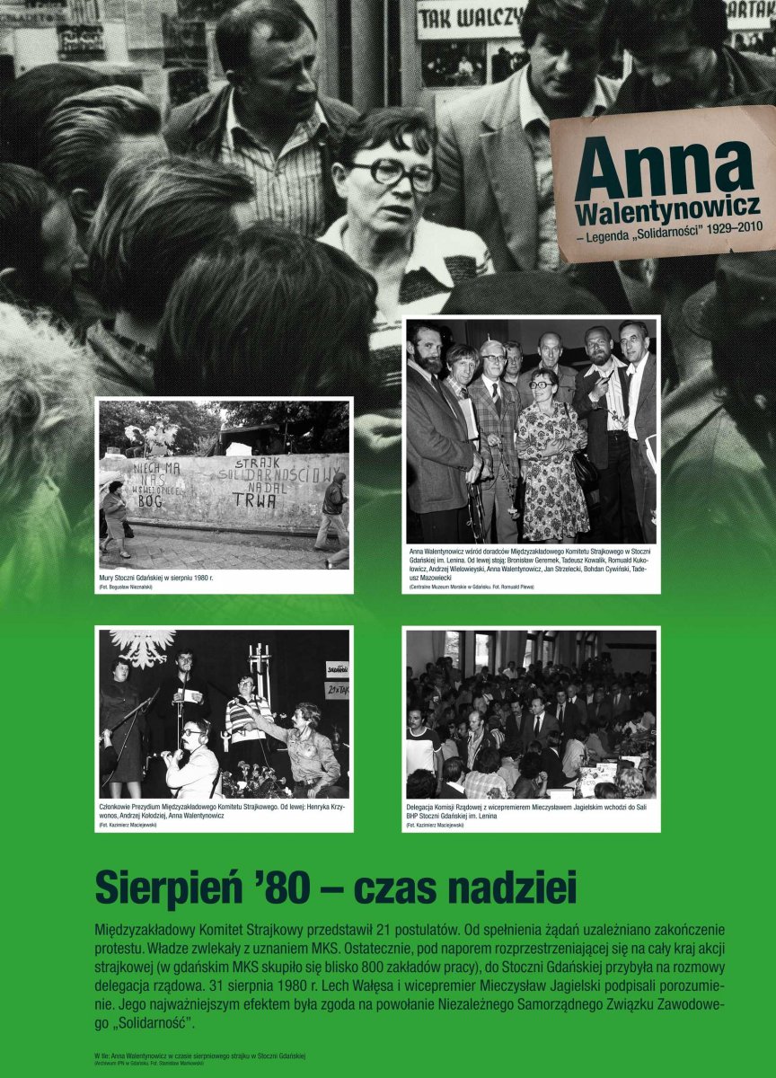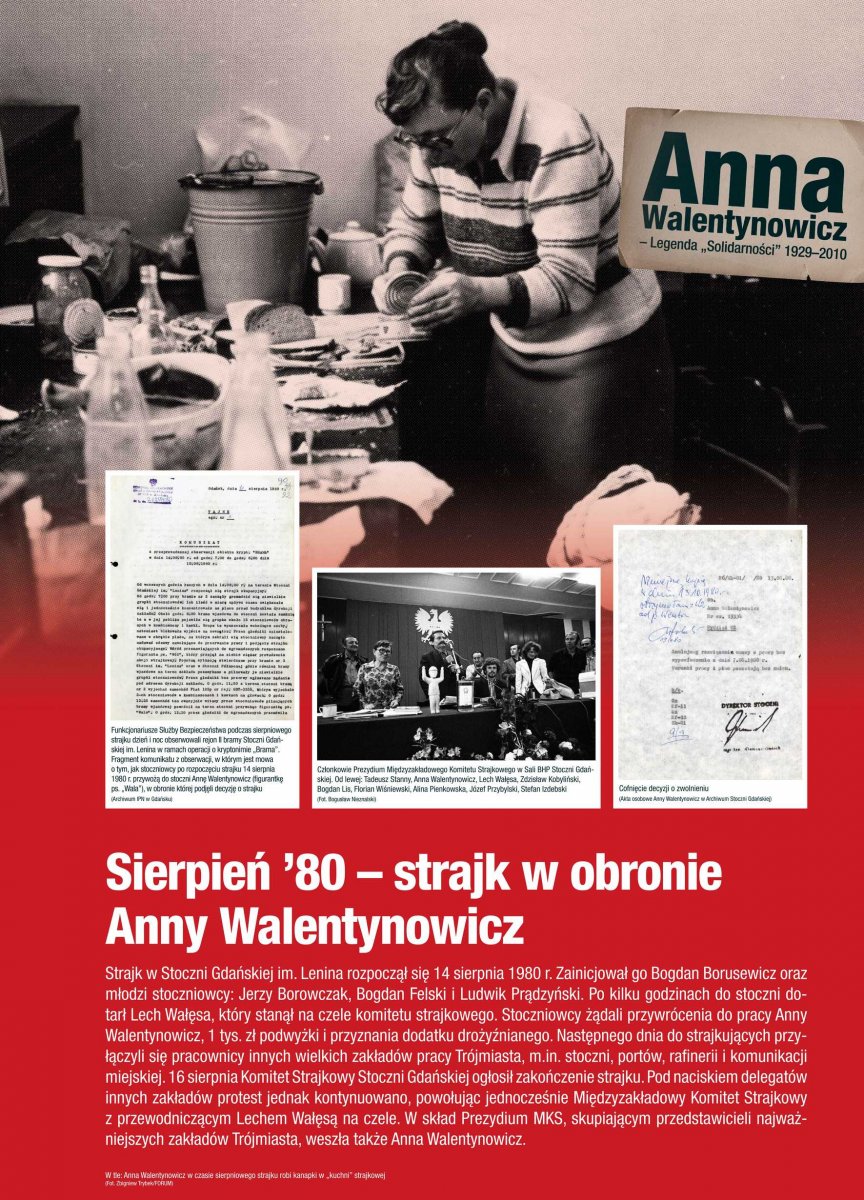 Wystawa została przygotowana w trzydziestą drugą rocznicę powstania NSZZ „Solidarność”. Ekspozycja w układzie chronologicznym przestawia życie i działalność Anny Walentynowicz. Otwarcia wystawy, prezentowanej obok budynku, w którym mieszkała bohaterka wystawy, dokonali Prezes IPN dr Łukasz Kamiński oraz Przewodniczący Komisji Krajowej Niezależnego Samorządnego Związku Zawodowego „Solidarność” Piotr Duda. Jej autorem jest Arkadiusz Kazański.