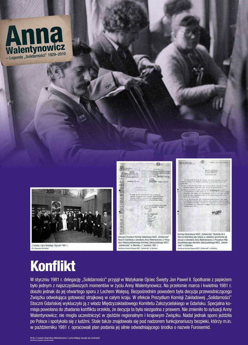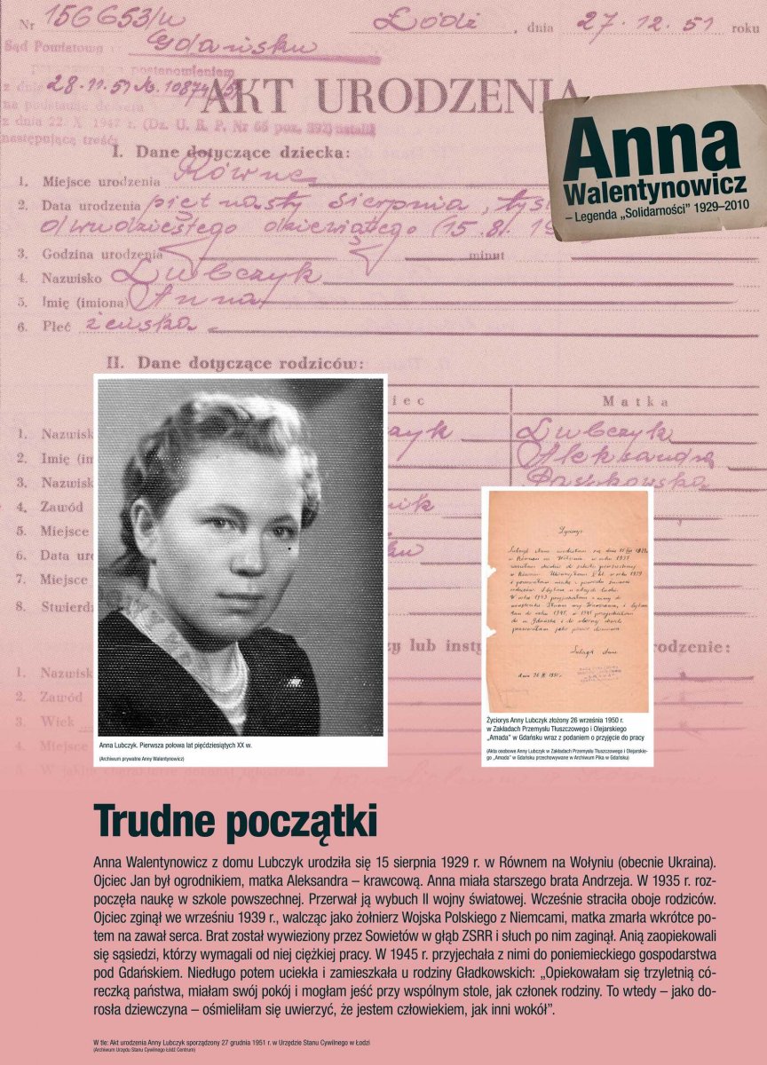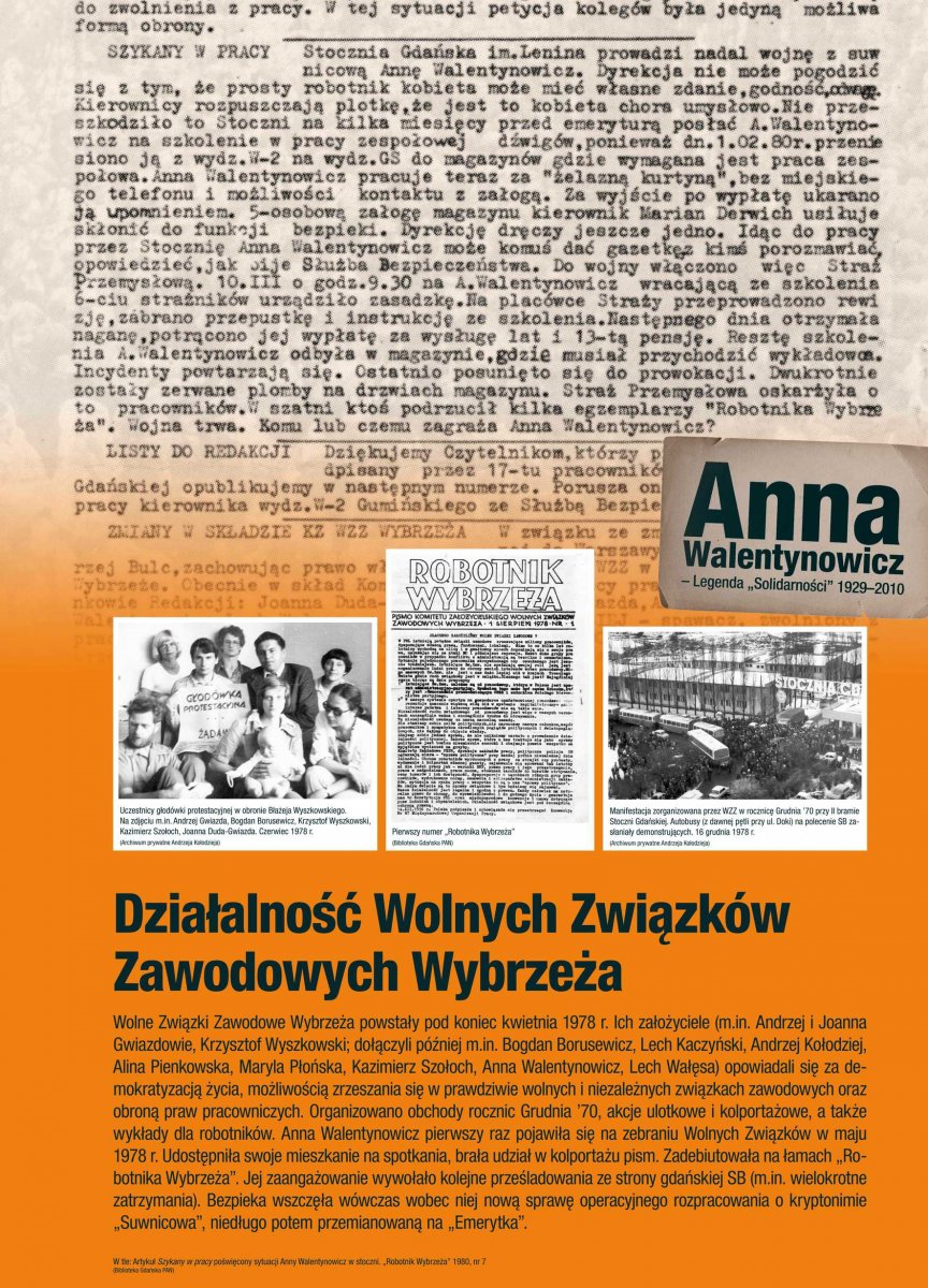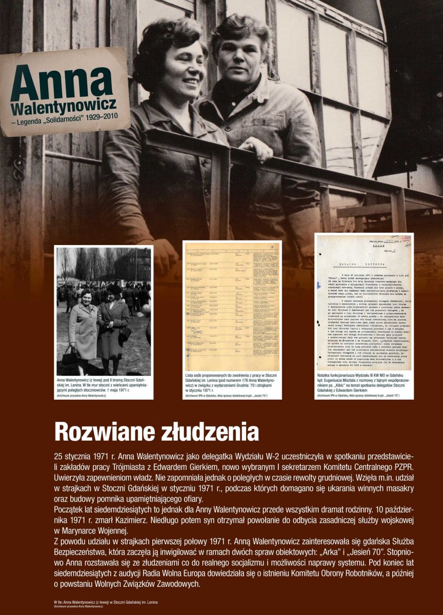 Wystawa została przygotowana w trzydziestą drugą rocznicę powstania NSZZ „Solidarność”. Ekspozycja w układzie chronologicznym przestawia życie i działalność Anny Walentynowicz. Otwarcia wystawy, prezentowanej obok budynku, w którym mieszkała bohaterka wystawy, dokonali Prezes IPN dr Łukasz Kamiński oraz Przewodniczący Komisji Krajowej Niezależnego Samorządnego Związku Zawodowego „Solidarność” Piotr Duda. Jej autorem jest Arkadiusz Kazański.