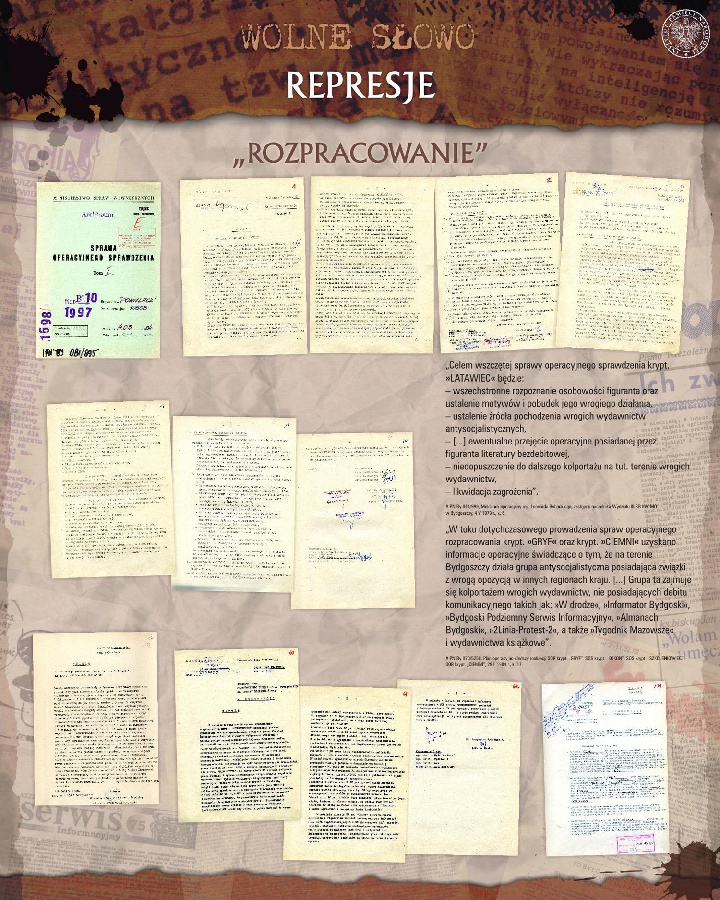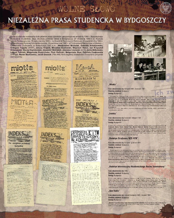 Wystawa składa się z kilku bloków tematycznych prezentujących najważniejsze zagadnienia związane z funkcjonowaniem prasy i wydawnictw niezależnych w PRL, m.in. techniki drukarskie, kolportaż oraz represje, którym poddawano osoby zaangażowane w działalność w drugim obiegu wydawniczym. Szczególny nacisk położono na ukazujące się poza cenzurą tytuły bydgoskie.