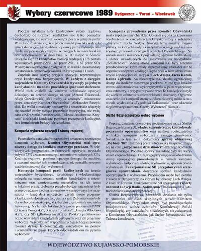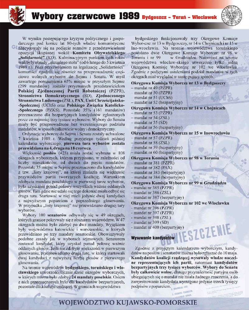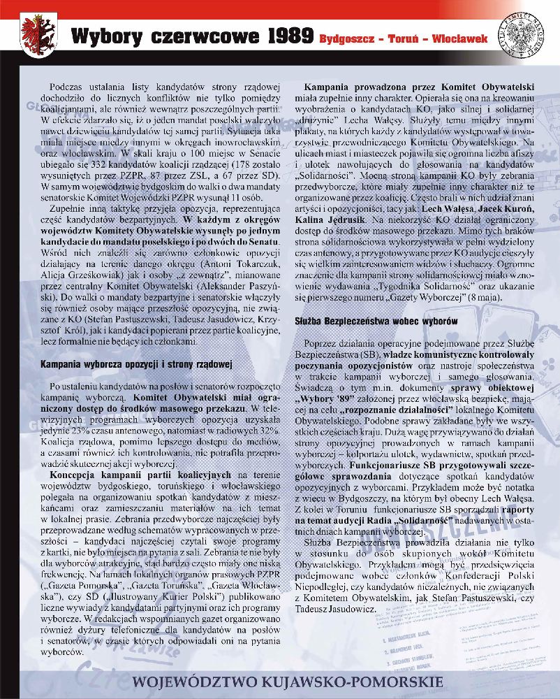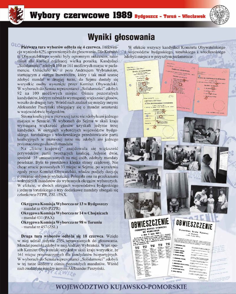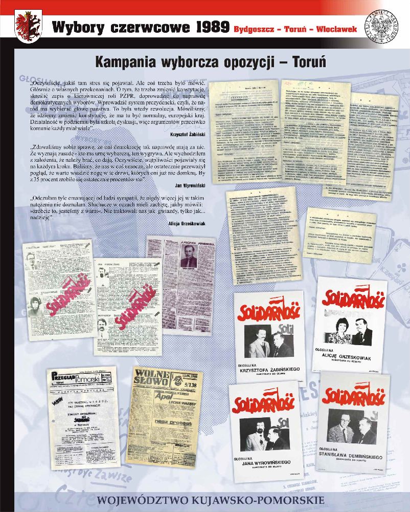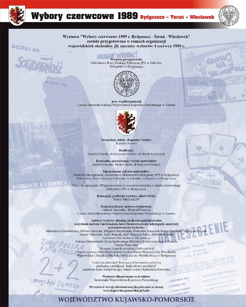 Na wystawie w sposób kompleksowy przedstawiono najważniejsze zagadnienia dotyczące wyborów czerwcowych w dawnych województwach bydgoskim, toruńskim oraz włocławskim. Kolejno zaprezentowano bogaty materiał przedstawiający najistotniejsze elementy kampanii przedwyborczej (ulotki, plakaty, zdjęcia ze spotkań z wyborcami), sylwetki kandydatów na posłów i senatorów, a także dokumenty obrazujące działania podejmowane przez SB w okresie wyborów. Otwarcie miało miejsce 3 czerwca 2009 r. w Toruniu. Autorami wystawy są pracownicy Delegatury IPN w Bydgoszczy: Kamila Churska, dr Krzysztof Osiński i dr Marek Szymaniak.