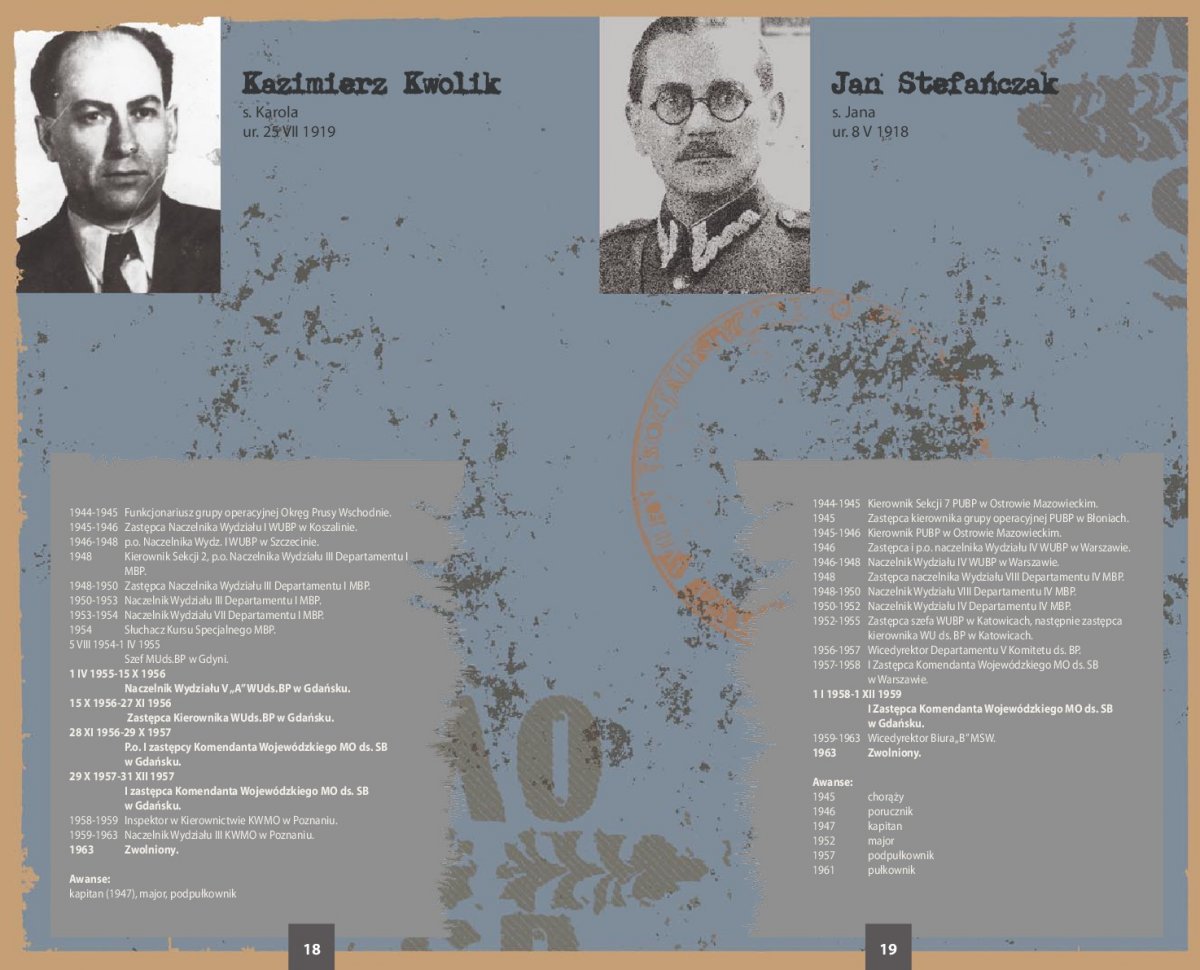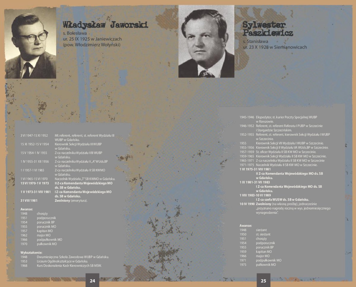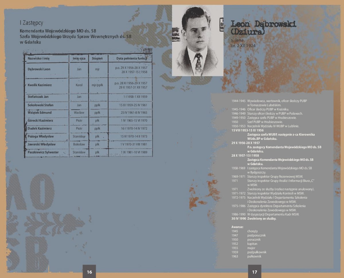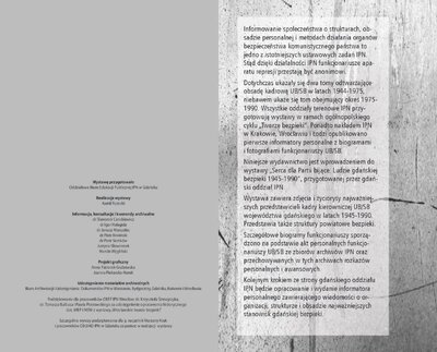 Ekspozycja zawiera zdjęcia i życiorysy 66 najważniejszych przedstawicieli kadry kierowniczej SB województwa gdańskiego w latach 1945-1990. Szczegółowe biogramy sporządzono na podstawie akt personalnych funkcjonariuszy UB/SB ze zbiorów archiwów IPN oraz przechowywanych w tych archiwach rozkazów personalnych i awansowych.