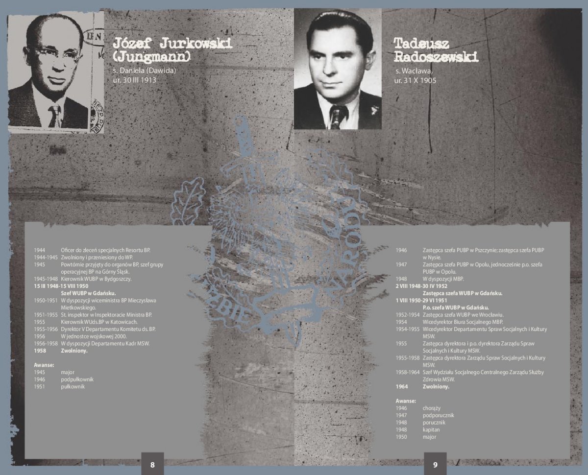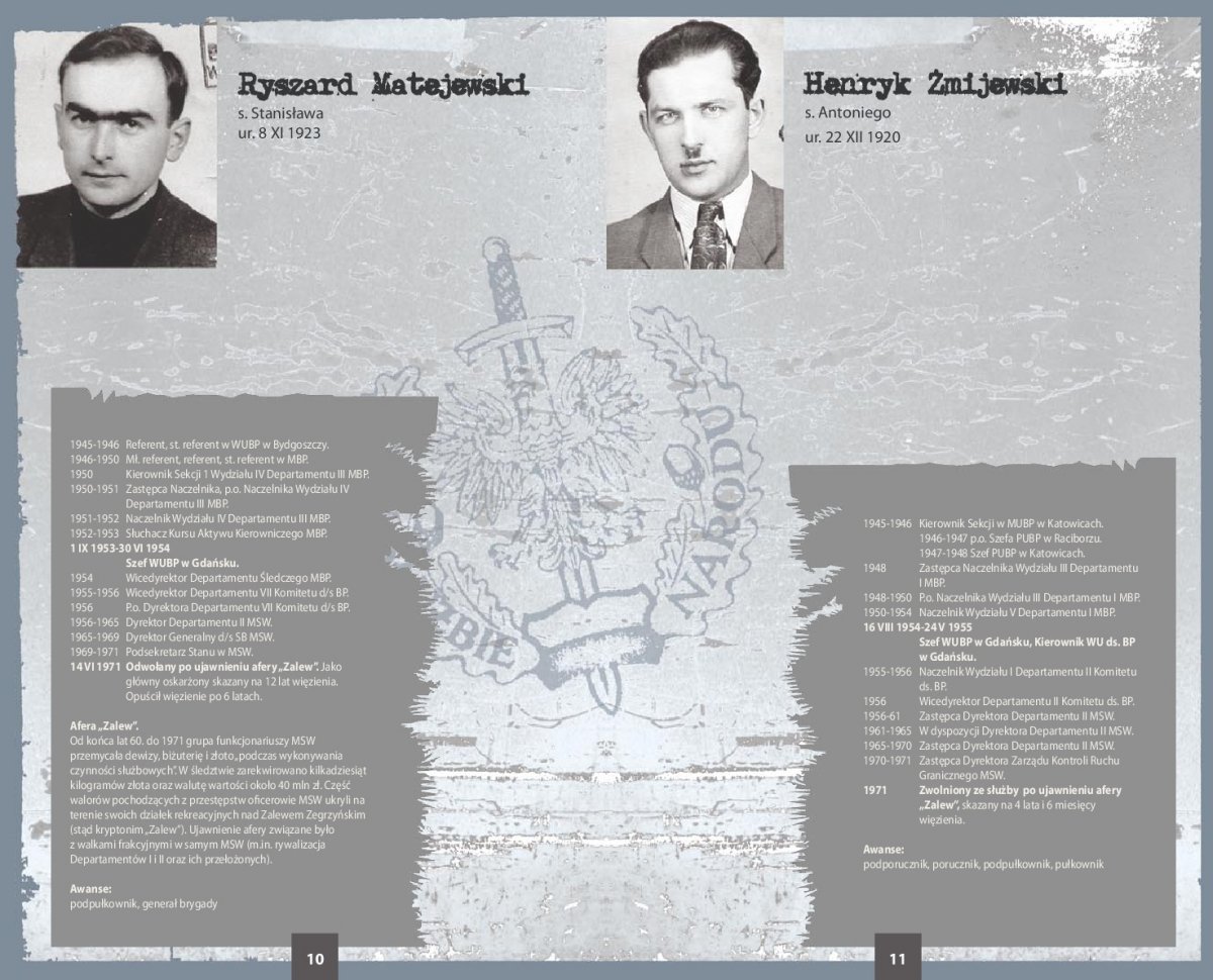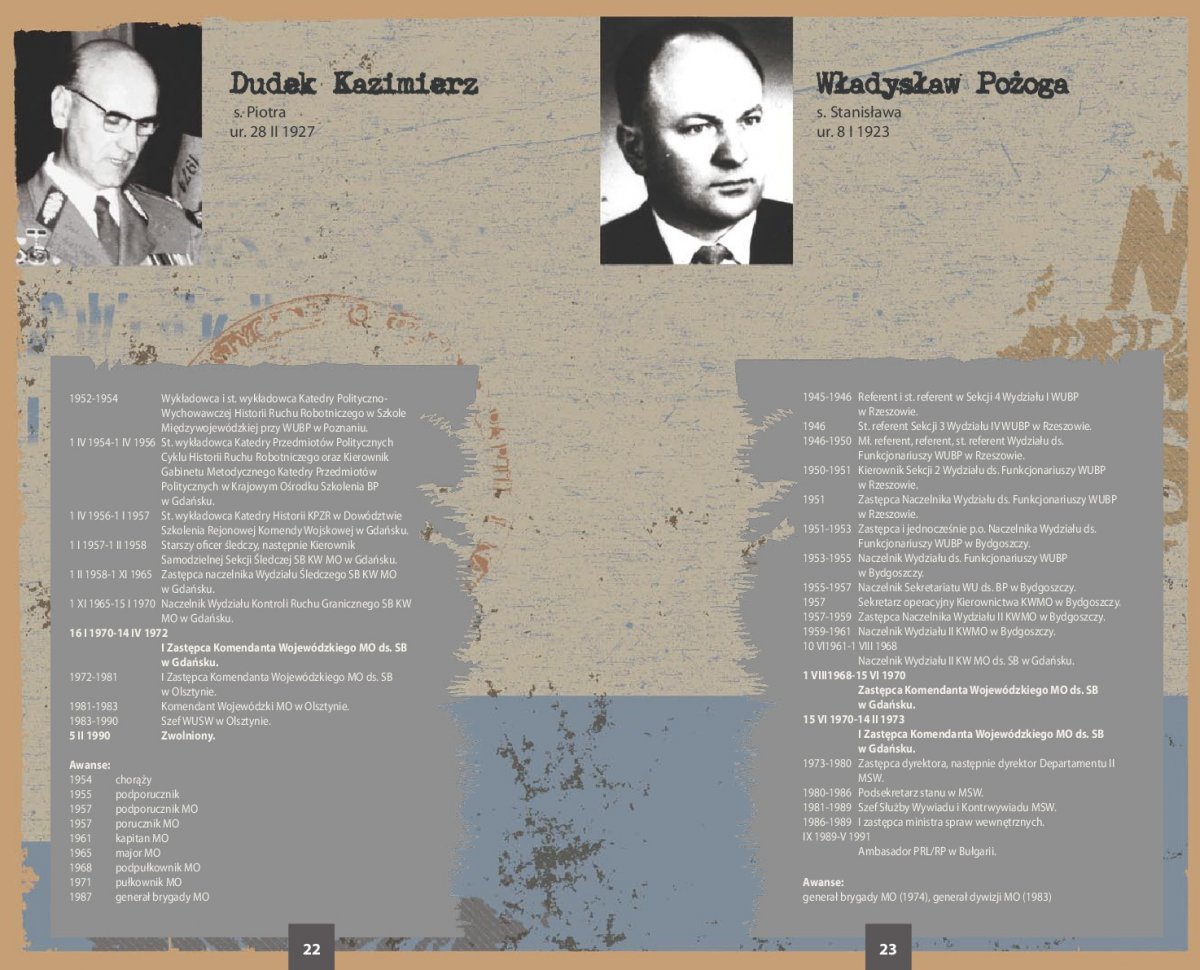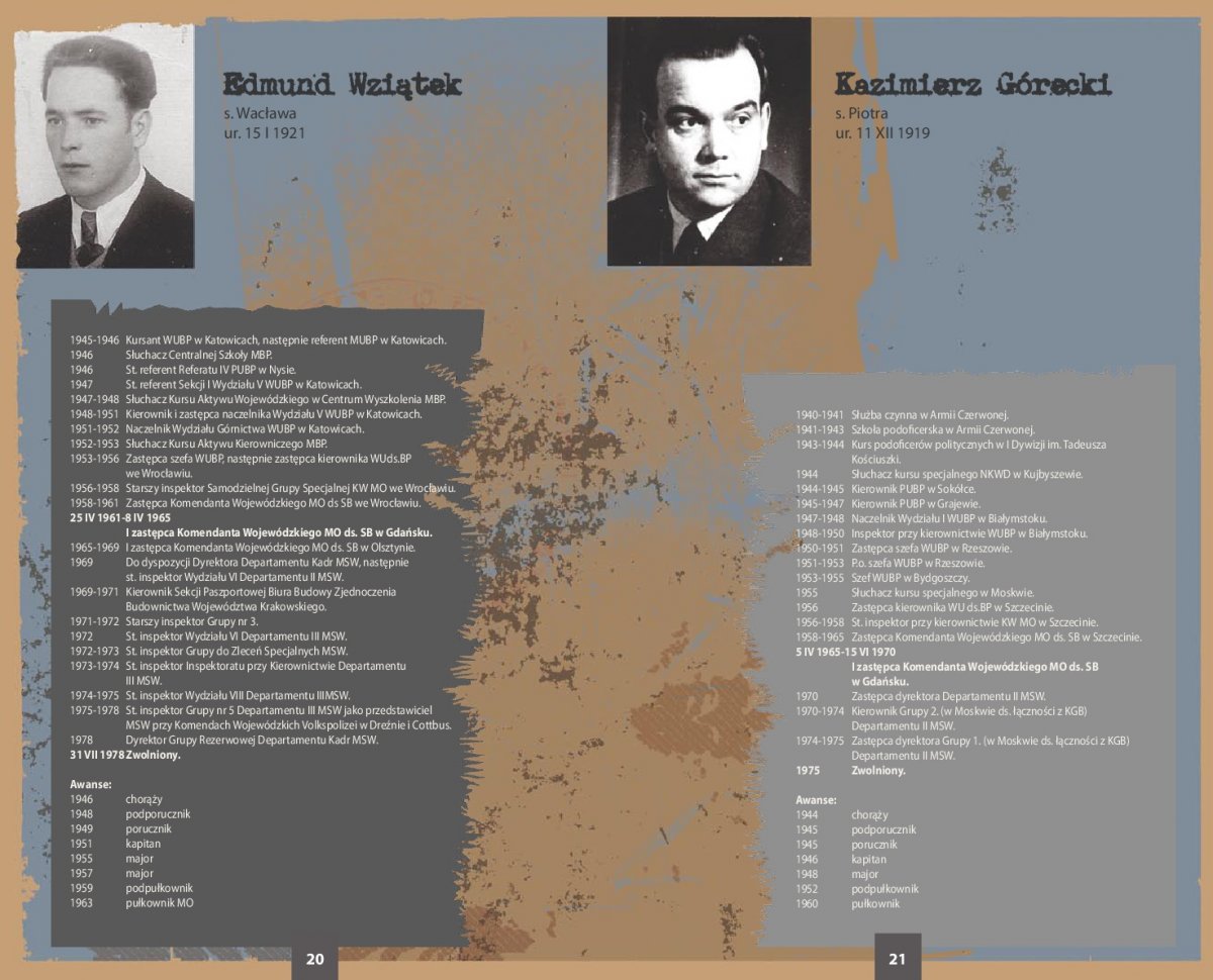 Ekspozycja zawiera zdjęcia i życiorysy 66 najważniejszych przedstawicieli kadry kierowniczej SB województwa gdańskiego w latach 1945-1990. Szczegółowe biogramy sporządzono na podstawie akt personalnych funkcjonariuszy UB/SB ze zbiorów archiwów IPN oraz przechowywanych w tych archiwach rozkazów personalnych i awansowych.