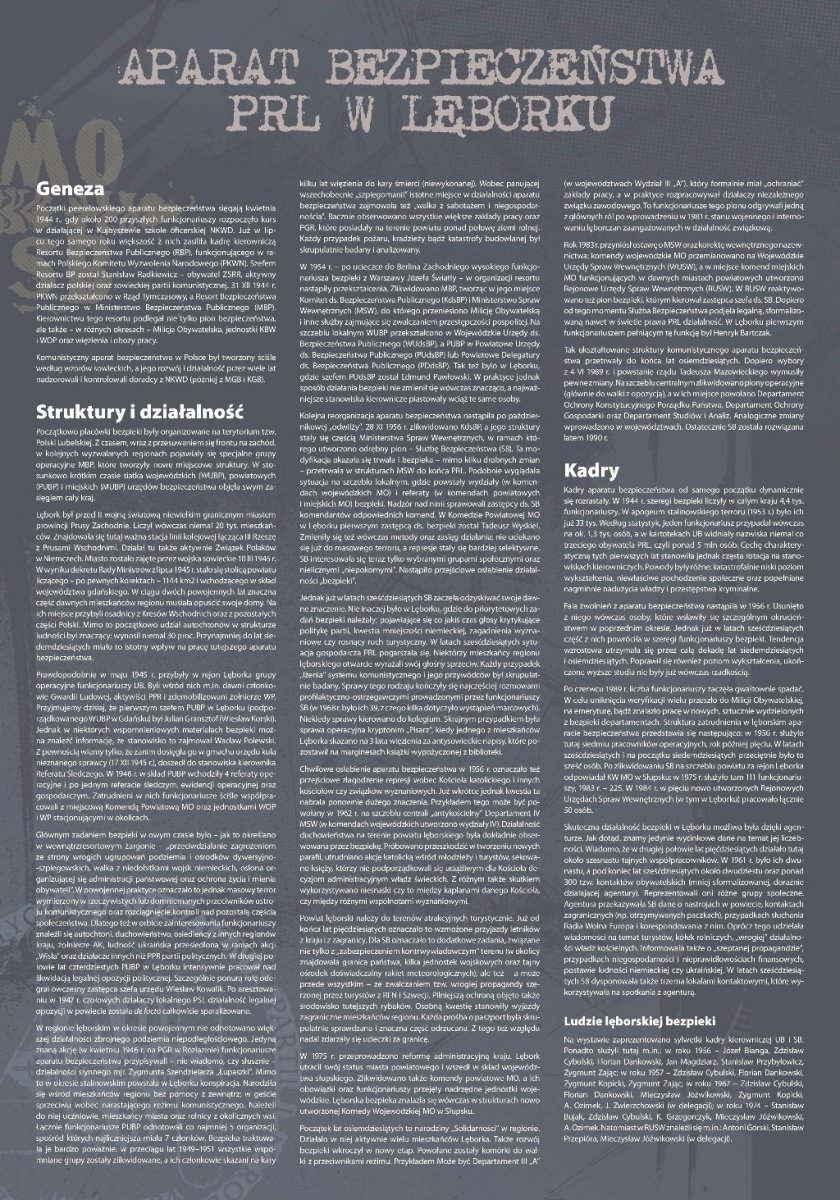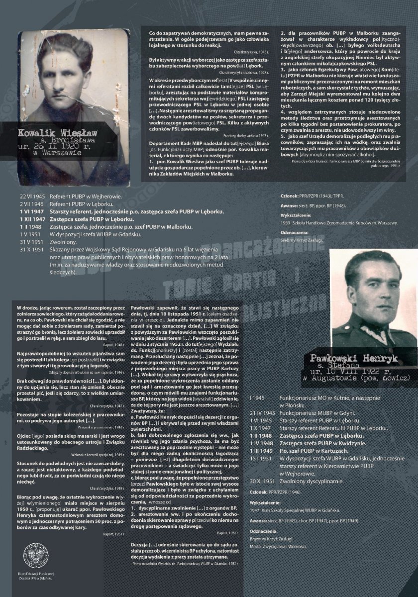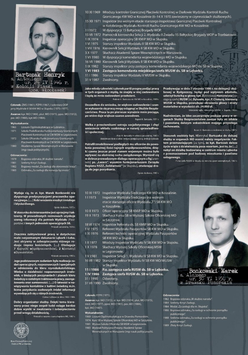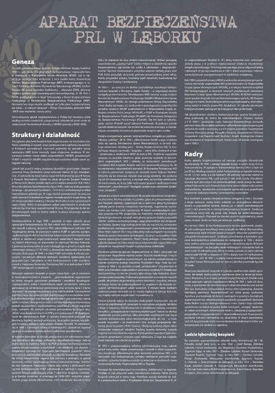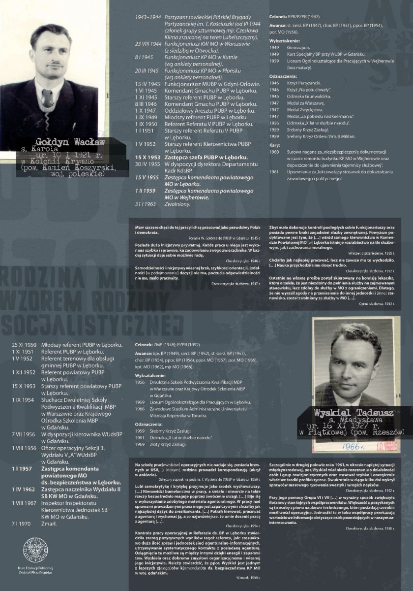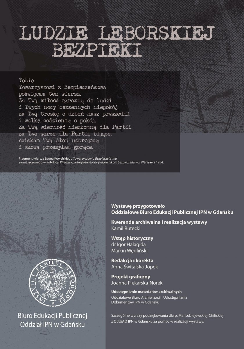 Wystawa jest częścią ogólnopolskiego projektu wystawienniczego IPN, mającego na celu przybliżenie społeczeństwu historii bezpieki i sylwetek kadry kierowniczej UB/SB, w pierwszym rzędzie odpowiedzialnej za represje wobec Polaków, sprzeciwiających się utrzymywaniu w kraju reżimu komunistycznego. Na jedenastu planszach opatrzonych zdjęciami oraz dokumentacją z akt osobowych przedstawiono w sumie sylwetki 18 funkcjonariuszy UB/SB, zatrudnionych w latach 1945–1990 na stanowiskach kierowniczych w lęborskich strukturach komunistycznego aparatu represji. Wystawę przygotował Kamil Rutecki przy współpracy z dr. Igorem Hałagidą i Marcinem Węglińskim (pracownikami pionu historycznego IPN w Gdańsku).