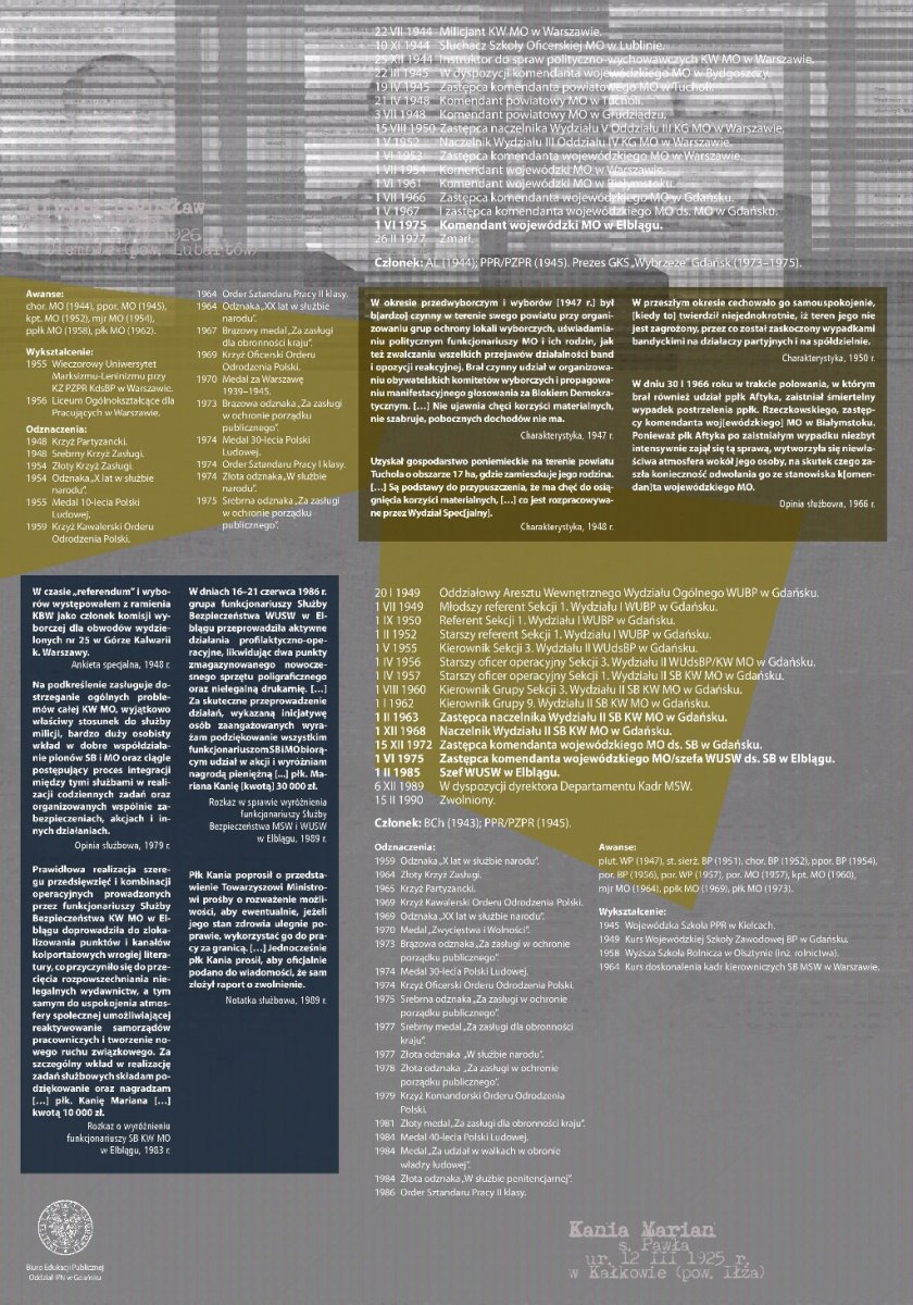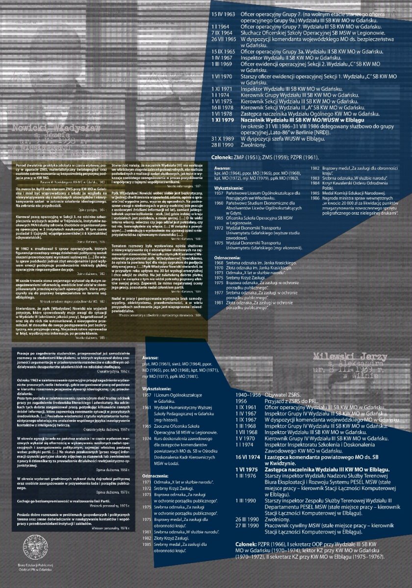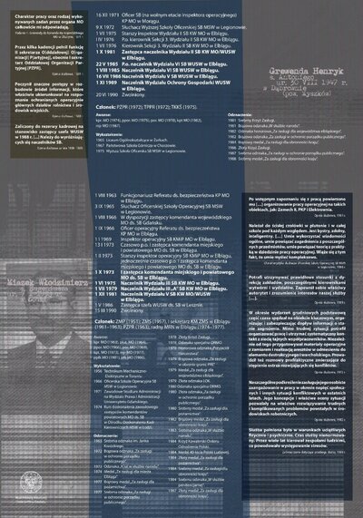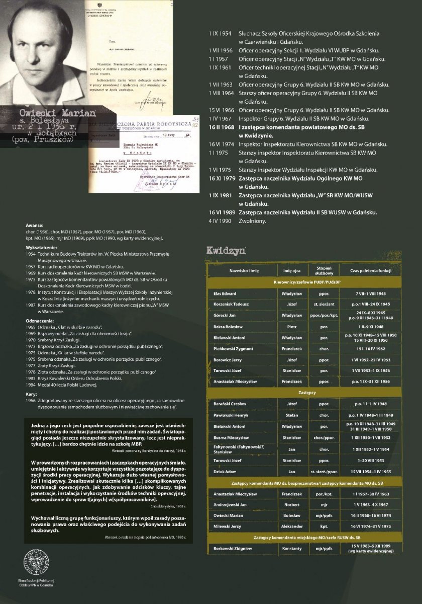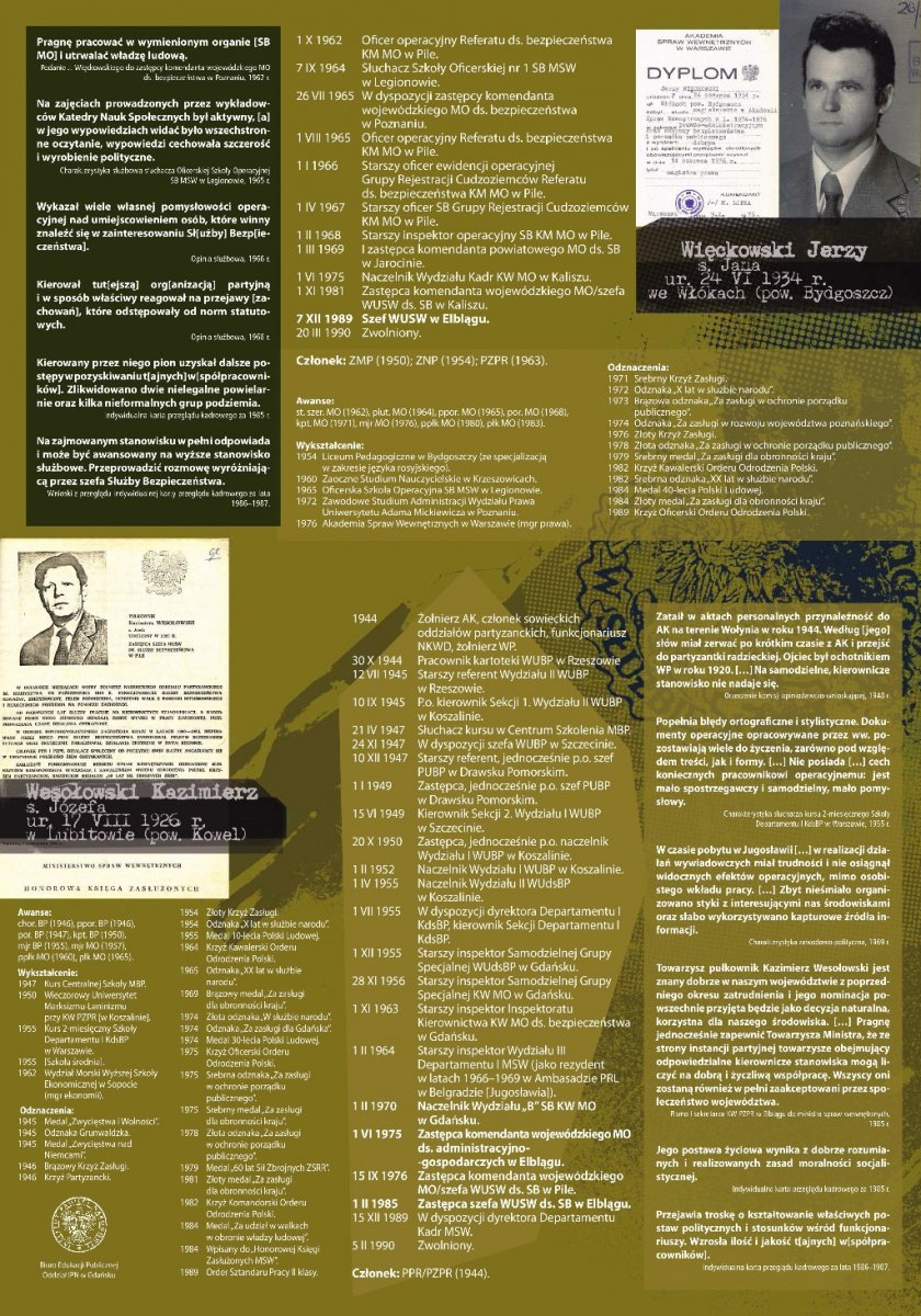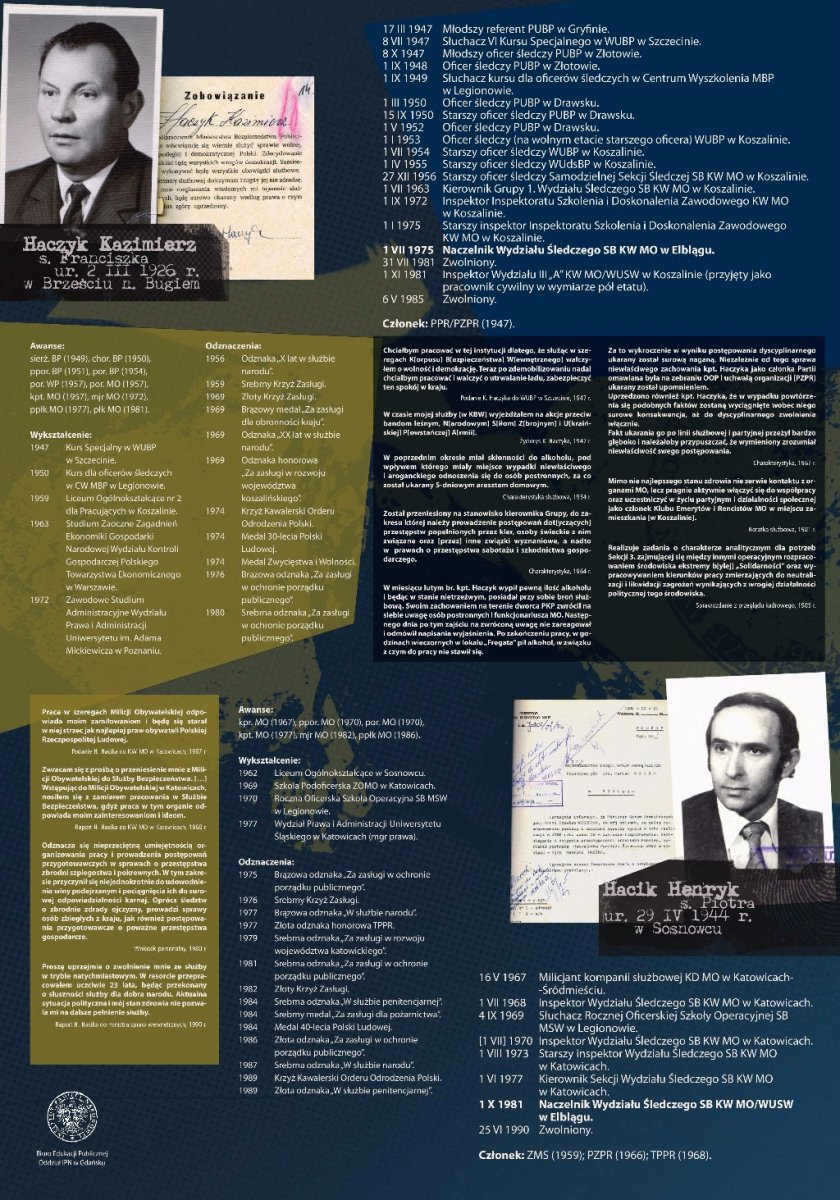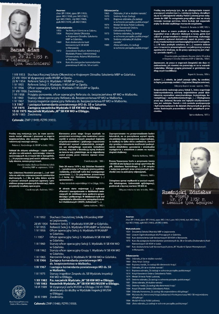 Ekspozycja zawiera zdjęcia i życiorysy najważniejszych przedstawicieli kadry kierowniczej SB województwa elbląskiego w latach 1975–1990. Szczegółowe biogramy sporządzono na podstawie akt personalnych funkcjonariuszy SB ze zbiorów archiwów IPN oraz przechowywanych w tych archiwach rozkazów personalnych i awansowych. Wystawa przed-stawia także struktury powiatowe bezpieki.