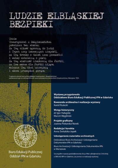 Wystawa „Ludzie elbląskiej bezpieki” jest częścią ogólnopolskiego projektu wystawienniczego IPN, mającego na celu przybliżenie społeczeństwu historii bezpieki i sylwetek kadry kierowniczej UB/SB, w pierwszym rzędzie odpowiedzialnej za represje wobec Polaków, sprzeciwiających się utrzymywaniu w kraju reżimu komunistycznego. Zrealizował ją Kamil Rutecki, a wstęp historyczny napisali dr Igor Hałagida i Marcin Węgliński (pracownicy Oddziałowego Biura Edukacji Publicznej IPN w Gdańsku).