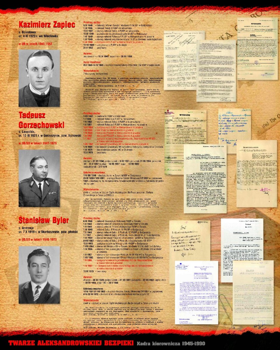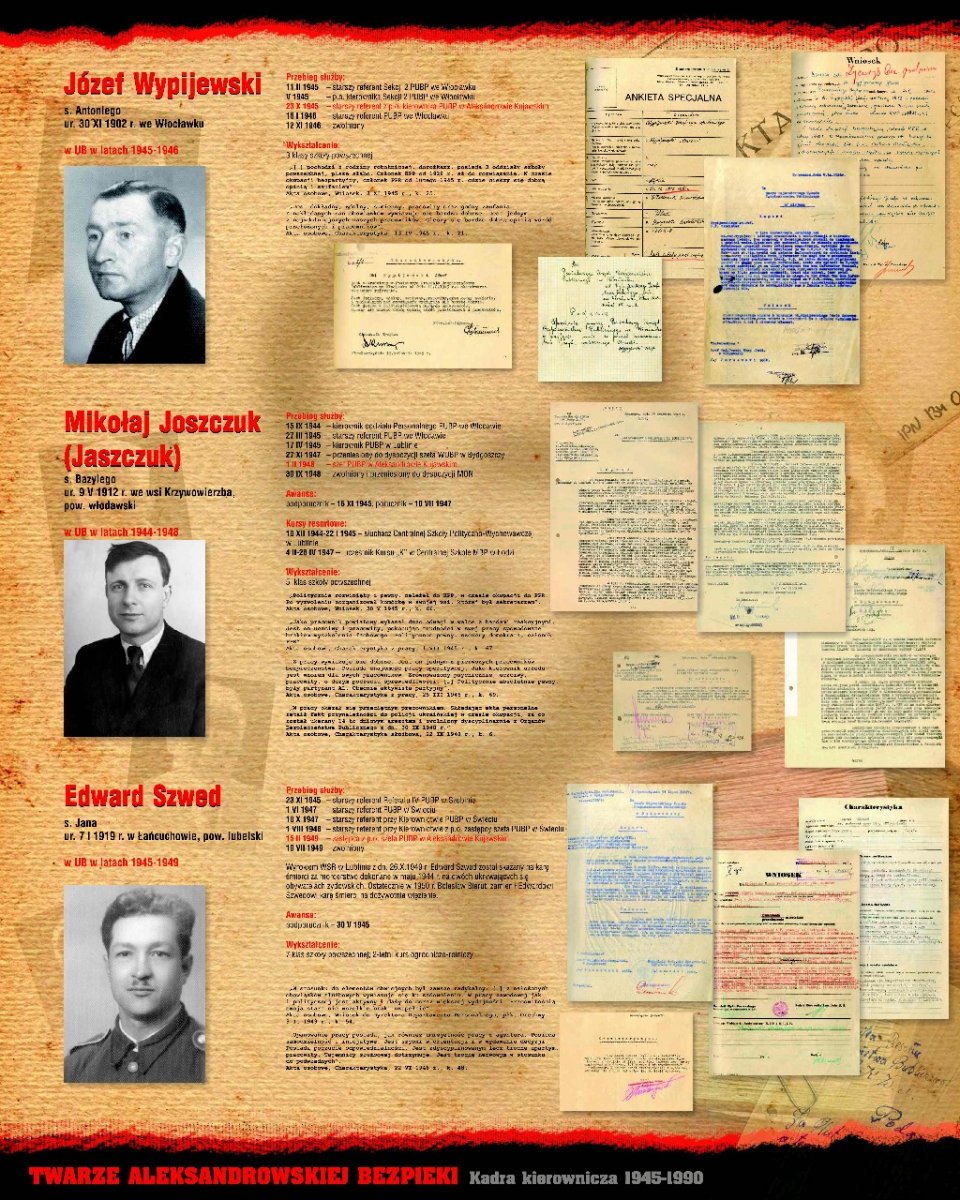 Wystawa „Twarze aleksandrowskiej bezpieki” stanowi dwupanelowe uzupełnienie ekspozycji „Twarze włocławskiej bezpieki”, która z kolei stanowi część ogólnopolskiego projektu wystawienniczego IPN, mającego na celu przybliżenie społeczeństwu historii bezpieki i sylwetek kadry kierowniczej UB/SB, w pierwszym rzędzie odpowiedzialnej za represje wobec Polaków sprzeciwiających się utrzymywaniu w kraju reżimu komunistycznego.
