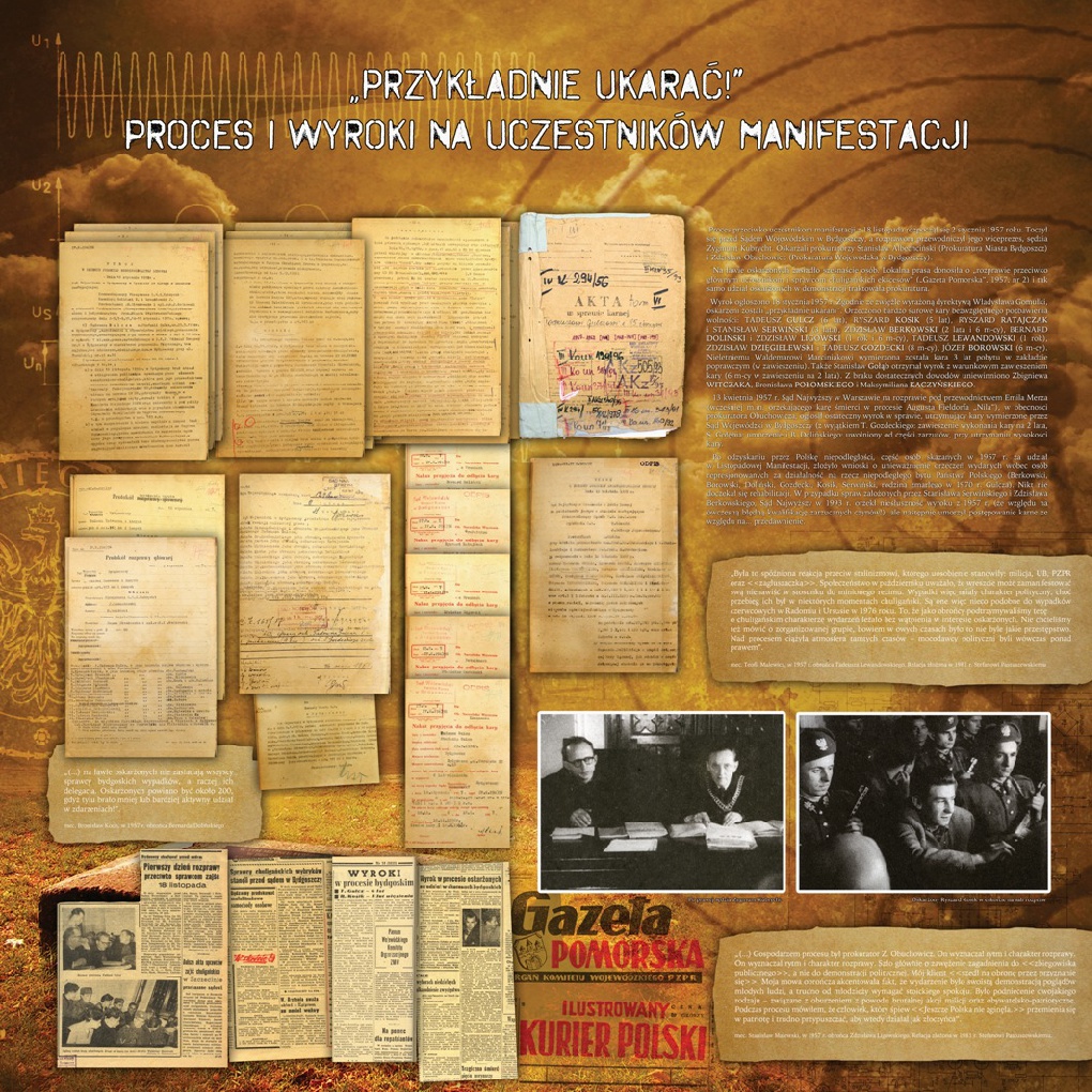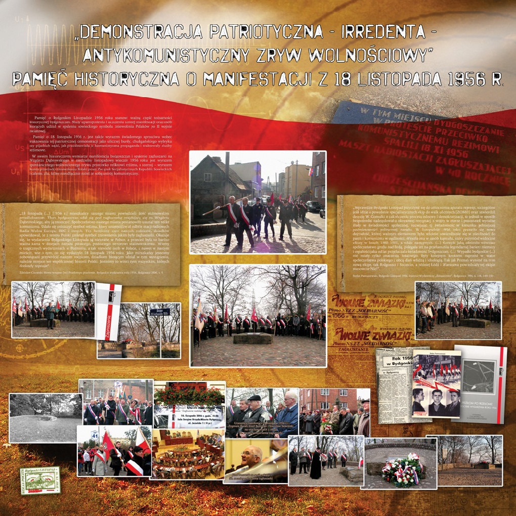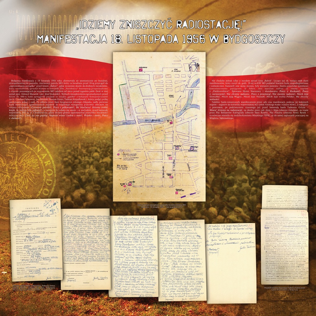 Zdjęcia oraz dokumenty archiwalne przedstawione na wystawie pochodzą ze zbiorów archiwalnych IPN (Bydgoszcz, Gdańsk i Warszawa), a także publikacji oraz prasy. Wystawę przygotował historyk z pionu edukacyjno-naukowego Delegatury IPN w Bydgoszczy dr Marek Szymaniak. Została po raz pierwszy zaprezentowana w Bydgoszczy w 55. rocznicę opisywanych wydarzeń, 18 listopada 2011 roku.