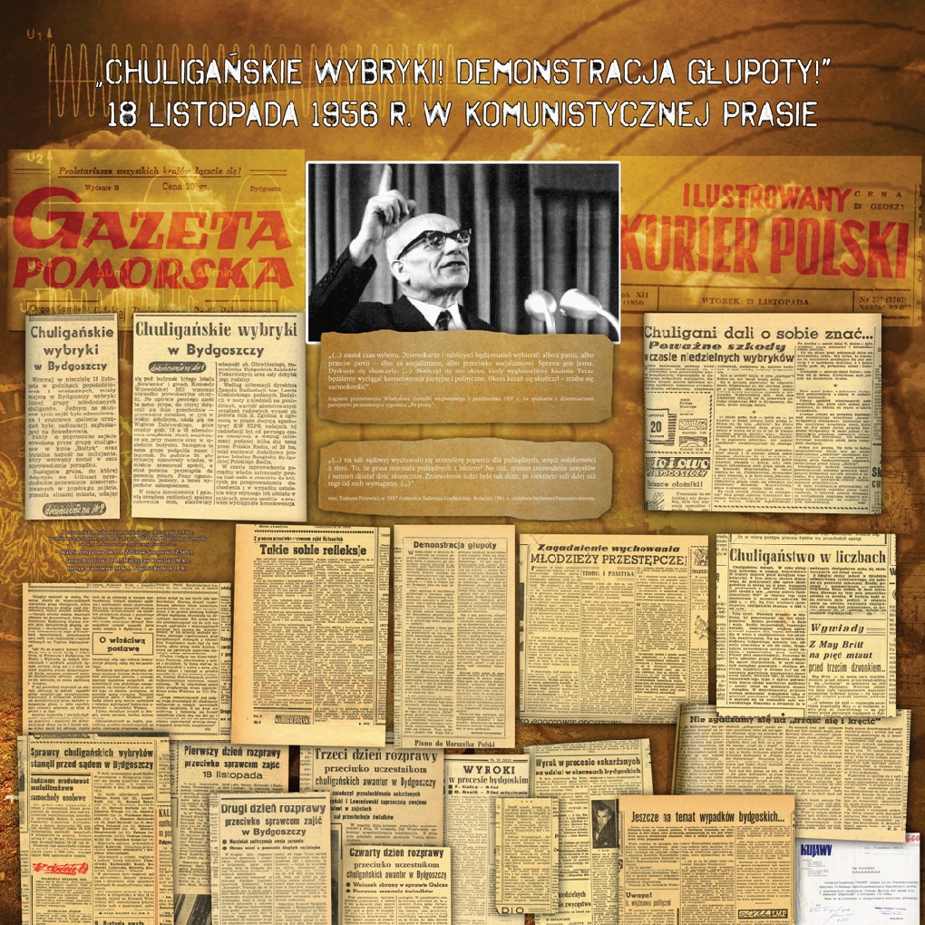 Wystawa „Bydgoski Listopad 1956 roku” poświęcona jest zajściom w Bydgoszczy, które miały miejsce 18 listopada 1956 roku, a także represjom wobec manifestantów oraz oddźwiękom, jakie wydarzenia, które przeszły do historii pod nazwą Bydgoskiego Listopada ’56, wywołały w prasie.