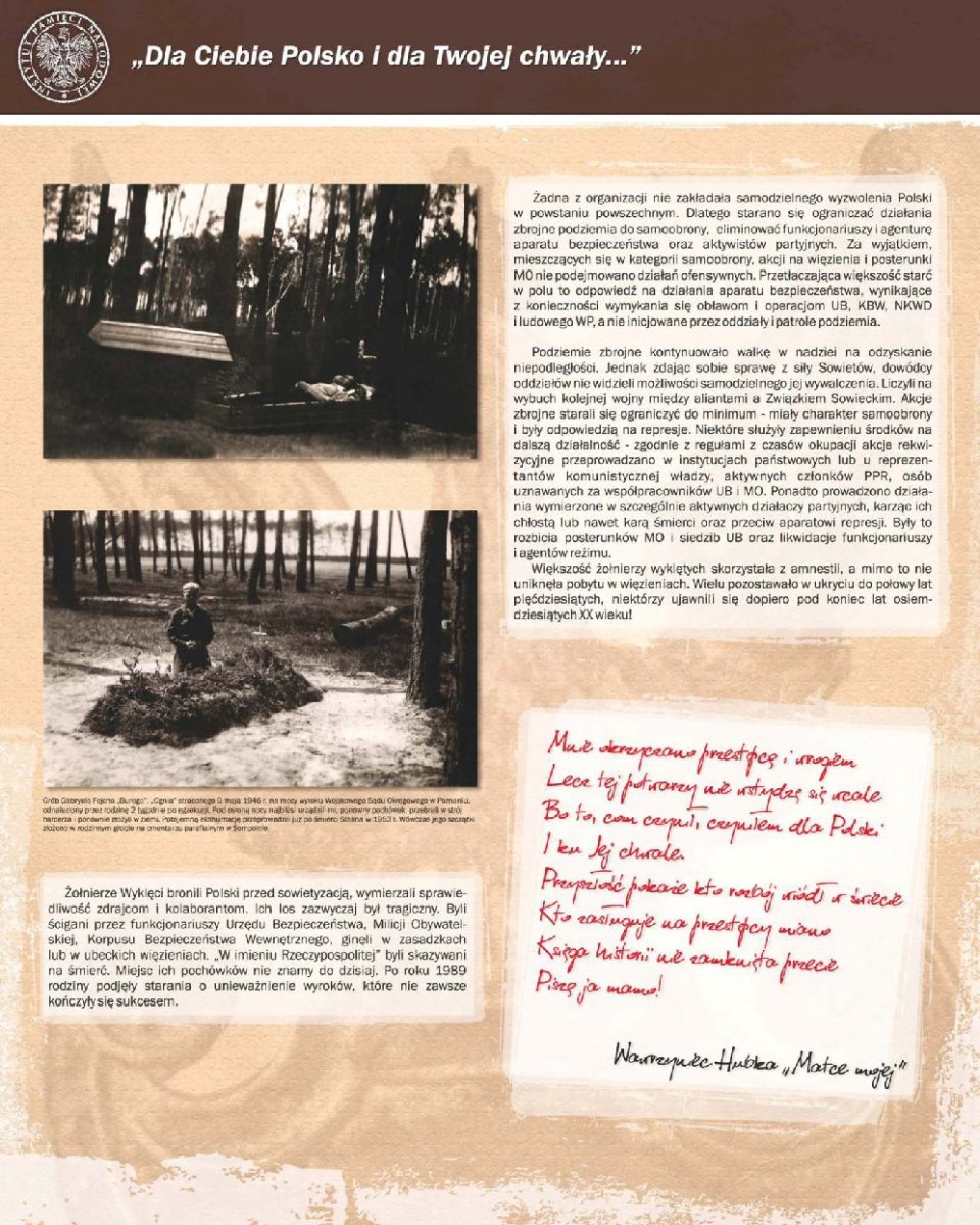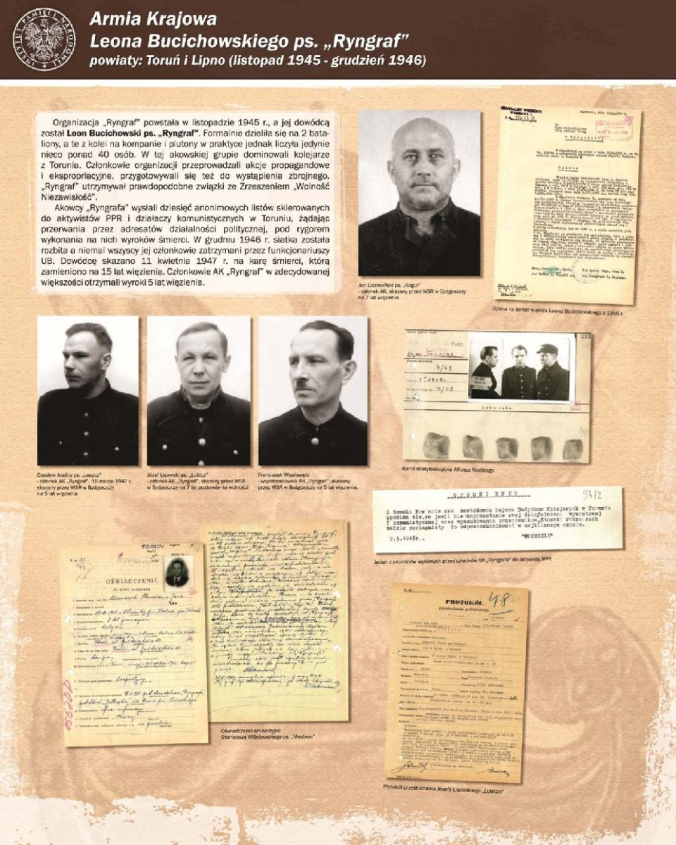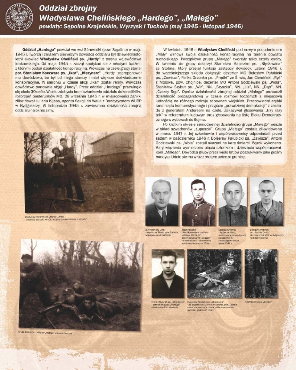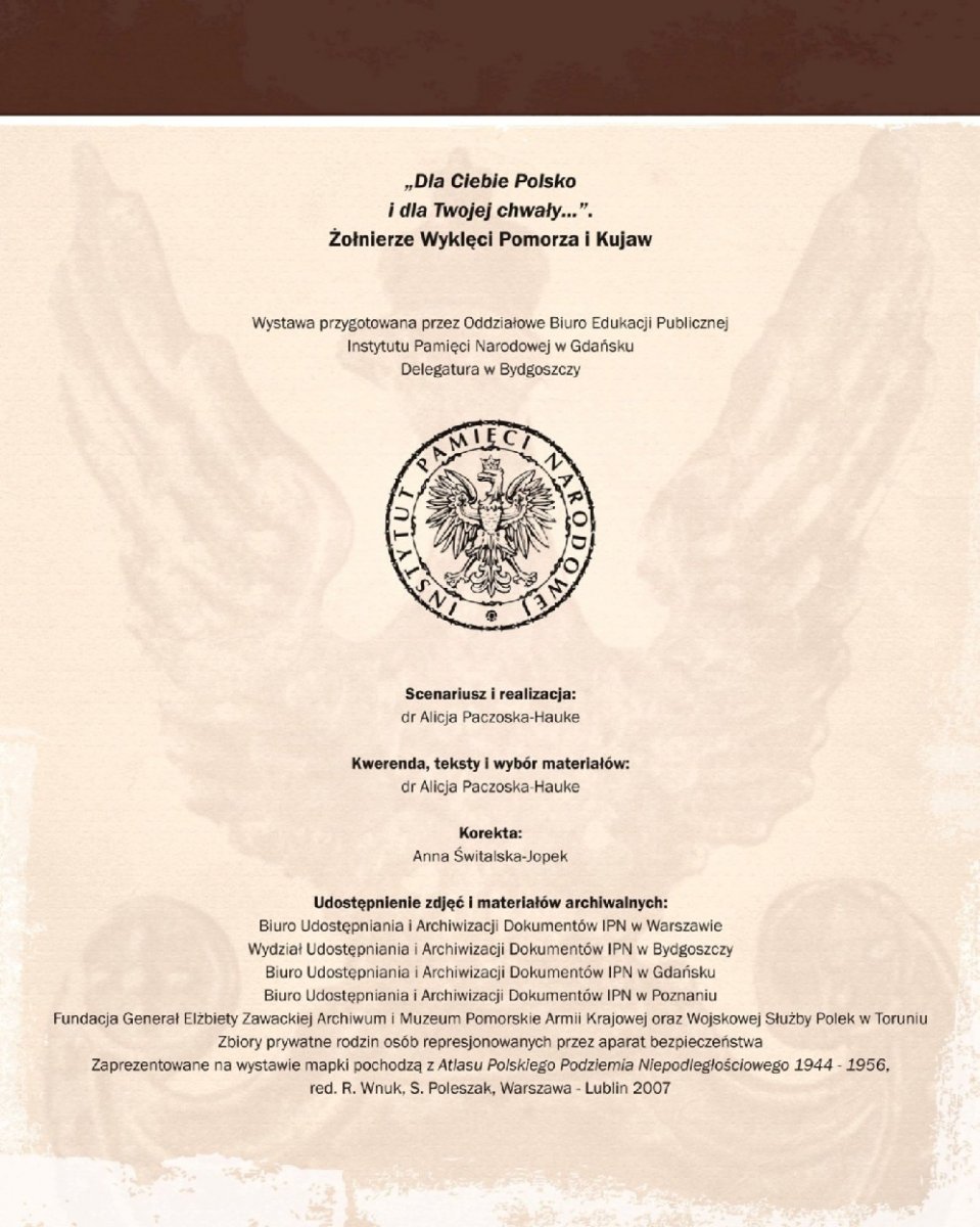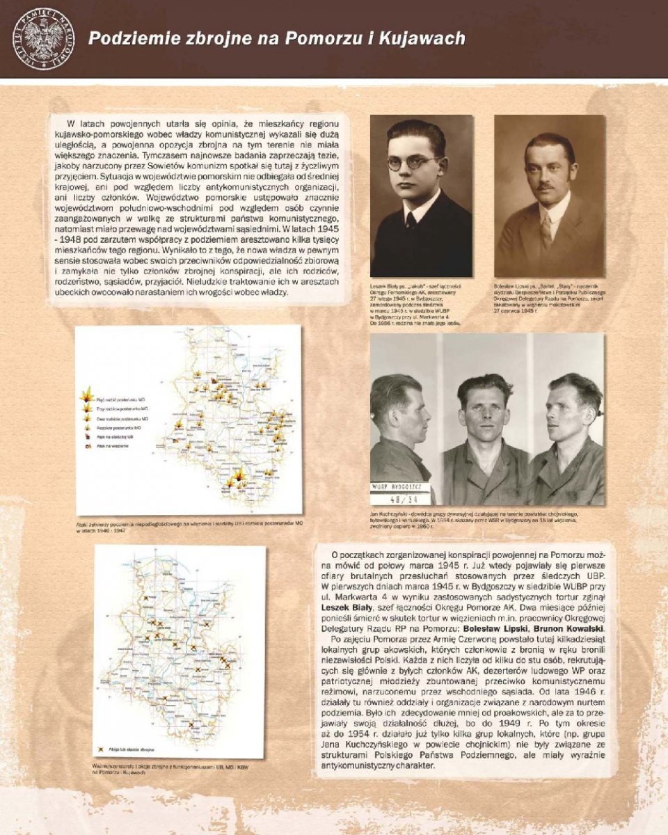 Wystawa autorstwa dr Alicji Paczoskiej-Hauke przygotowana została przez Oddziałowe Biuro Edukacji Publicznej IPN w Gdańsku – Delegaturę w Bydgoszczy. Zarysowano na niej krótką charakterystykę najważniejszych organizacji konspiracyjnych i oddziałów zbrojnych polskiego podziemia niepodległościowego, działających w latach 1945–1954 w regionie kujawsko-pomorskim (teren ówczesnego województwa pomorskiego).