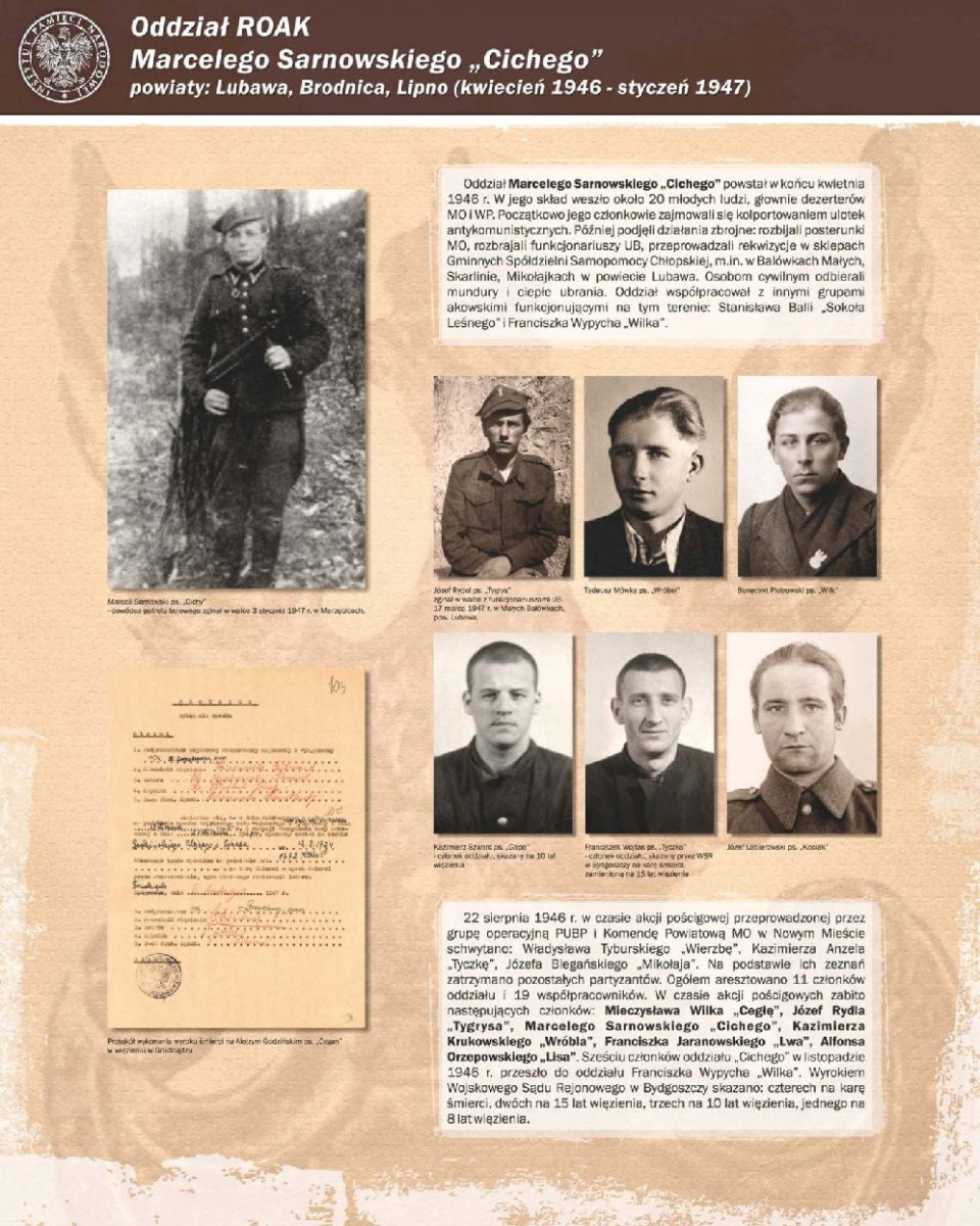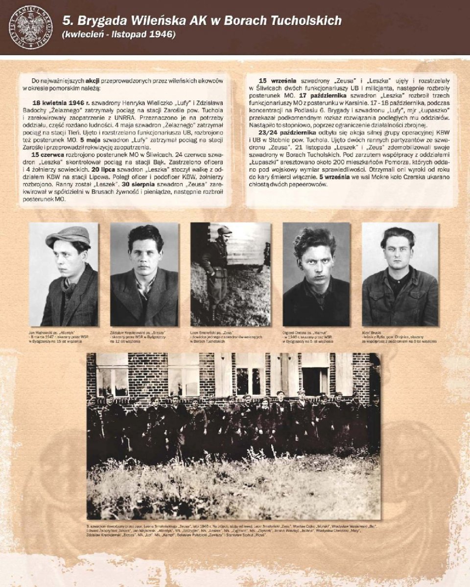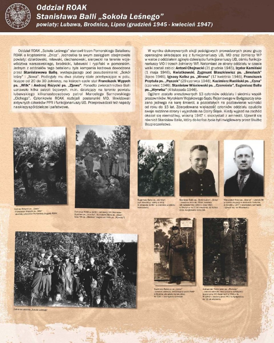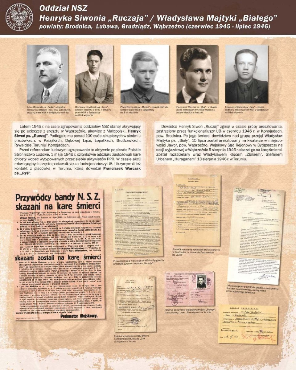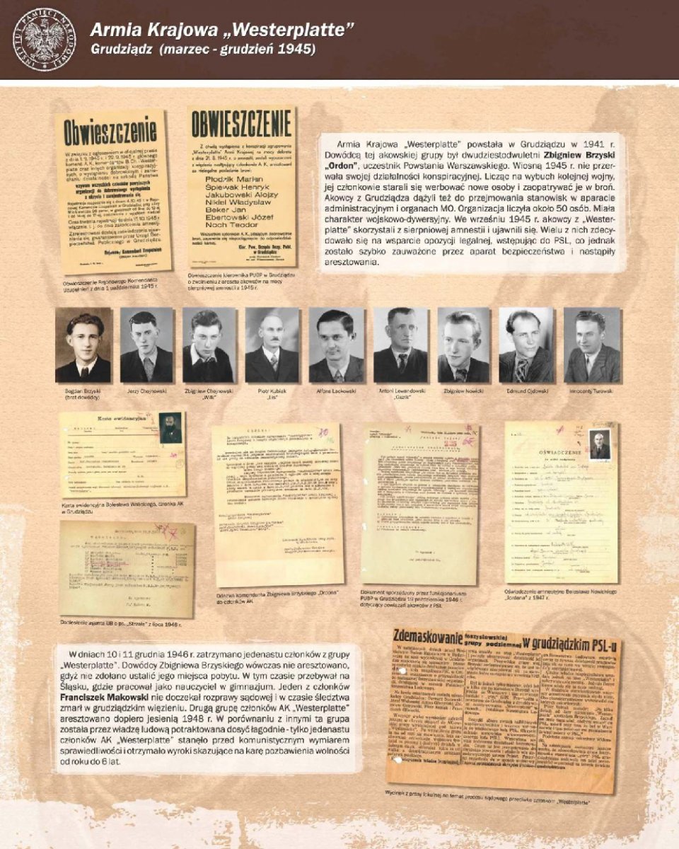 Zaprezentowano 90 dokumentów oraz około 180 zdjęć portretowych członków Pomorskiego Okręgu Armii Krajowej, Zrzeszenia Wolność i Niezawisłość, Ruchu Oporu Armii Krajowej, Narodowych Sił Zbrojnych oraz żołnierzy lokalnych oddziałów zbrojnych, m.in.: Leona Mullera „Jędrusia", Jerzego Gadzinowskiego „Szarego", Antoniego Fryszkowskiego „Rysia", Stanisława Kamińskiego „Młota".
