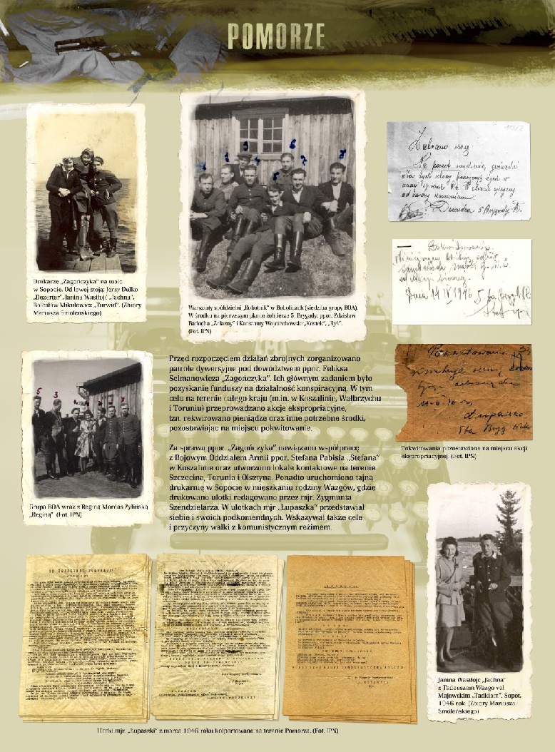 Materiał ilustracyjny zaprezentowany na panelach wystawy pochodzi w przeważającej części ze zbiorów archiwalnych Instytutu Pamięci Narodowej oraz zbiorów prywatnych. Autorkami wystawy są Izabela Brzezińska, historyk z pionu edukacyjno-naukowego gdańskiego Oddziału IPN oraz Marzena Kruk, naczelnik archiwum gdańskiego Oddziału IPN.
