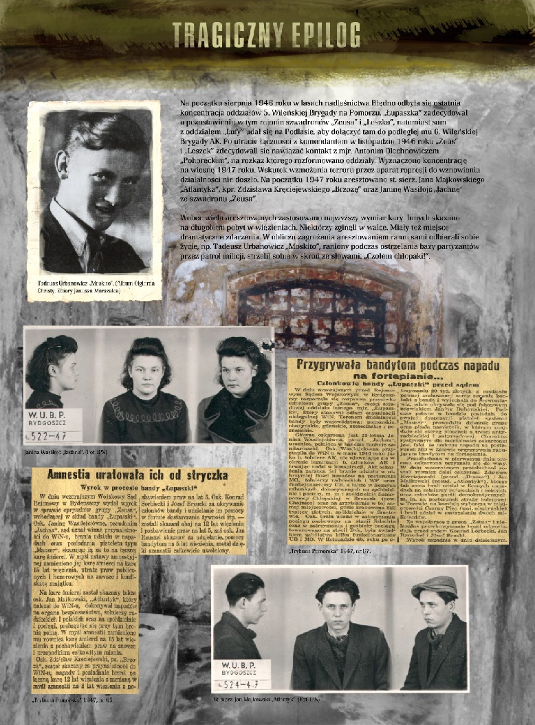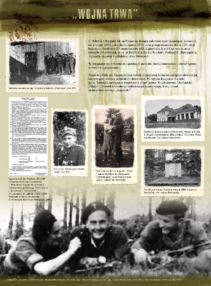 Wystawa jest pierwszą od ponad 10 lat próbą zaprezentowania tragicznej, ale i bohaterskiej zarazem historii 5. Wileńskiej Brygady Armii Krajowej. Przedstawiono na niej w zarysie zarówno dzieje 5. Wileńskiej Brygady AK na Wileńszczyźnie w 1944 roku i na Białostoczyźnie w 1945 roku, jak i działania oddziałów legendarnego mjr. Zygmunta Szendzielarza „Łupaszki” już na Pomorzu w latach 1945–1946. Zaprezentowane zostały także poszczególne sylwetki dowódców (samego „Łupaszki” oraz jego podkomendnych, w tym sanitariuszek i łączniczek). Osobne miejsce na wystawie poświęcono działalności komunistycznego aparatu bezpieczeństwa oraz próbom upamiętnienia poległych, przez dzięsięciolecia zapomnianych lub oczernianych, Żołnierzy Wyklętych 5. Wileńskiej Brygady AK. Pierwsza oficjalna prezentacja wystawy miała miejsce 5 lipca 2012 roku w Lubichowie, podczas zakończenia X Rajdu Pieszego Szlakiem Żołnierzy 5. Wileńskiej Brygady AK mjr. „Łupaszki”.