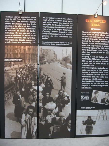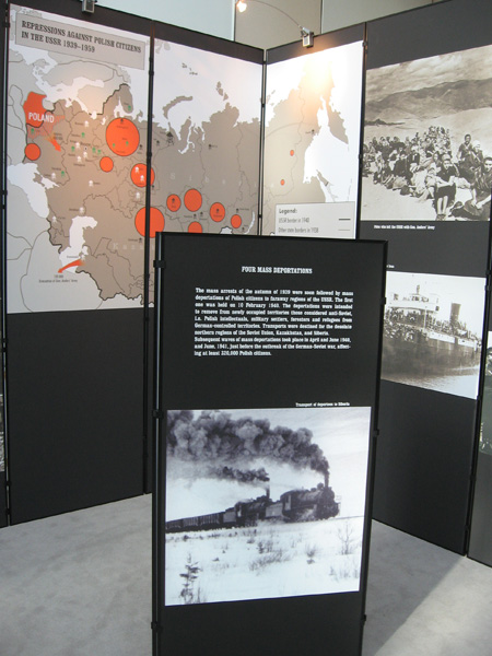 Aby podkreślić, że w polskiej pamięci o II wojnie światowej wysiedlenia nie są najważniejszym elementem, na monitorze w centrum wystawy pokazana jest prezentacja multimedialna mówiąca o martyrologii obywateli polskich (zbrodnie na ludności cywilnej i jeńcach wojennych w 1939 r., egzekucje, Katyń, Palmiry, obozy koncentracyjne).