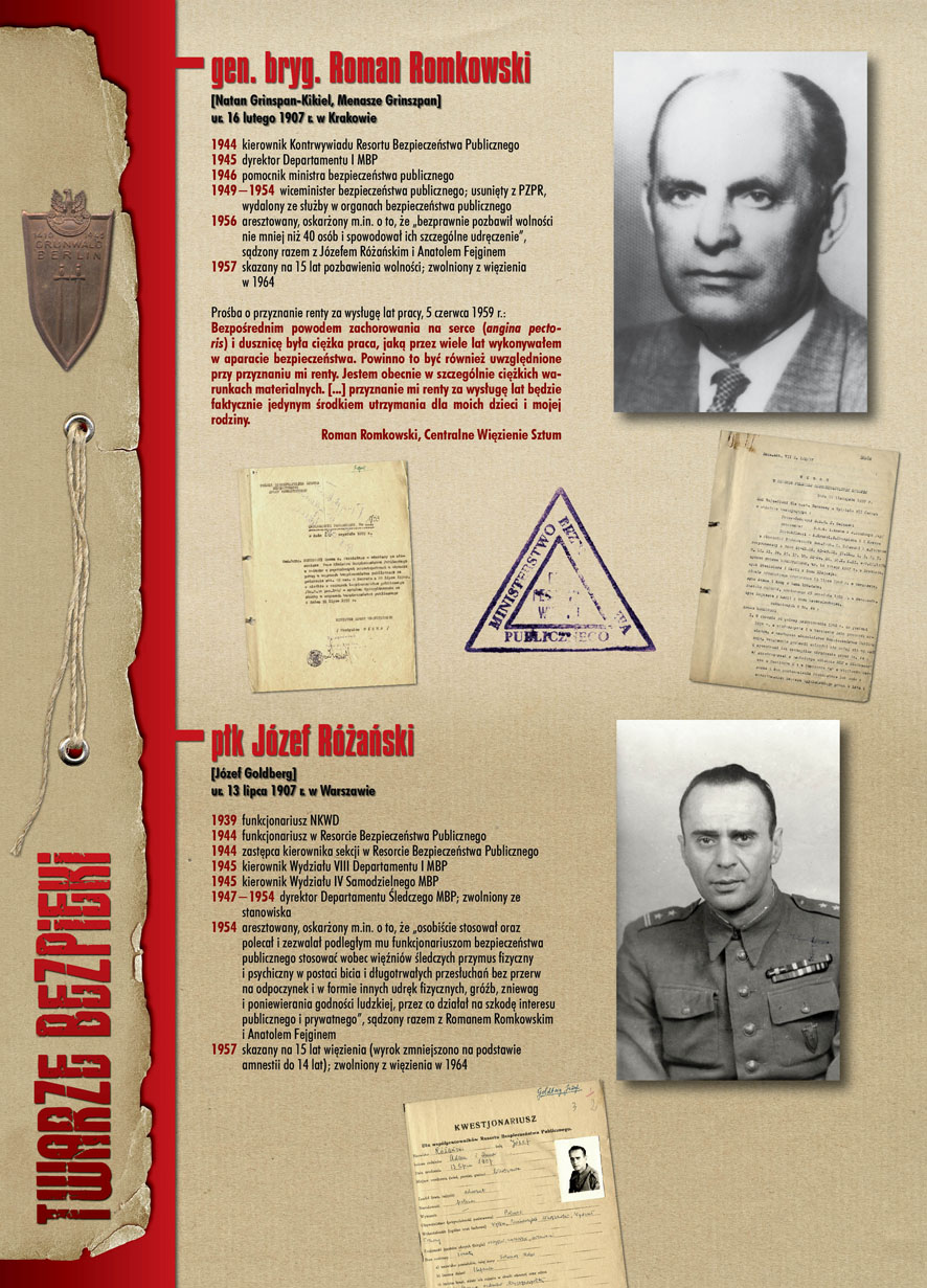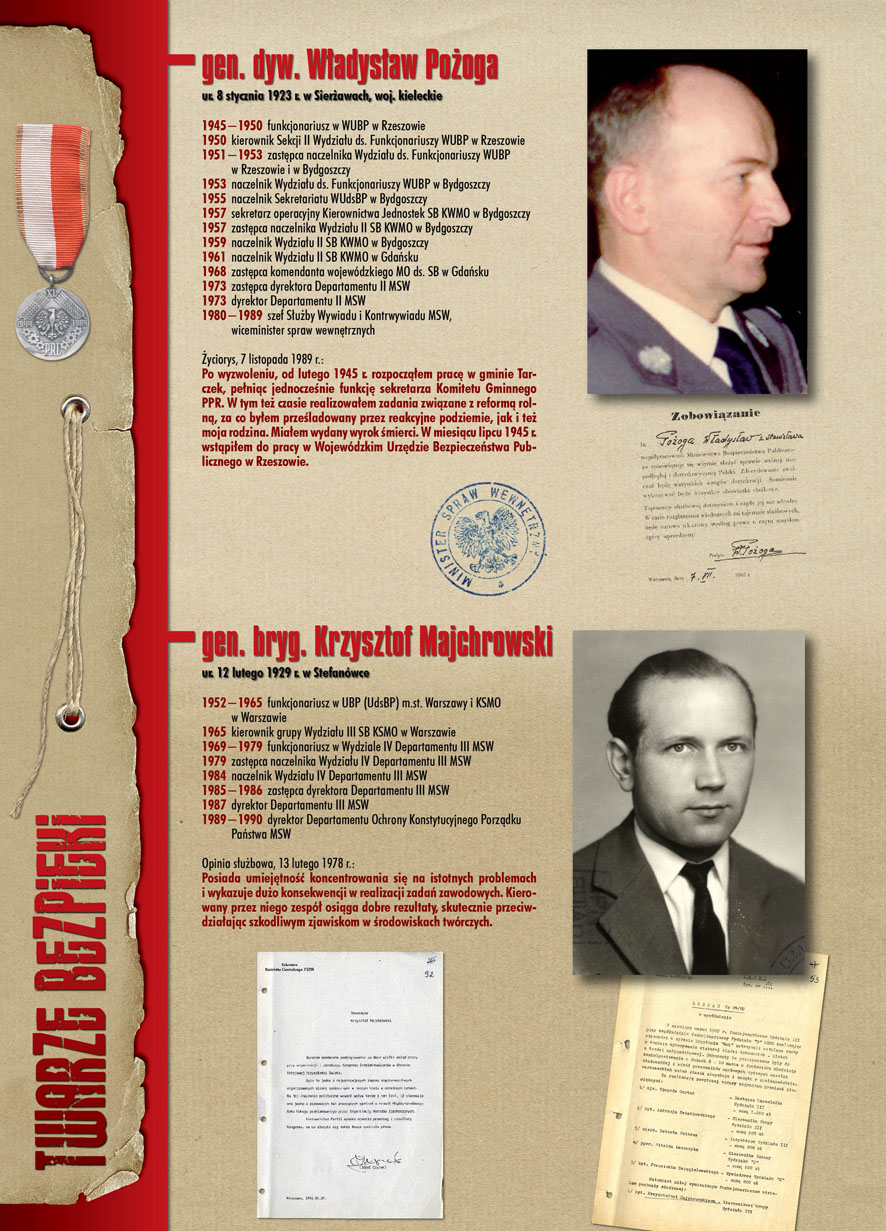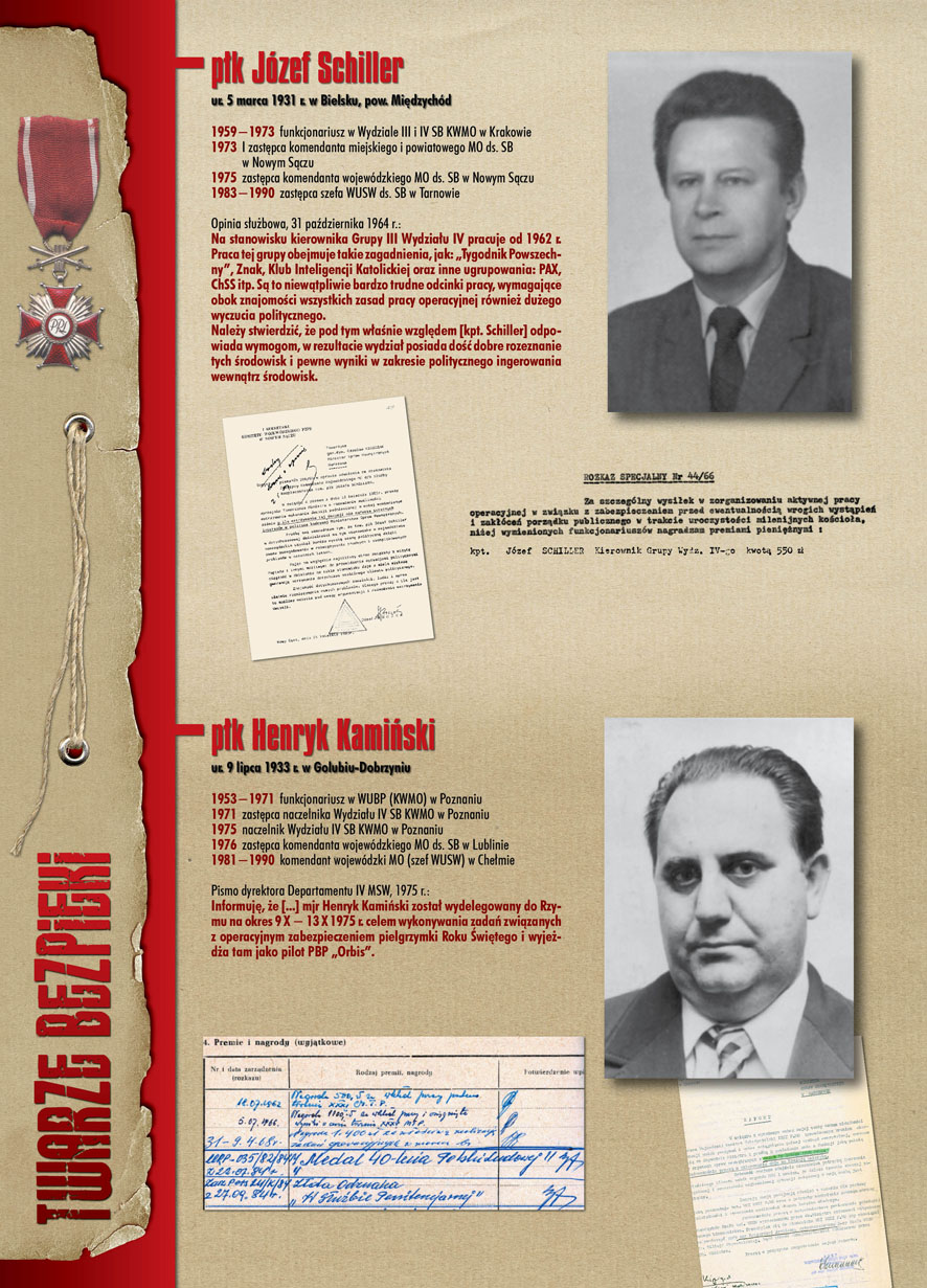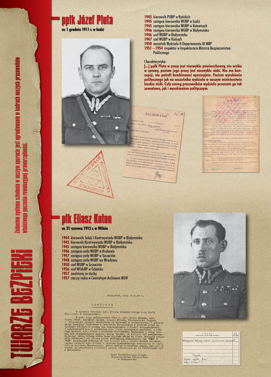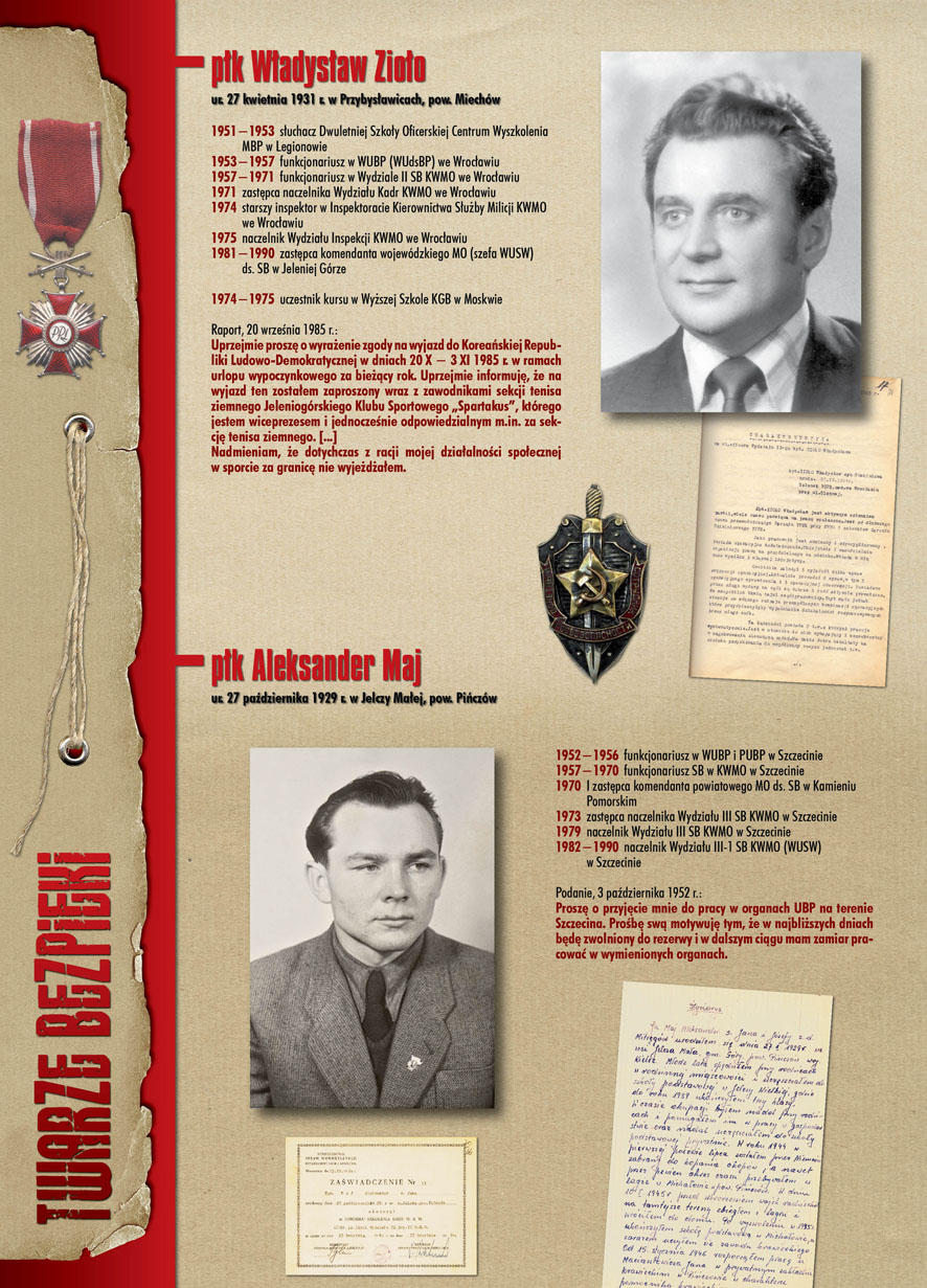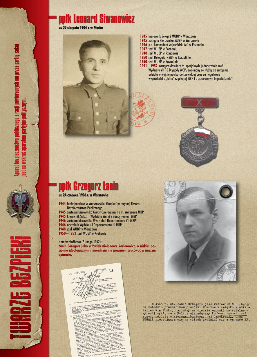 W dniu 22 lipca 2007 roku prezes IPN Janusz Kurtyka otworzył w Alejach Ujazdowskich (vis ả vis gmachu Ministerstwa Sprawiedliwości) plenerową wystawę „Twarze Bezpieki 1944–1990”. *** Aparat bezpieczeństwa stanowił, w myśl ukutego w Związku Sowieckim sloganu, „tarczę i miecz Partii”. Był on głównym narzędziem, przy pomocy którego komuniści zdobyli, umocnili i przez dziesiątki lat bronili dyktatury PZPR w Polsce. Jego działalność pociągnęła za sobą tysiące zabitych i setki tysięcy prześladowanych. Za zbrodnie i przestępstwa bezpieki odpowiadają jednak nie anonimowe struktury, lecz tworzący je funkcjonariusze.