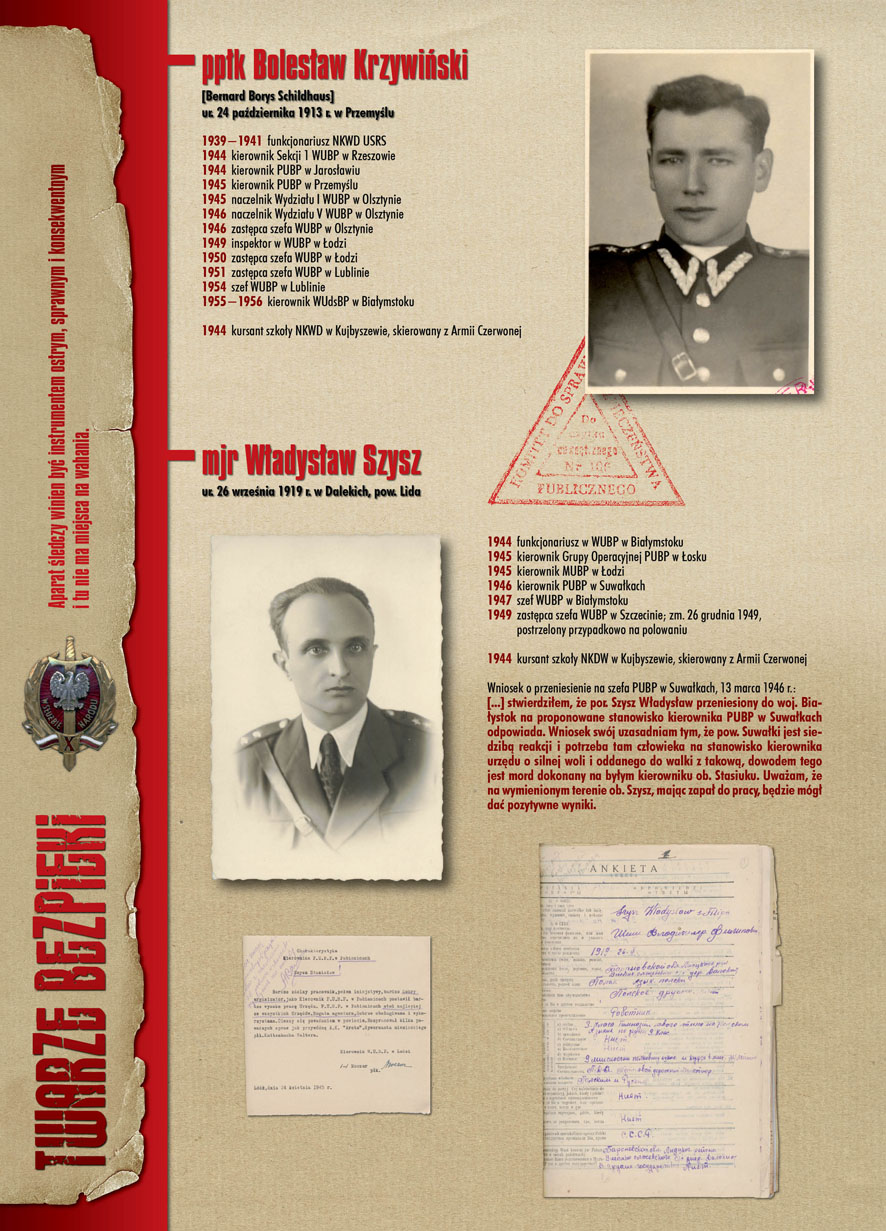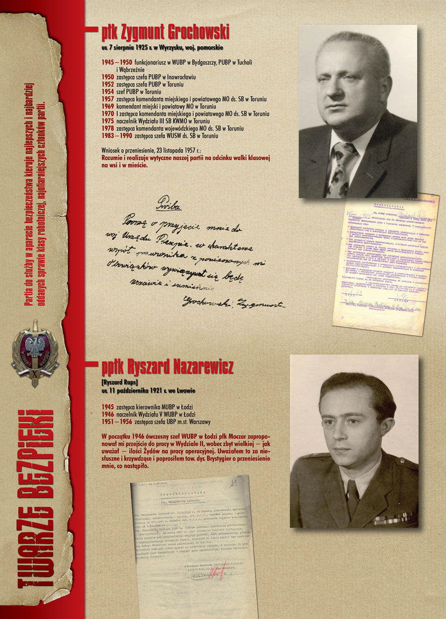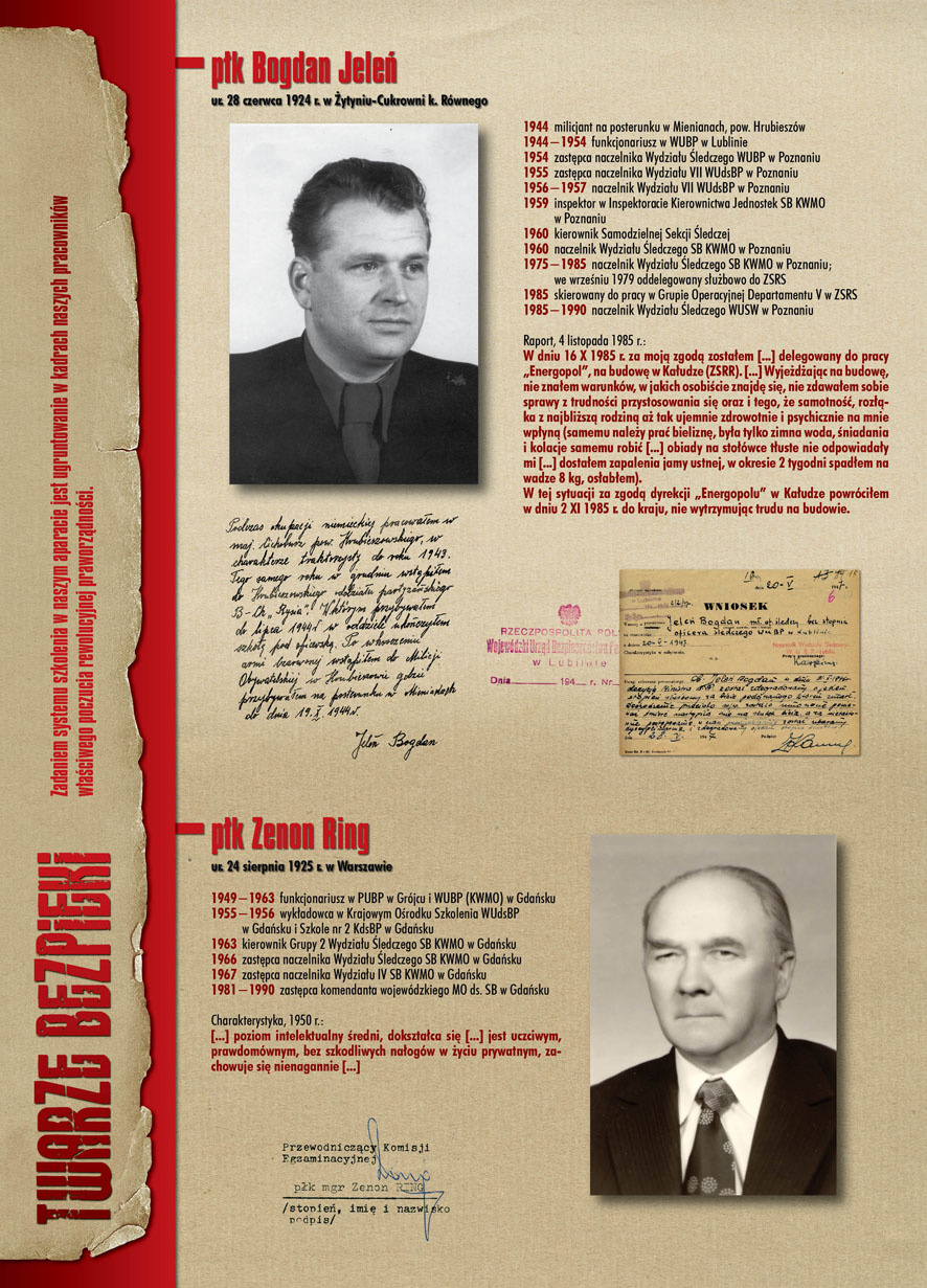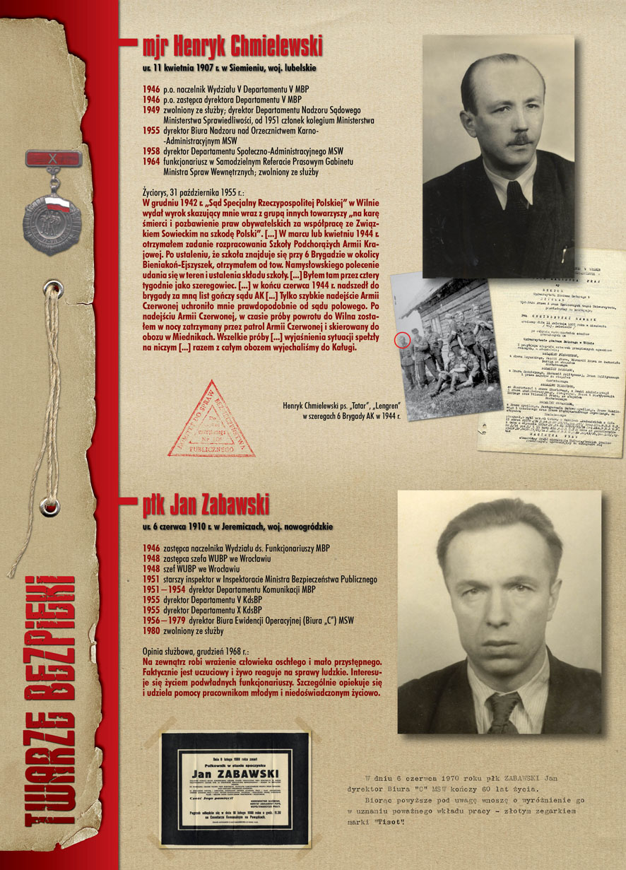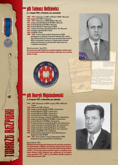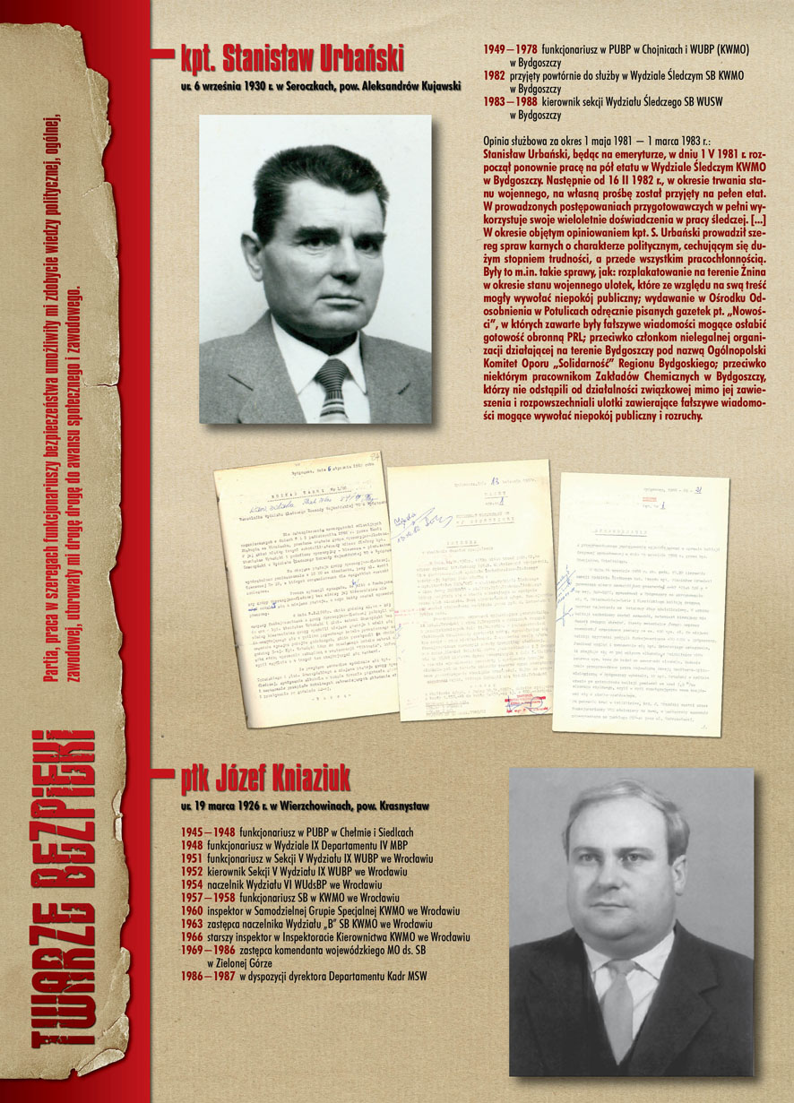 W dniu 22 lipca 2007 roku prezes IPN Janusz Kurtyka otworzył w Alejach Ujazdowskich (vis ả vis gmachu Ministerstwa Sprawiedliwości) plenerową wystawę „Twarze Bezpieki 1944–1990”. *** Aparat bezpieczeństwa stanowił, w myśl ukutego w Związku Sowieckim sloganu, „tarczę i miecz Partii”. Był on głównym narzędziem, przy pomocy którego komuniści zdobyli, umocnili i przez dziesiątki lat bronili dyktatury PZPR w Polsce. Jego działalność pociągnęła za sobą tysiące zabitych i setki tysięcy prześladowanych. Za zbrodnie i przestępstwa bezpieki odpowiadają jednak nie anonimowe struktury, lecz tworzący je funkcjonariusze.