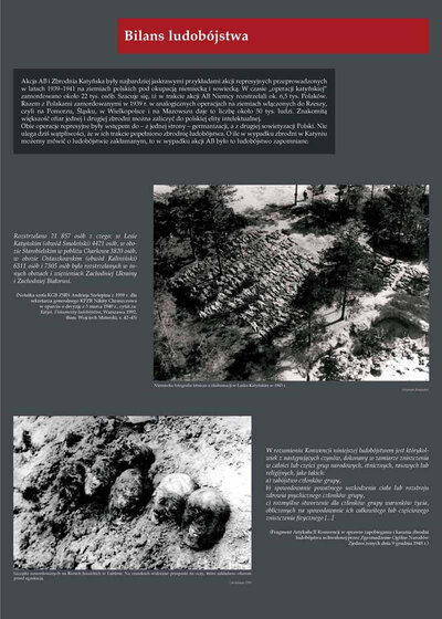 Akcja AB i mord w Katyniu były najbardziej jaskrawymi przykładami akcji represyjnych przeprowadzonych w latach 1939–1941 na ziemiach polskich pod niemiecką i sowiecką okupacją. W czasie „operacji katyńskiej” zamordowano około 22 tys. ludzi. Szacuje się, iż w trakcie akcji AB Niemcy rozstrzelali ok. 6,5 tys. Polaków. Razem z Polakami zamordowanymi w 1939 r. w analogicznych operacjach na ziemiach włączonych do Rzeszy dawałoby to liczbę około 50 tys. ludzi. Znakomitą większość ofiar jednej i drugiej zbrodni można zaliczyć do polskiej elity intelektualnej.