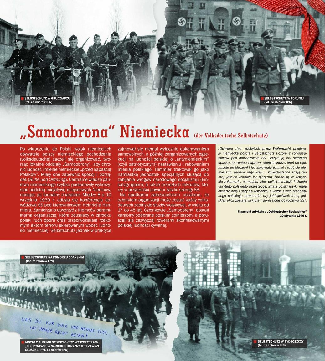 Wystawa została przygotowana przez Oddziałowe Biuro Edukacji Publicznej IPN w Gdańsku – Delegaturę w Bydgoszczy. Autorzy – dr Izabela Mazanowska i dr Tomasz Ceran – zgromadzili fotografie obrazujące zbrodniczą działalność organizacji obywateli polskich niemieckiego pochodzenia, członków Selbstschutzu Westpreussen w Okręgu Rzeszy Gdańsk – Prusy Zachodnie, jesienią 1939 r. Na 20 planszach pokazano metodę zabijania, topografię terroru, sylwetki wybranych sprawców, miejsca kaźni oraz formy upamiętniania ofiar zbrodni.