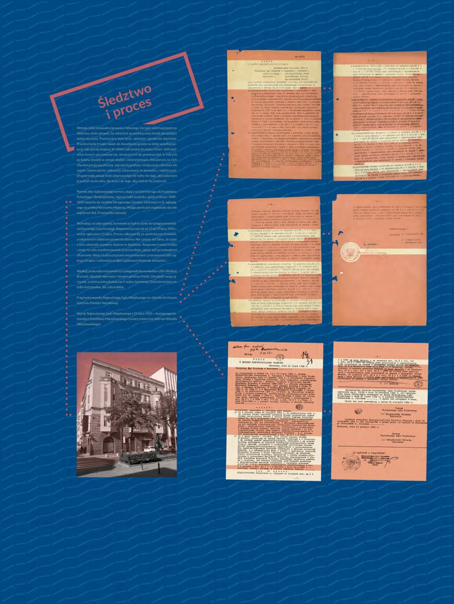 Głównym wątkiem ekspozycji jest historia aresztowania i procesu grupy przedwojennych oficerów: kmdr. Stanisława Mieszkowskiego, kmdr. por. Zbigniewa Przybyszewskiego, kmdr. Jerzego Staniewicza, kmdr. por. Kazimierza Kraszewskiego, kmdr. Mariana Wojcieszka, kmdr. por. Roberta Kasperskiego, kmdr. ppor. Wacława Krzywca oraz kmdr. Adama Rychla. Ze względu na zarzuty, czas oraz wysoką rangę oskarżonych był to jeden z ważniejszych procesów stalinowskich w polskiej Marynarce Wojennej.