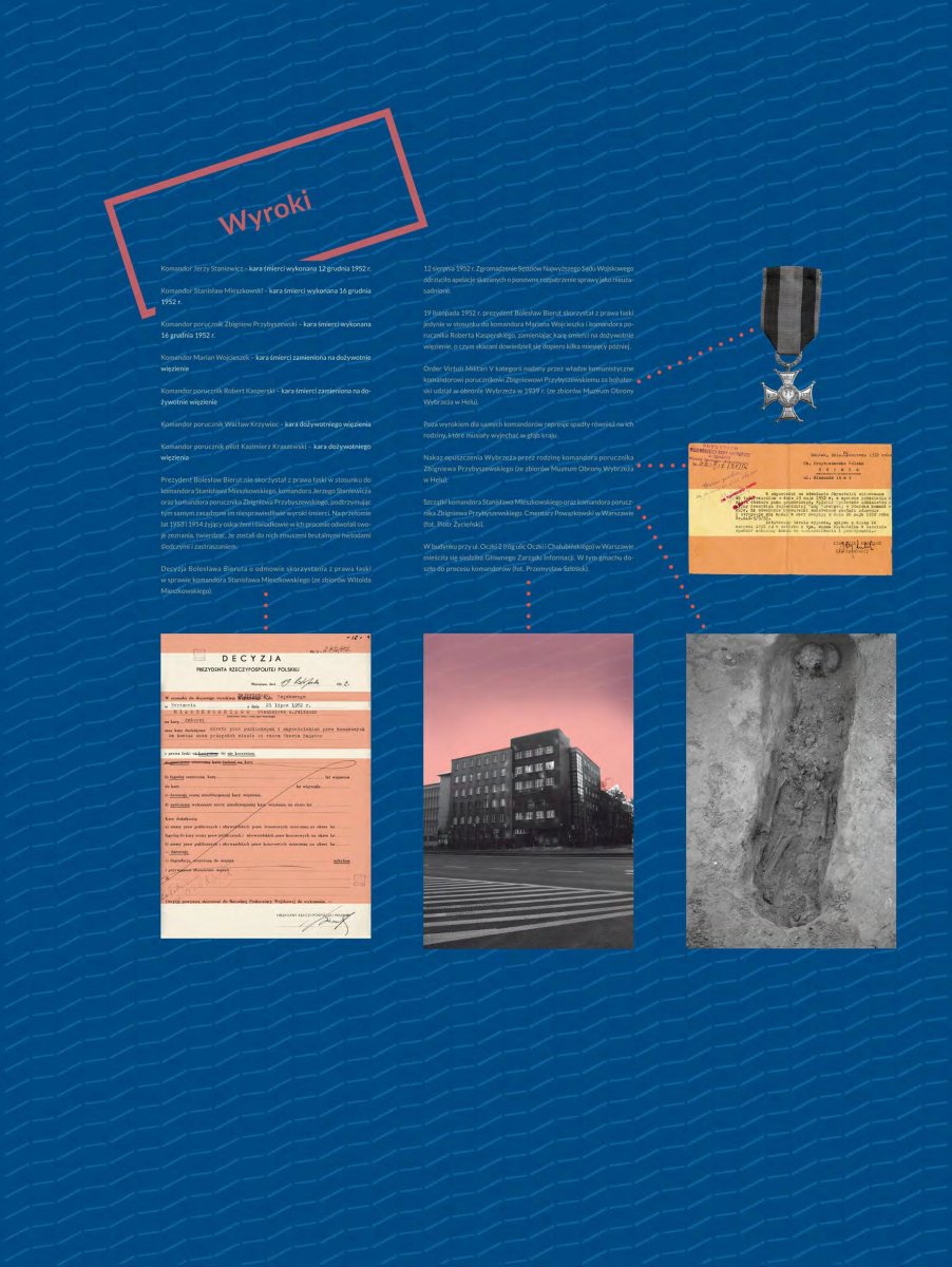 21 lipca 1952 r. Najwyższy Sąd Wojskowy w Warszawie, popełniając zbrodnię sądową, wydał wyroki śmierci dla pięciu oskarżonych, a dwóm wymierzył karę dożywotniego pozbawienia wolności. Wyrok śmierci został wykonany wobec kmdr. Jerzego Staniewicza, kmdr. Stanisława Mieszkowskiego i kmdr. por. Zbigniewa Przybyszewskiego.
