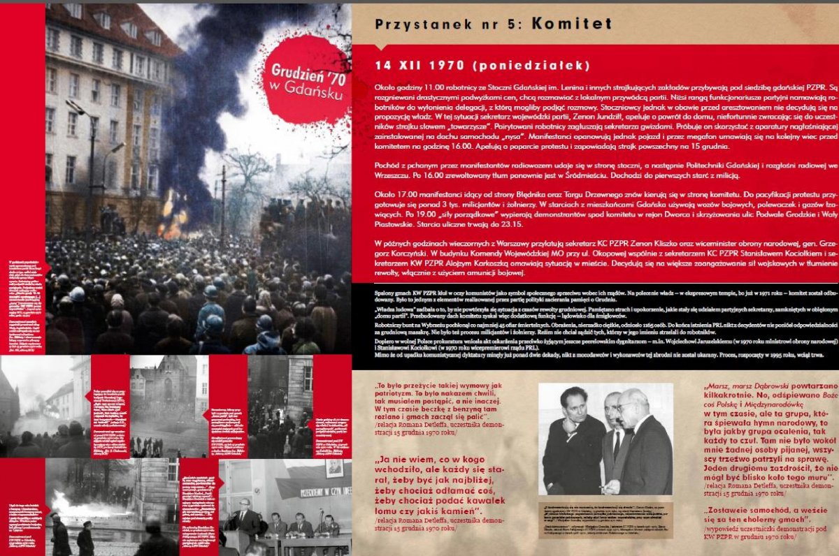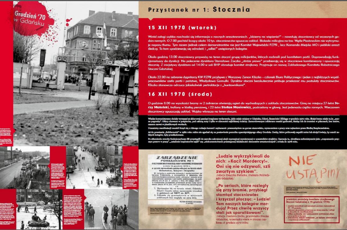 Wystawa została otwarta w grudniu 2012 r., w kolejną rocznicę robotniczej rewolty na Wybrzeżu. Gdańsk, podobnie jak w Sierpniu 1980 r., stał się kolebką oporu wobec komunistycznej władzy. Do strajku, który rozpoczął się 14 grudnia 1970 r. w Stoczni Gdańskiej im. Lenina, miały wkrótce dołączyć zakłady pracy Gdyni, Szczecina, Elbląga i Słupska.