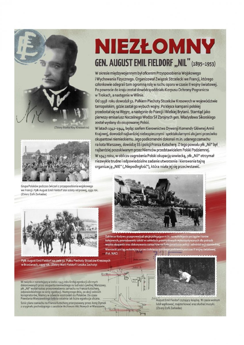 Ekspozycja przedstawia najważniejsze fakty z życia generała, zilustrowane licznymi fotografiami - udział w wojnie polsko-bolszewickiej, kampanii wrześniowej, a także działalność jako szef Kierownictwa Dywersji Komendy Głównej Armii Krajowej. Epilog przedstawia sfingowany proces, w którym „Nil” został skazany na karę śmierci. Autorkami wystawy są Izabela Brzezińska i Anna Dymek. Pierwsza prezentacja wystawy miała miejsce w 2013 r. w Gdyni.