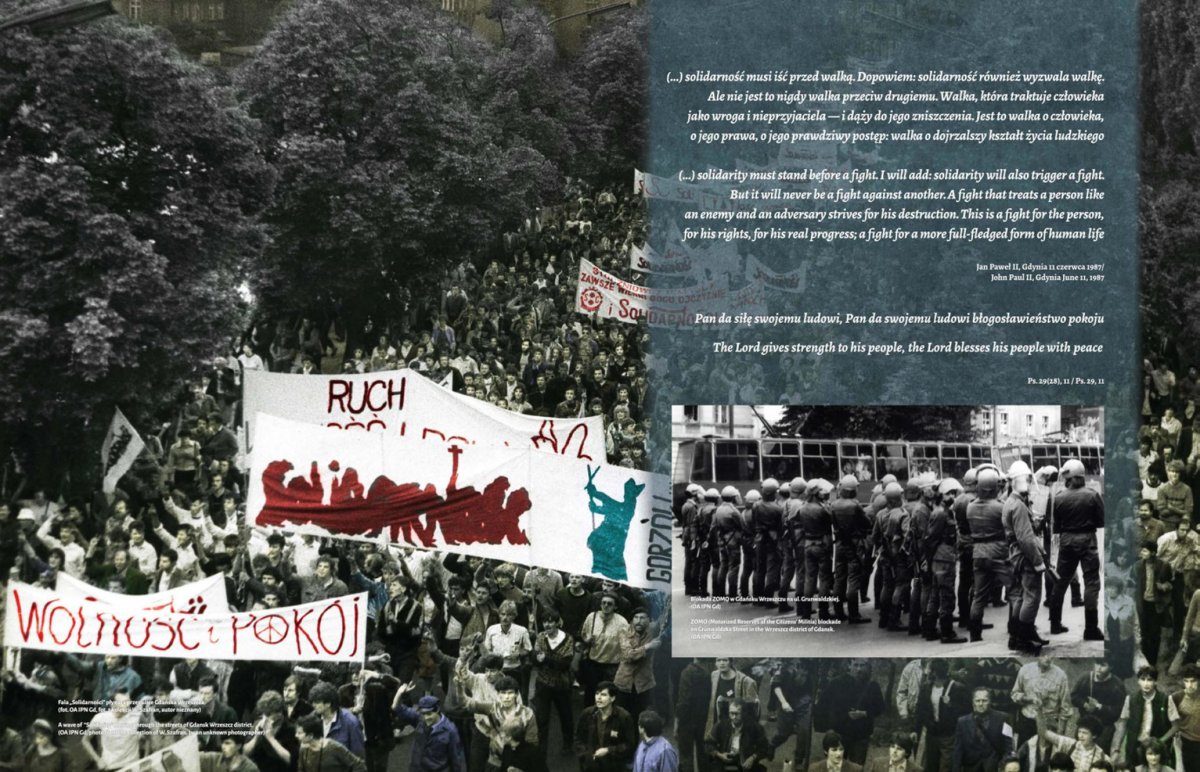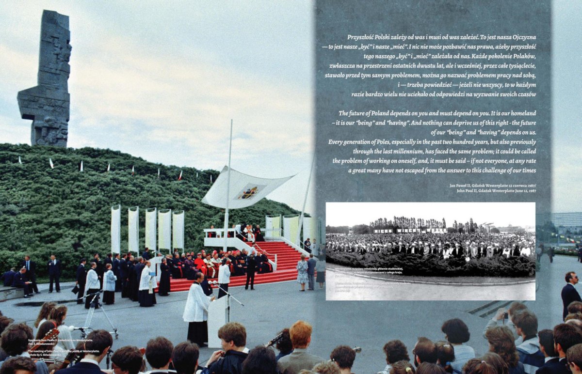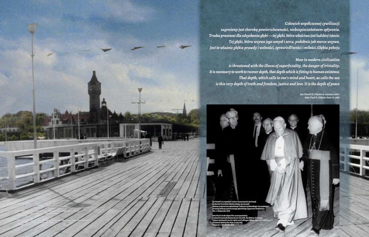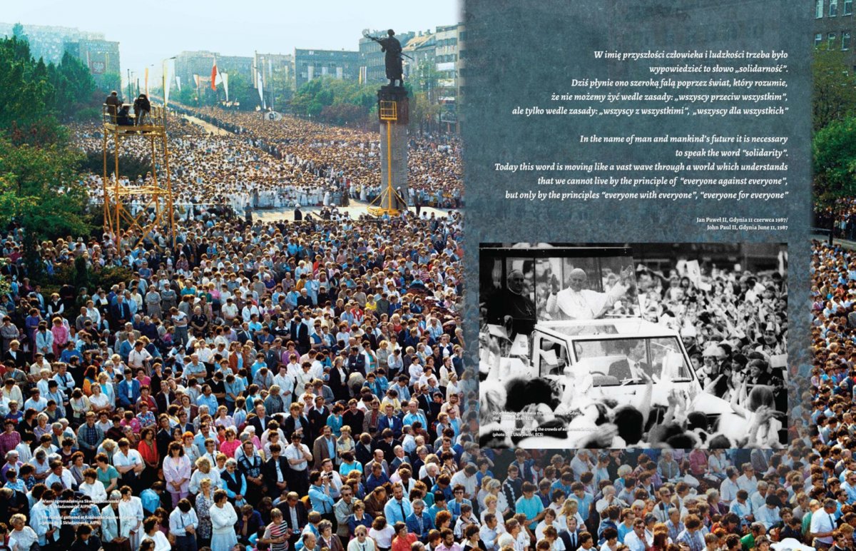 Na 13 dwustronnych panelach w przystępny sposób przedstawiono najważniejsze wydarzenia związane z przebiegiem wizyty Jana Pawła II w Trójmieście w dniach 11 i 12 czerwca 1987 r., a więc uroczystości z udziałem papieża w Gdyni, moment przejścia Ojca Świętego przez sopockie molo (Sopot nie został uwzględniony w oficjalnych uroczystościach i był tylko przystanią w drodze Jana Pawła II do Gdańska), spotkanie papieża z Lechem Wałęsą i jego rodziną Oliwie, spotkanie Ojca Świętego z przedstawicielami środowisk twórczych, naukowcami i działaczami ZK-P w Oliwie, mszę św. na Westerplatte i spotkanie z młodzieżą, spotkanie papieża z osobami chorymi i cierpiącymi w Bazylice Mariackiej, modlitwę Jana Pawła II pod Pomnikiem Poległych Stoczniowców a także mszę św. na Zaspie. Ostatnia plansza pokazuje manifestację po mszy św. odprawionej przez Jana Pawła II dla ludzi pracy na gdańskiej Zaspie – przez ulice Gdańska przelała się wówczas prawdziwa fala „Solidarności”. Autorami wystawy są Sławomir Formella i Elżbieta Strehlau, starsi archiwiści Oddziałowego Archiwum IPN w Gdańsku.