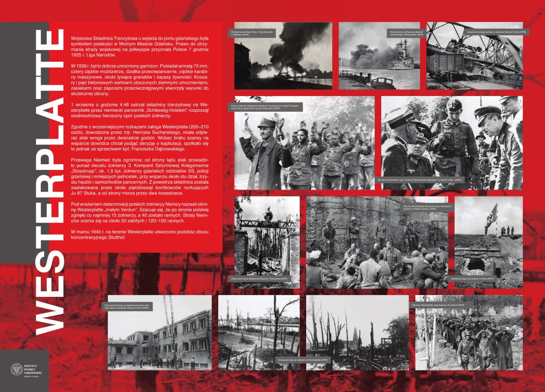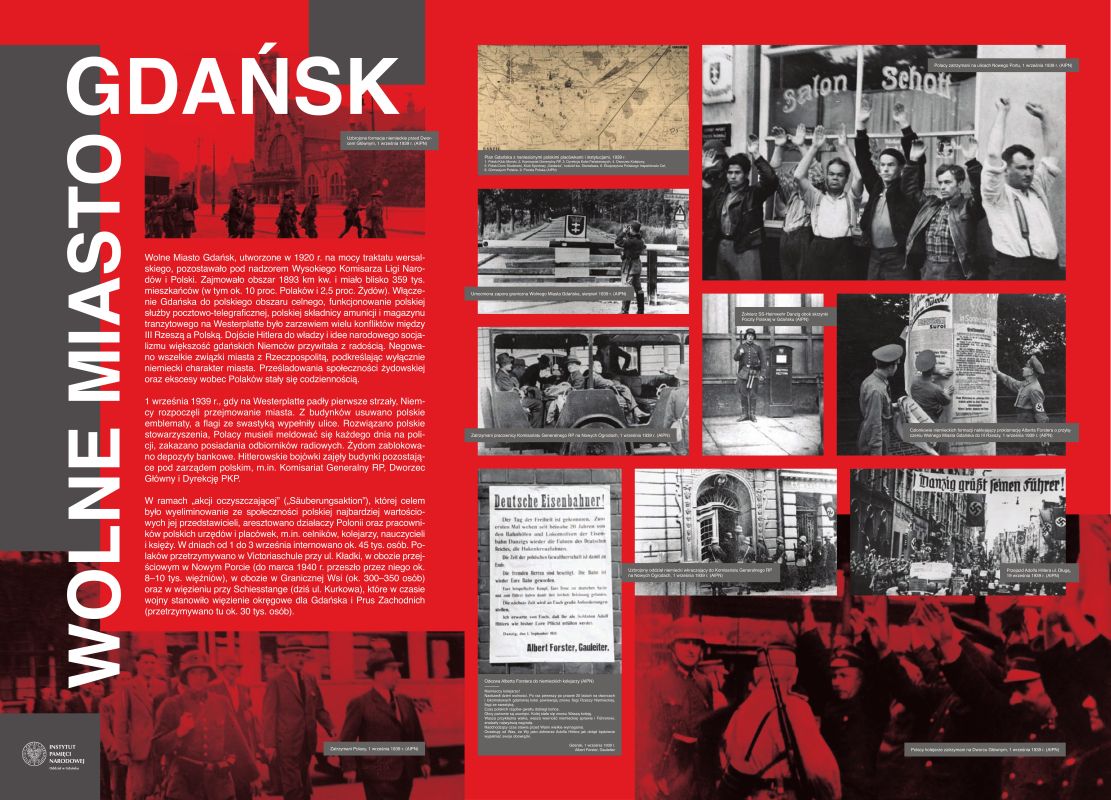 Na wystawie zaprezentowano 72 fotografie oraz 30 dokumentów pochodzących z zasobu archiwalnego Instytutu Pamięci Narodowej. Źródłem fotografii są albumy wykonane na użytek propagandy niemieckiej, sławiącej sukcesy żołnierzy niemieckich. Zdjęcia wykonano w gdańskich zakładach fotograficznych: Foto-Sönnke – album „Danzigs Befreiung” („Wyzwolenie Gdańska ”) oraz Foto Luben – album „Kampf um Danzig” („Walka o Gdańsk”).