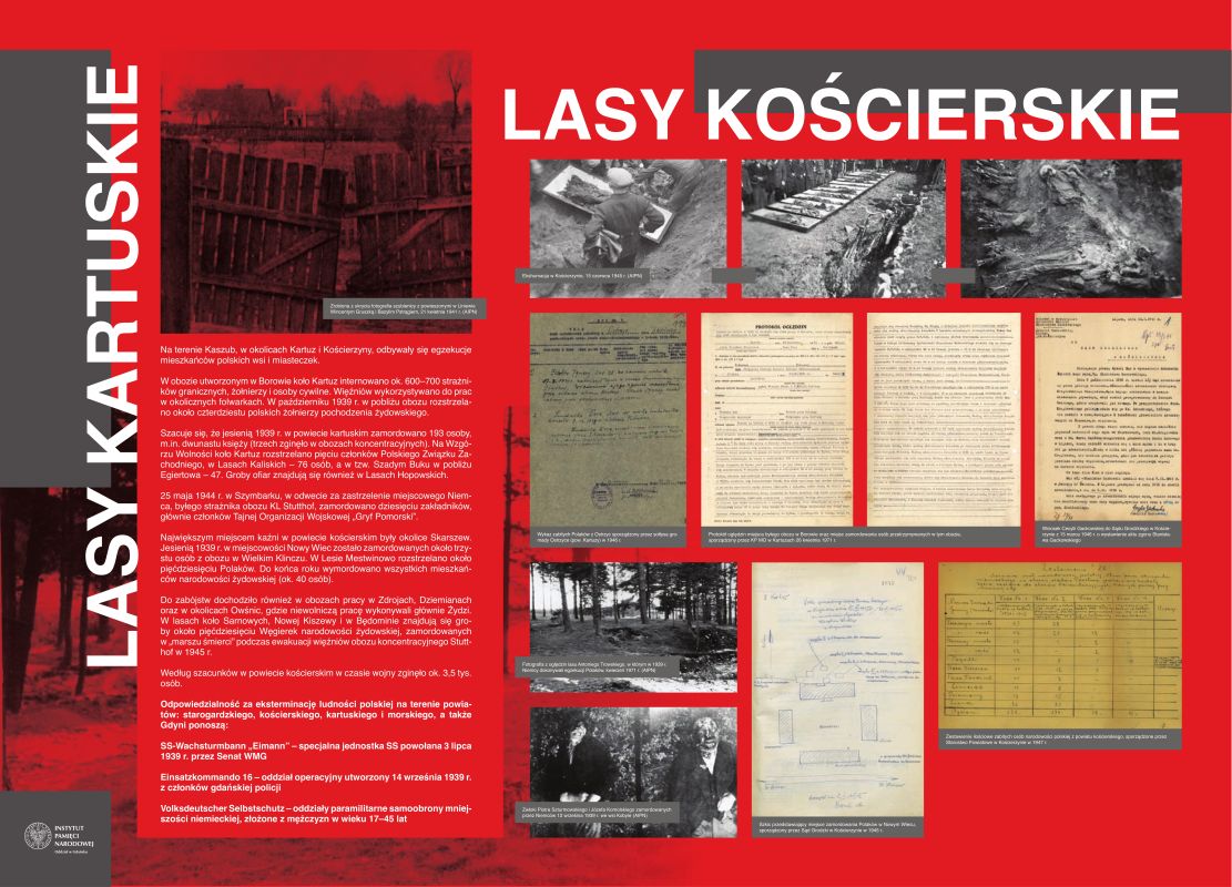 Pozostałe zdjęcia, wykonane w 1945 roku i później oraz prezentowane dokumenty zostały zaczerpnięte z akt śledztw w sprawie masowych zabójstw obywateli polskich dokonanych jesienią 1939 r., prowadzonych Oddziałową Komisję Ścigania Zbrodni przeciwko Narodowi Polskiemu IPN w Gdańsku.