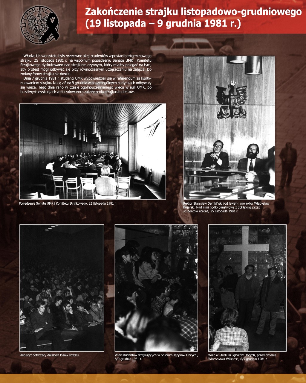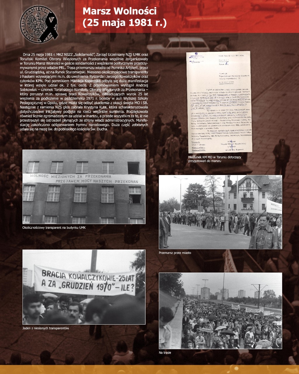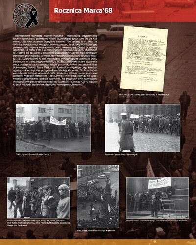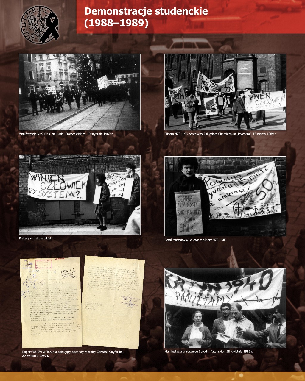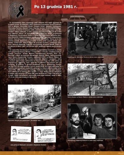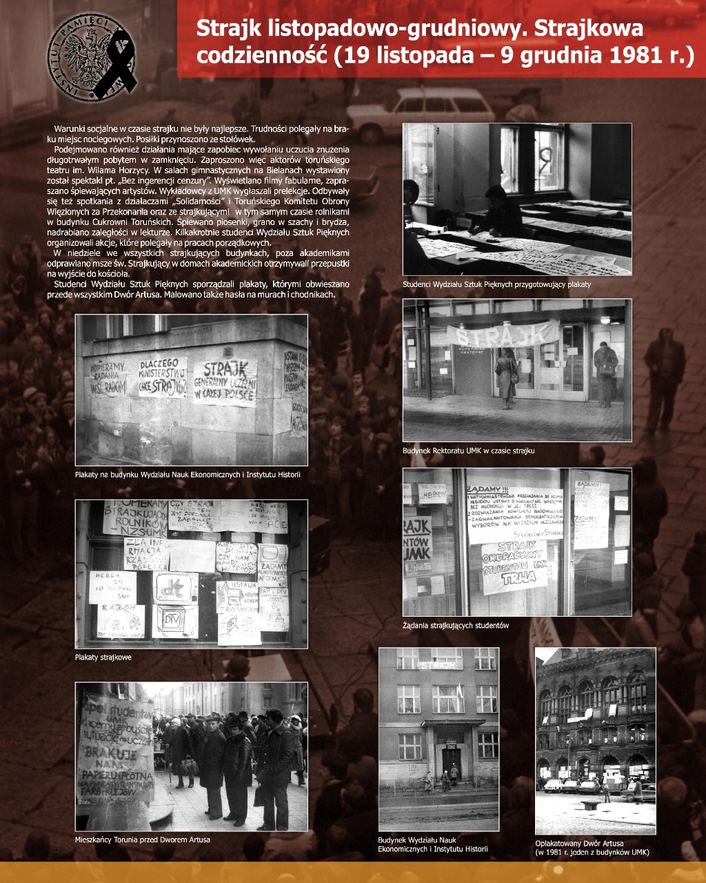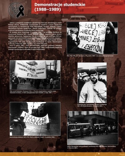 Rozbudowana prezentacja najważniejszych wydarzeń związanych z działalnością Niezależnego Zrzeszenia Studentów w Toruniu. Na trzydziestu planszach zamieszczono informacje o działalności NZS w latach osiemdziesiątych – od tworzenia struktur na Uniwersytecie Mikołaja Kopernika, poprzez przedstawienie legalnej działalności w latach 1980–1981, sylwetek najbardziej aktywnych działaczy, działalności wydawniczej i kolporterskiej, najważniejszych strajków studenckich, działań Służby Bezpieczeństwa wymierzonych w NZS, represji z okresu stanu wojennego (internowanie i skazywanie przez sąd działaczy Zrzeszenia) i działań konspiracyjnych w okresie 1982–1988, po likwidację organizacji w stanie wojennym i jej odrodzenie pod koniec lat osiemdziesiątych. Wystawa została po raz pierwszy zaprezentowana w 2010 r.