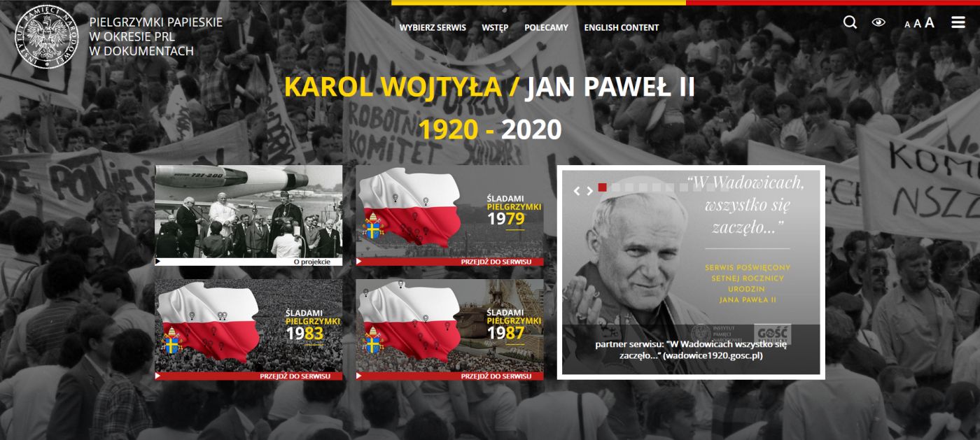 serwis internetowy „W Wadowicach wszystko się zaczęło”, przygotowany przez redakcję tygodnika „Gość Niedzielny oraz Instytut Pamięci Narodowej