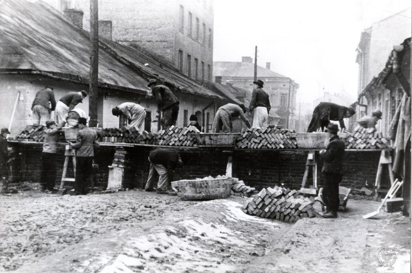 Budowa muru getta w Podgórzu. Fot. ze zbiorów IPN w Krakowie -