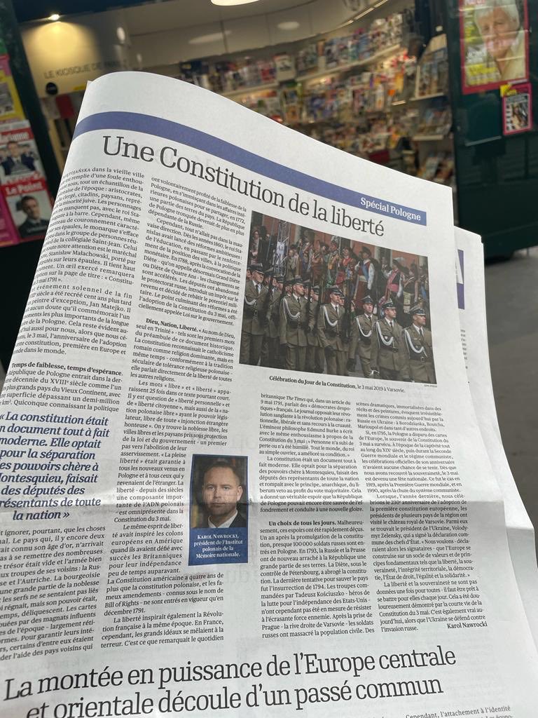 Tym razem tekst prezesa IPN pojawi się w zagranicznej prasie i portalach internetowych w związku z 231. rocznicą uchwalenia Konstytucji 3 maja. O pierwszej w Europie, a drugiej na świecie Konstytucji będzie można przeczytać w gazetach i wiodących portalach we Francji, Włoszech, Hiszpanii, Austrii, Czechach, jak również tak egzotycznych krajach, jak Senegal, Wenezuela, Zjednoczone Emiraty Arabskie, Maroko, Katar, Malezja czy Singapurnie oraz w mediach polonijnych na całym świecie. We Francji został wydany dodatek „Special Pologne” w dzienniku „L’Opinion”.
