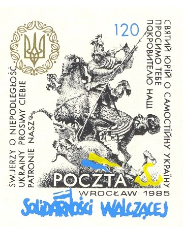 „Św. Jerzy, o niepodległość Ukrainy prosimy Ciebie, patronie nasz” – taki tekst zamieszczono obok wizerunku świętego na znaczku „Solidarności Walczącej” latem 1985 r. To jeden z trzech znaczków niepodległościowego bloczka filatelistycznego. Obok św. Jerzego widnieje Matka Boża Ostrobramska z polskim i litewskim napisem „Oniepodległość Litwy, prosimy Cię, Matko Boska Ostrobramska” oraz Jasnogórska Czarna Madonna z inskrypcją „O niepodległość Ojczyzny prosimy Cię, Królowo Polski”. Na bloczku znalazły się religijne symbole narodów, które wchodziły w skład I Rzeczypospolitej. To filatelistyczne i drukarskie cudeńko było i wciąż jest manifestacją wspólnych dążeń niepodległościowych Polski, Litwy i Ukrainy.