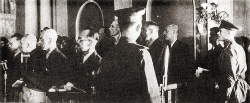 Ława oskarżonych w procesie szesnastu, Moskwa, czerwiec 1945 r.